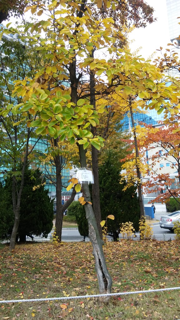 이번주에는 나무에 이름표를 달아주는 일을 했다. 저번 학기에도 달아줬는데 이번에는 이름표가 떨어지는 일이 없도록 튼튼한 끝으로 묶어주었다. 나무 밑에 있는 줄기가 점점 말라서 힘이 없어서 옆으로 기울어지는 모습을 볼 수 있었다. 그리고 잎에는 검은 반점들이 생겨있었다. 이제는 오른쪽에도 점점 잎이 노란색과 갈색으로 변해가고 있다는 것을 볼 수 있다.
