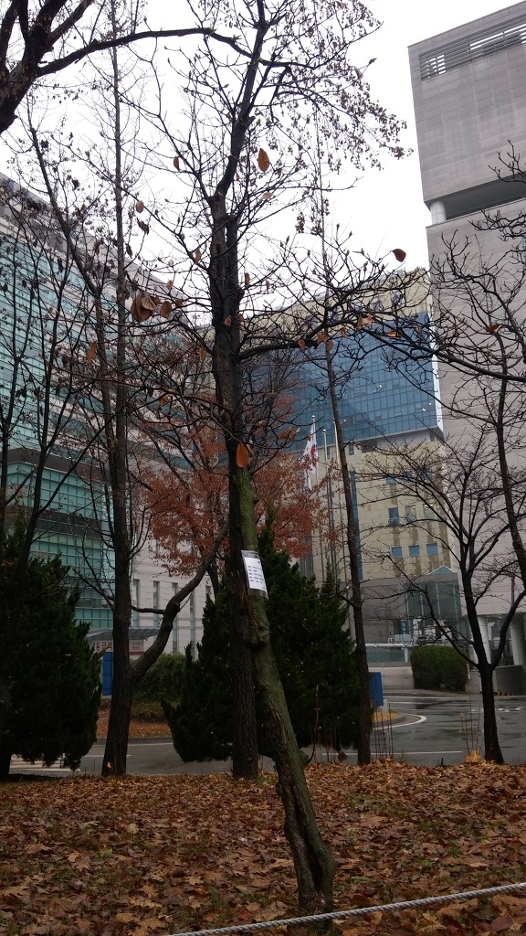 강한 바람과 비로 인해 갑자기 많은 잎들이 떨어진 나무의 모습을 관찰할 수 있었다. 그리고 나무 밑 줄기에는 마지막 잎이 떨어졌다. 아직 붙어있는 잎들도 비바람이 오면 바로 떨어질 만큼 위태위태하게 달려있었다.