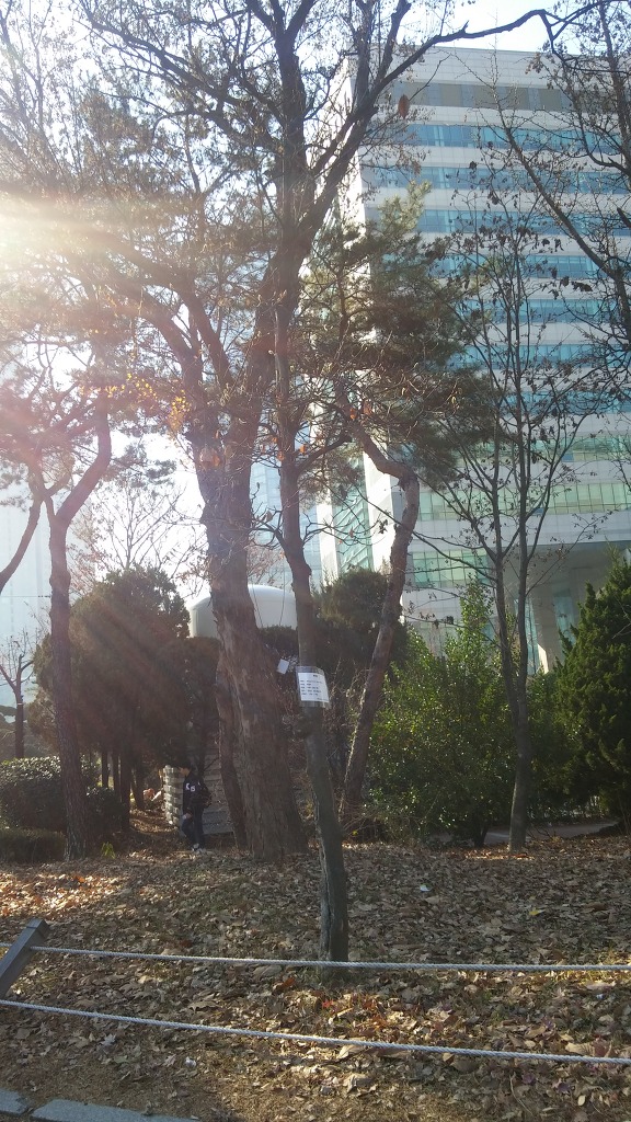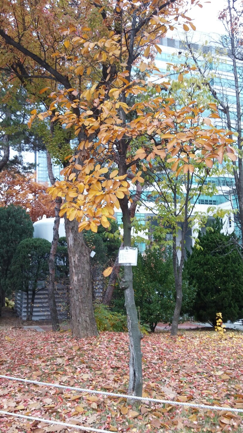 저번주와 비슷한 가을날씨였고 끝부분에만 보이던 낙엽부위가 군데군데 잎 전체에서 볼 수 있었다. 나무도 수분이 약간 빠져 말랐음을 느낄 수 있었다.