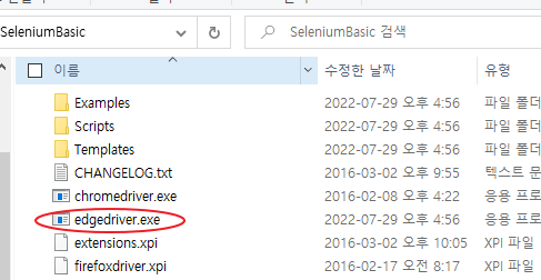 3. Seleniumbasic 폴더의 edgedriver.exe 파일을 교체하기
