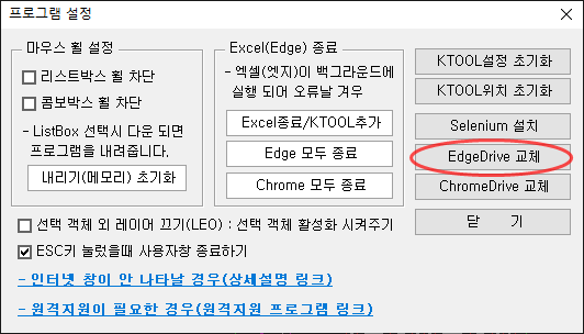 - EdgeDrive교체 버튼을 클릭해 줍니다. (아래 동그리미)