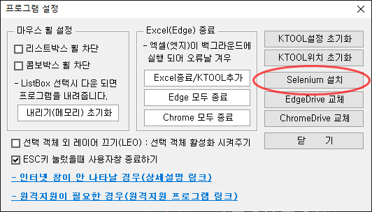 - Selenium 설치 버튼을 클릭해 줍니다. (아래 동그리미)