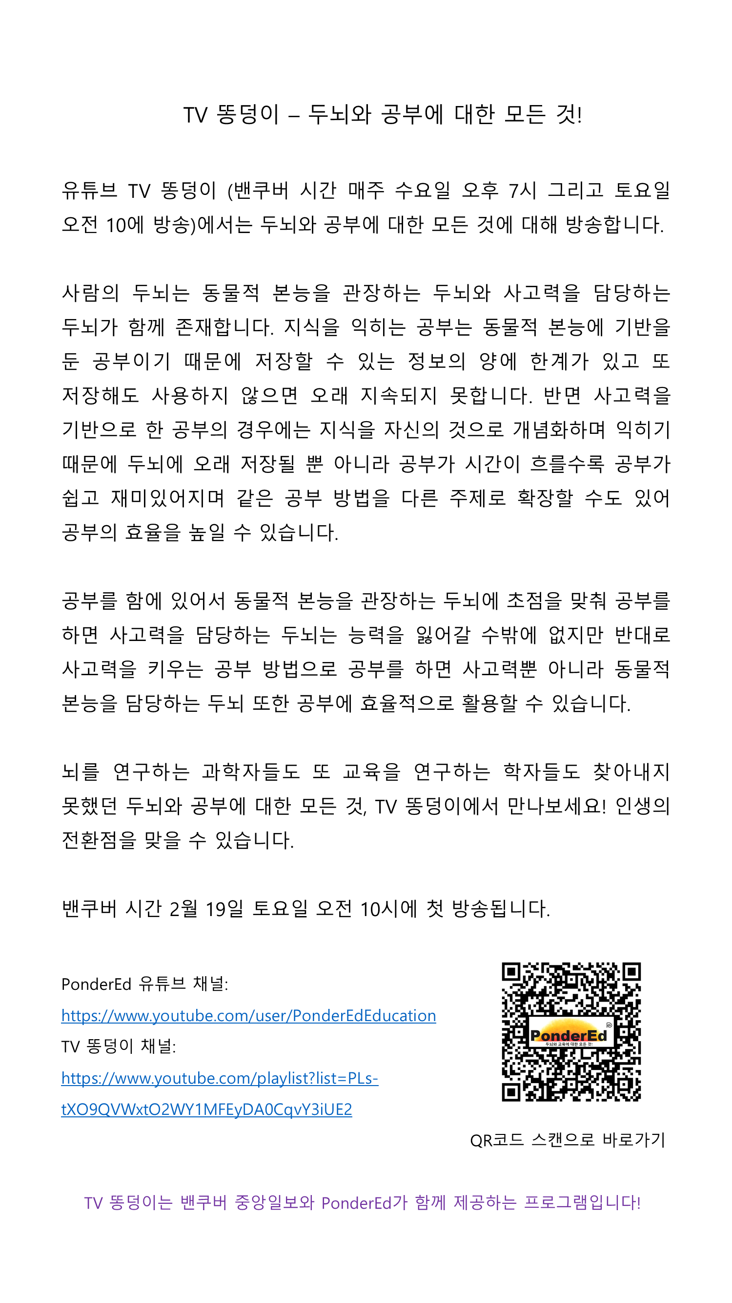 두뇌와 공부방법에 대한 모든 것 (TV 똥덩이 예고) 작성자PonderEd|작성시간22.02.17|조회수15 목록 댓글 0 글자크기 작게가 글자크기 크게가 다음검색 현재 게시글 추가 기능 열기 북마크 신고 센터로 신고 댓글 댓글 0 댓글쓰기 답글쓰기 댓글 리스트