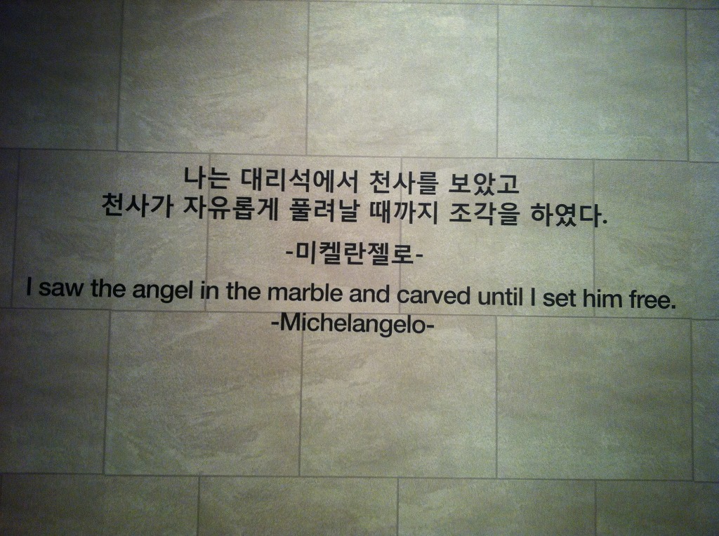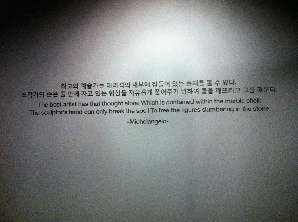 전시장 입구에 붙어있는 미켈란젤로의 어록을 보고,