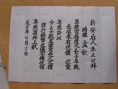 신랑측 혼주가 보내는 혼서지(일명 예단편지)