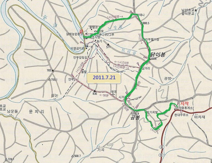 ☞ 산행코스:마차재휴게소-곰봉-삼거리-닭이봉-988봉-삼거리-가탄마을