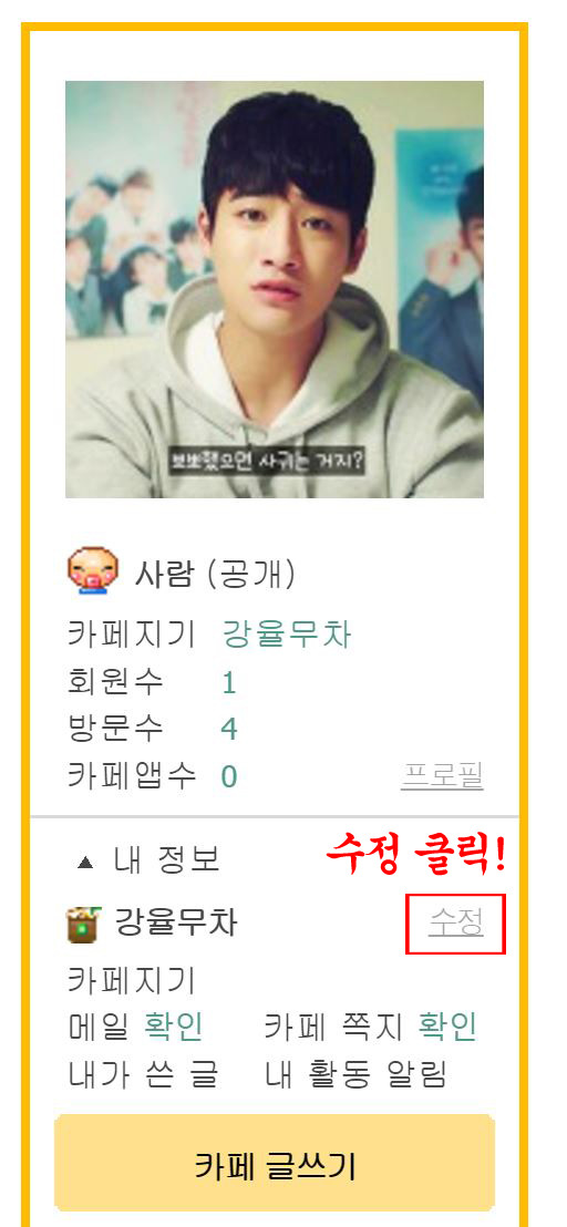 1) 강율무차는 배우 강율의 팬카페입니다.