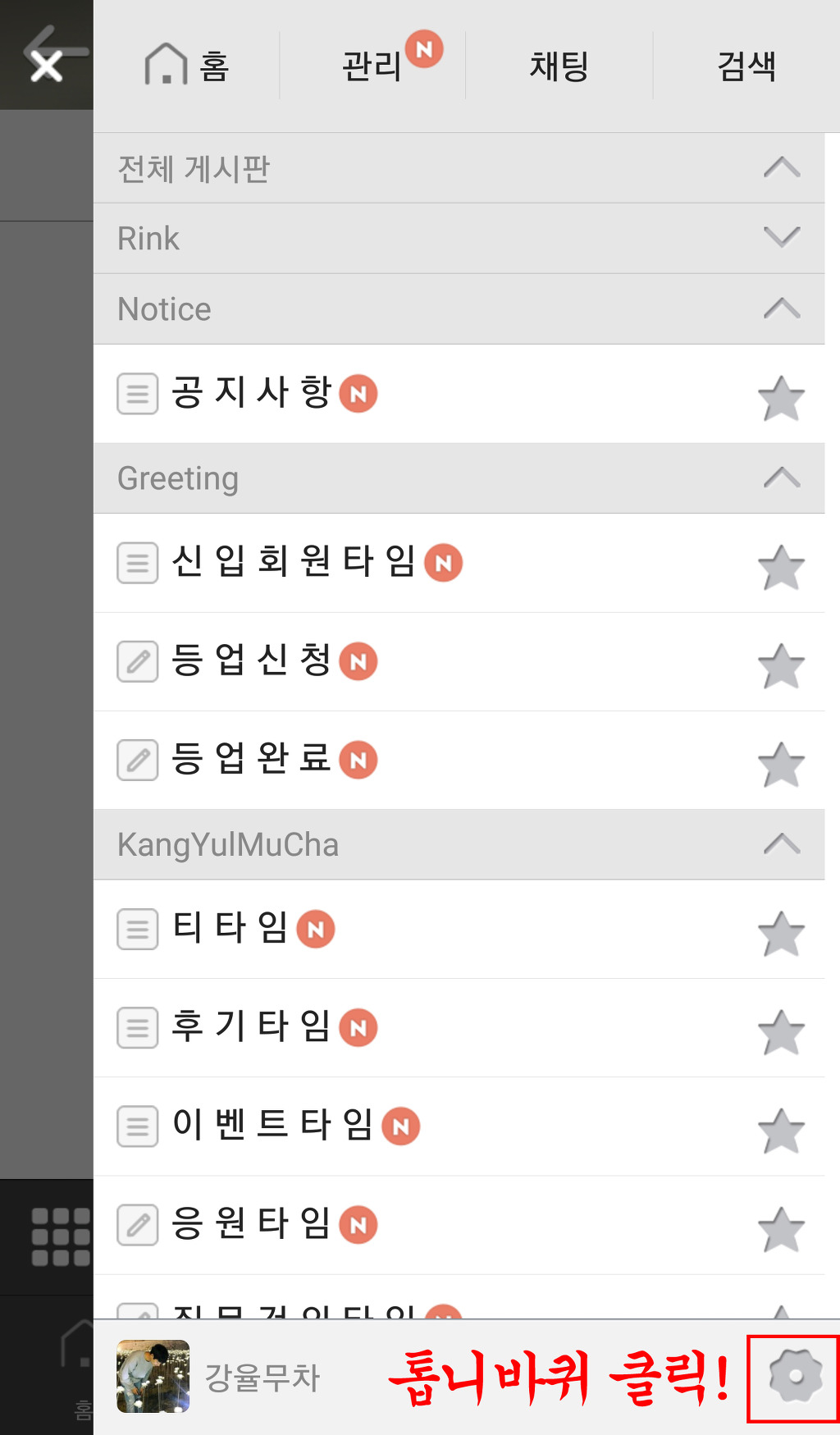 3. 톱니바퀴 클릭!