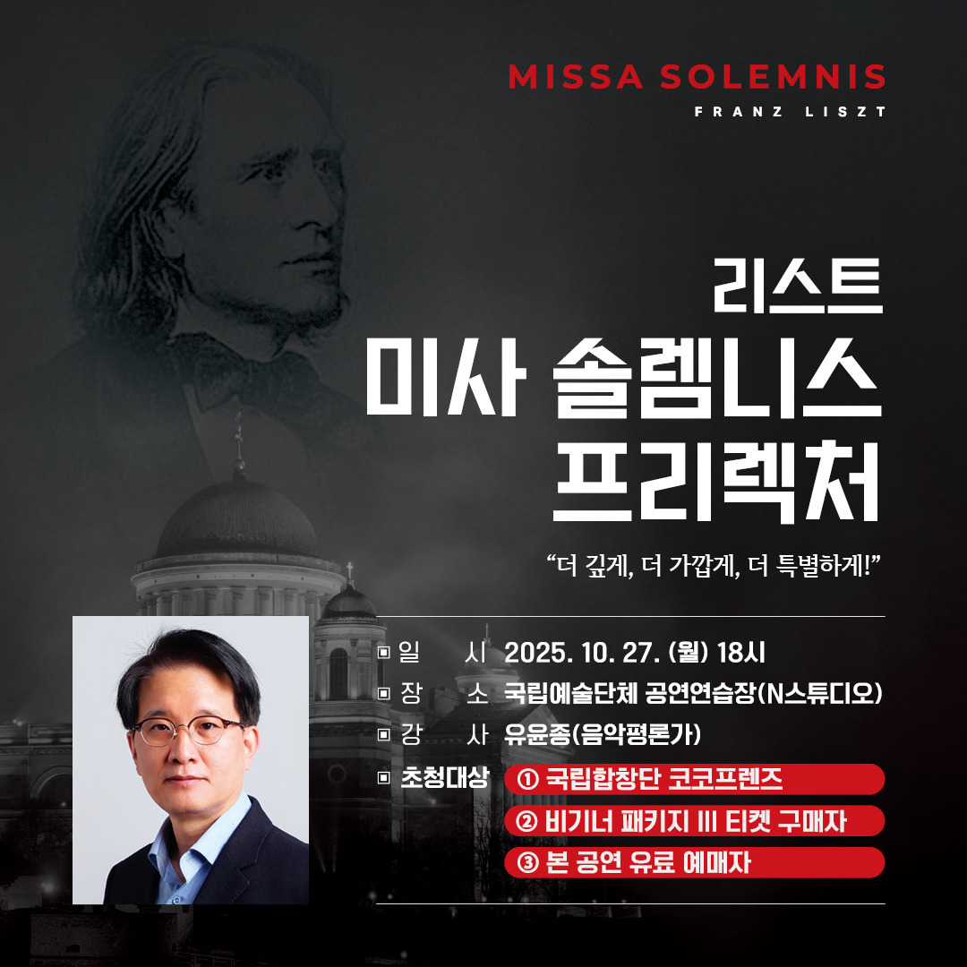 ◾ 행사명 : 국립합창단 제204회 정기연주회 낭만주의 거장의 합창음악 IV 〈미사 솔렘니스〉 프리렉처