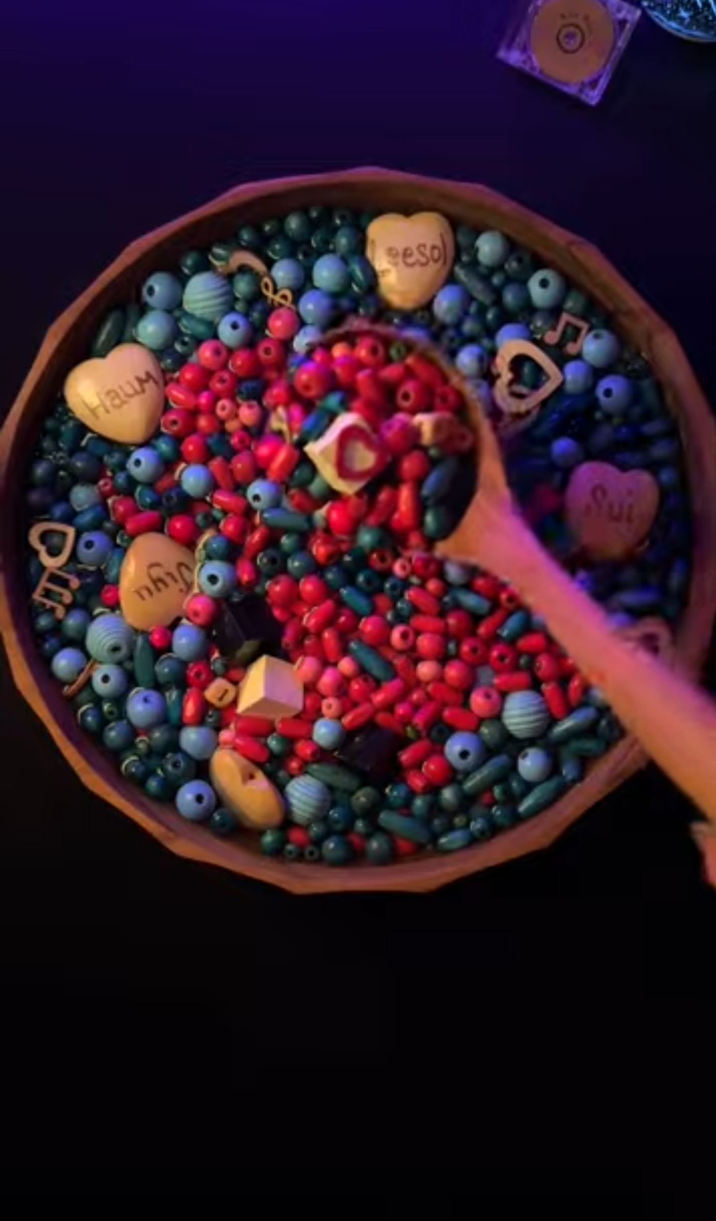 있는 하트 장난감이랑, 또 뭔가 무슨 콩 같은 걸로