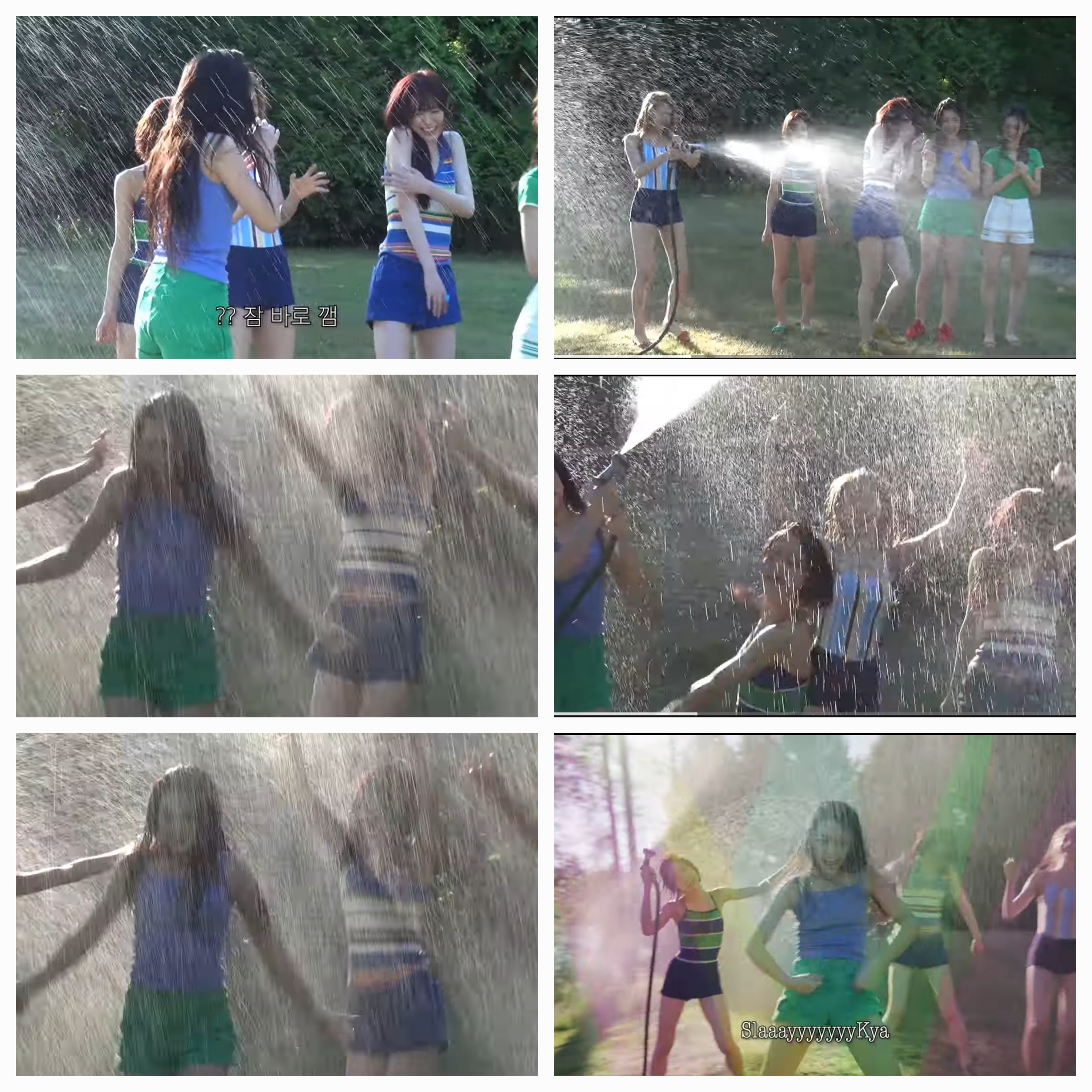 물뿌리개로 물을 시원하게 뿌리면서 댄싱얼론으로