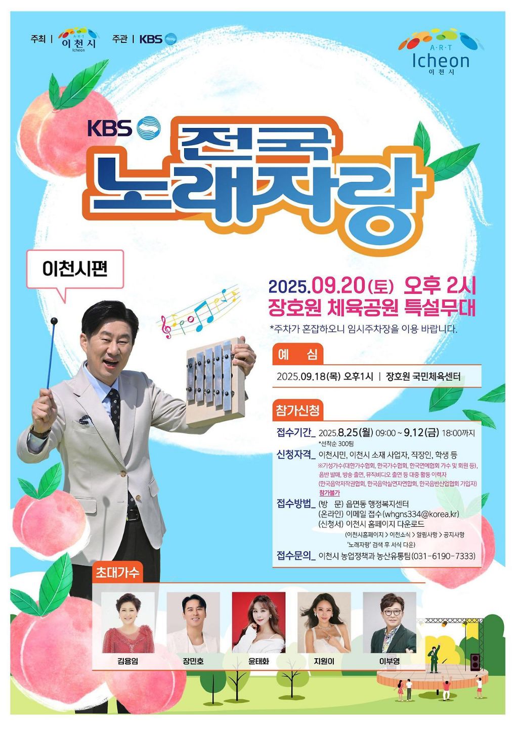 전국노래자랑 출연 작성자해피해피|작성시간25.11.27|조회수58 목록 댓글 2 글자크기 작게가 글자크기 크게가 이번주 일요일 방송되는 경기 이천시 편 전국노래자랑에초대가수로 나오십니다 다음검색 현재 게시글 추가 기능 열기 북마크 공유하기 신고 센터로 신고 댓글 댓글 2 댓글쓰기 답글쓰기 댓글 리스트 작성자sunny | 작성시간 25.11.28 방송 정보 감사합니다 답댓글 작성자해피해피 작성자 본인 여부 작성자 | 작성시간 25.11.28 감사합니다 댓글 전체보기