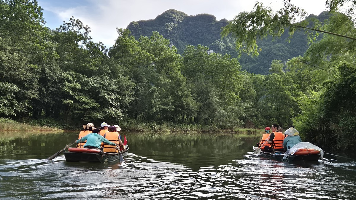 여기서 보트를 탑니다..뱃사공이 혼신의 힘을 다해 3시간 정도 다니는데 산밑의 동굴을 9개를