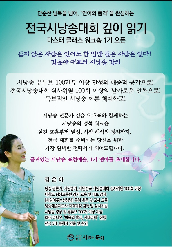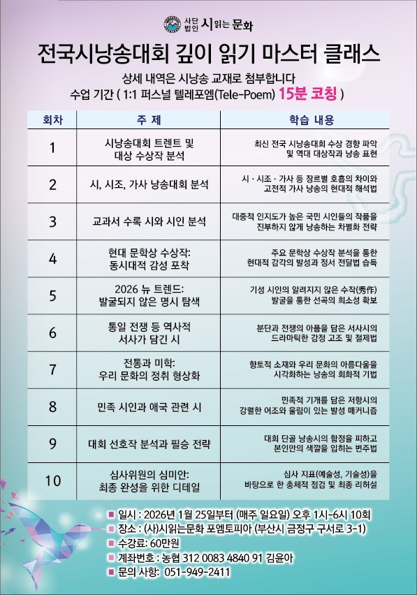 2026년 전국시낭송대회 깊이 읽기 마스터 클래스 - 제1기 모집
