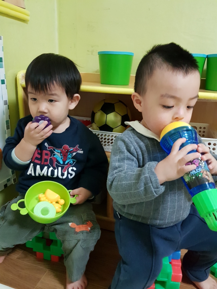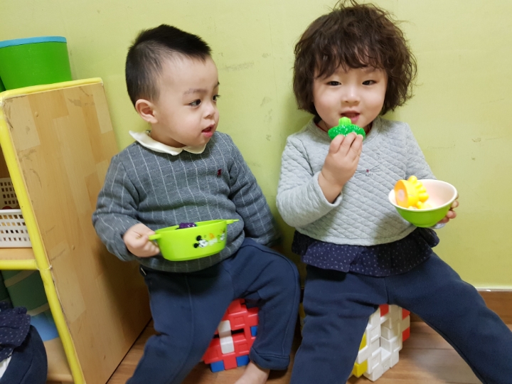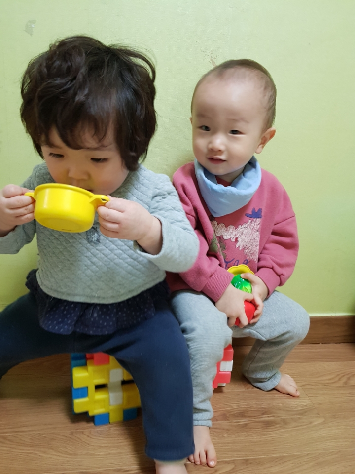 선생님과 함께 만든 블록 의자 위에서 다양한 놀이를 하며 즐겁게 친구와 친밀감을 쌓은 소중한 시간이었습니다