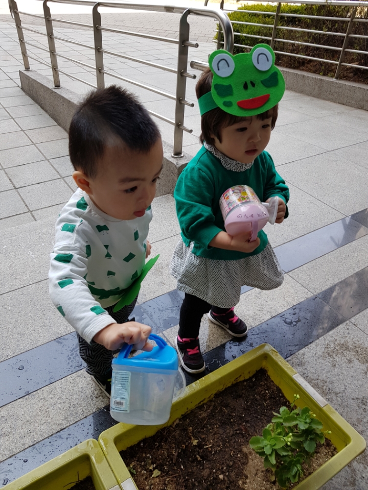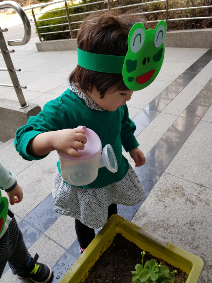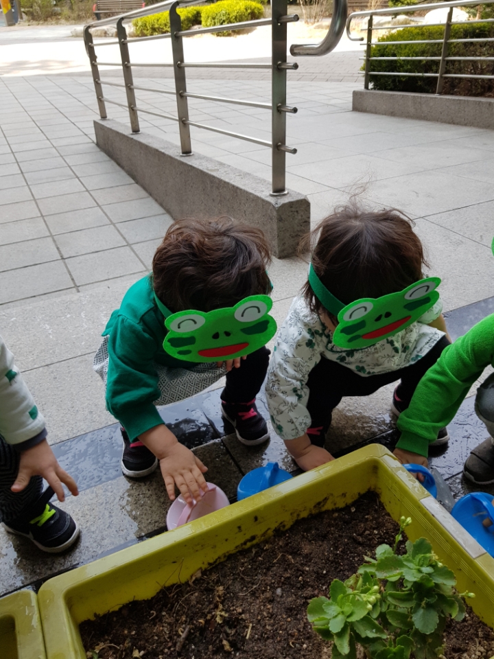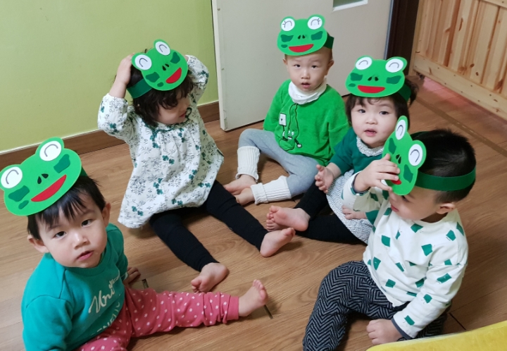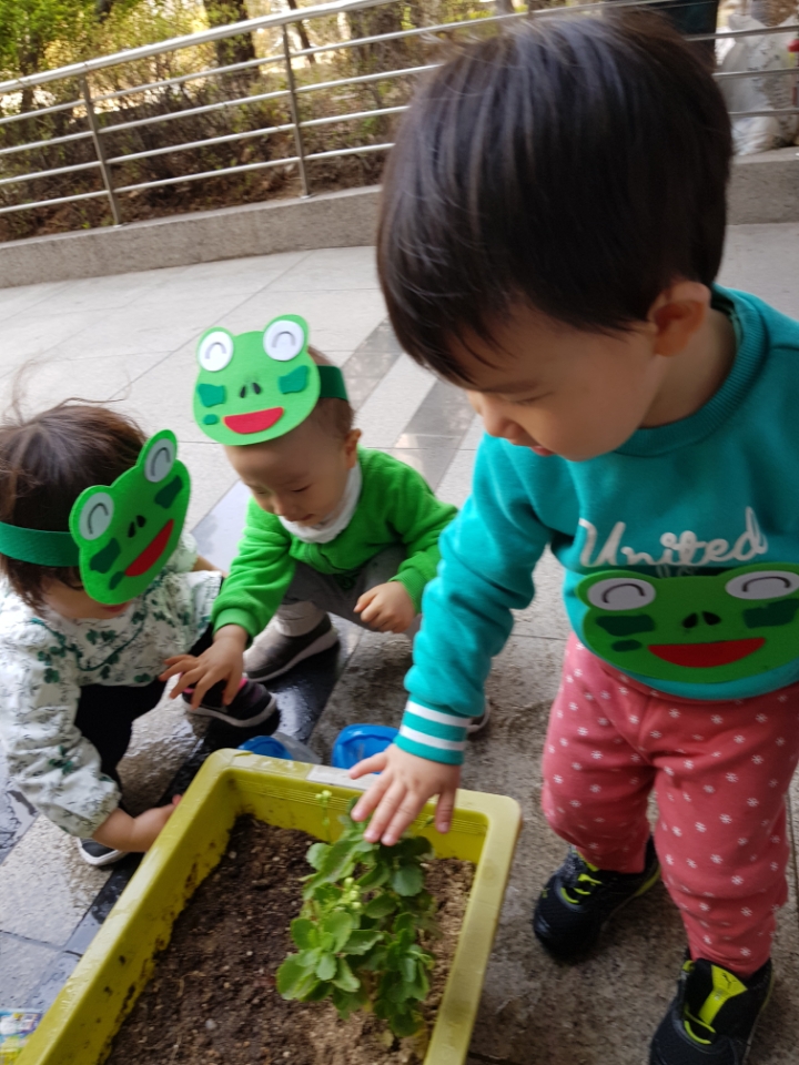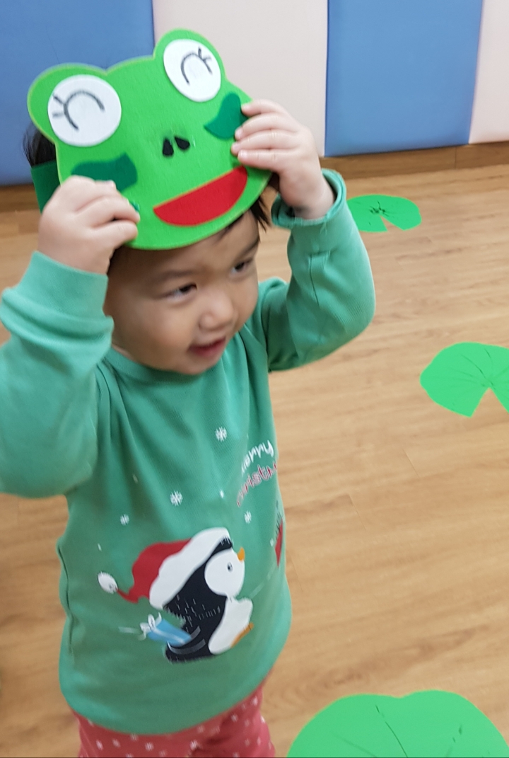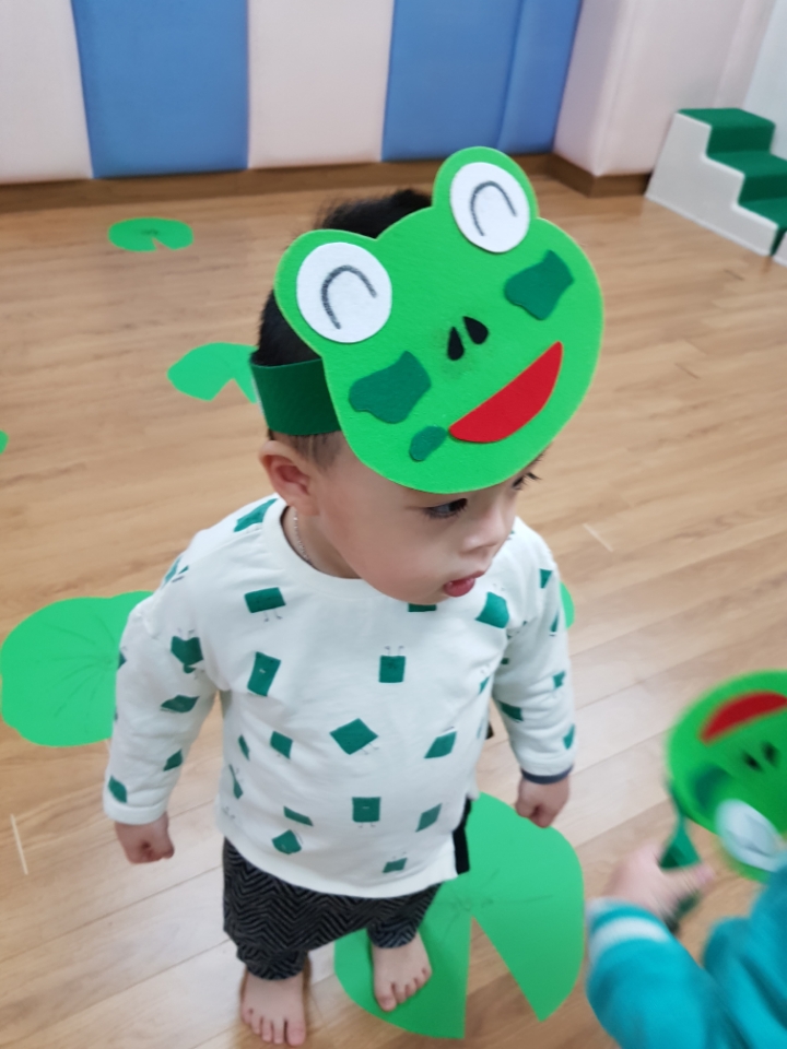 *푸르른 4월, 초록의 싱그러움이 짙어지는 날에 우리 아이들이 개구리 머리띠를 하고 연잎위에서 '폴짝!' ~