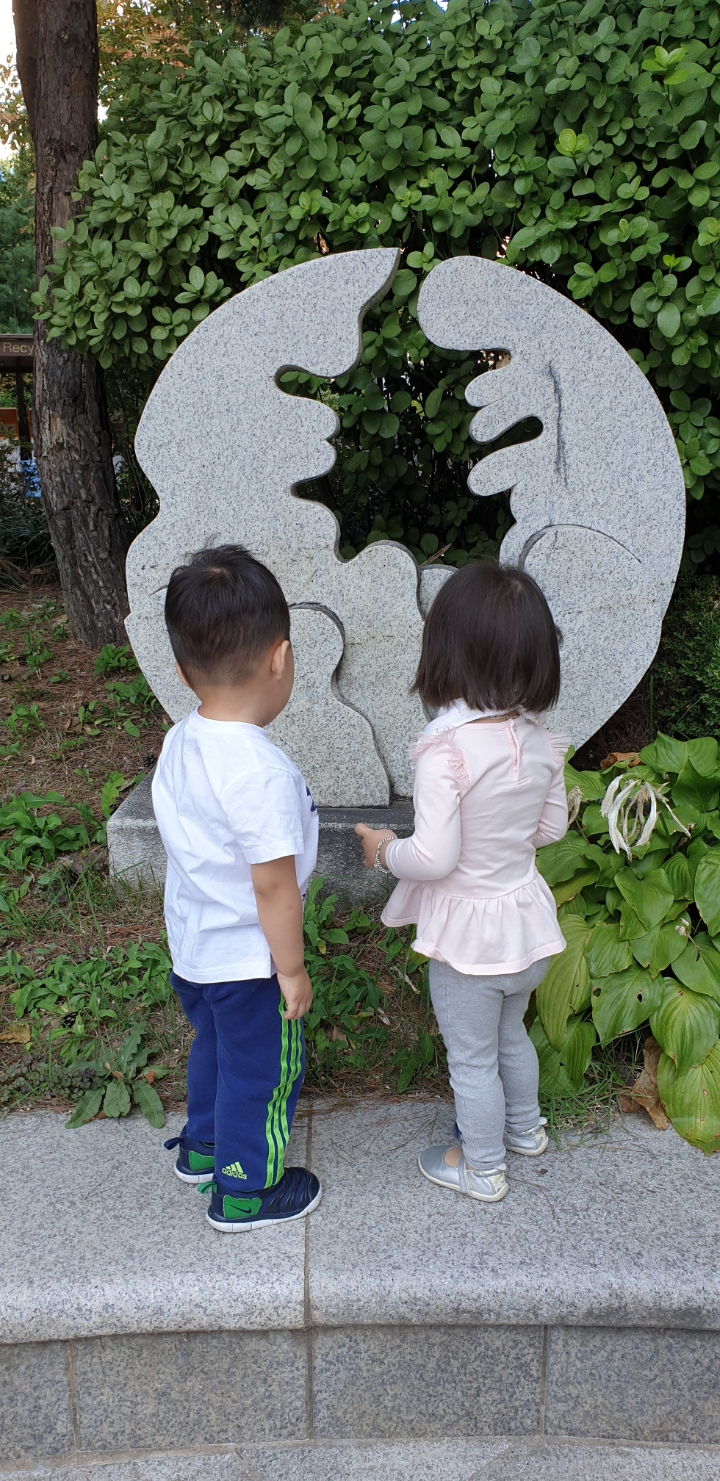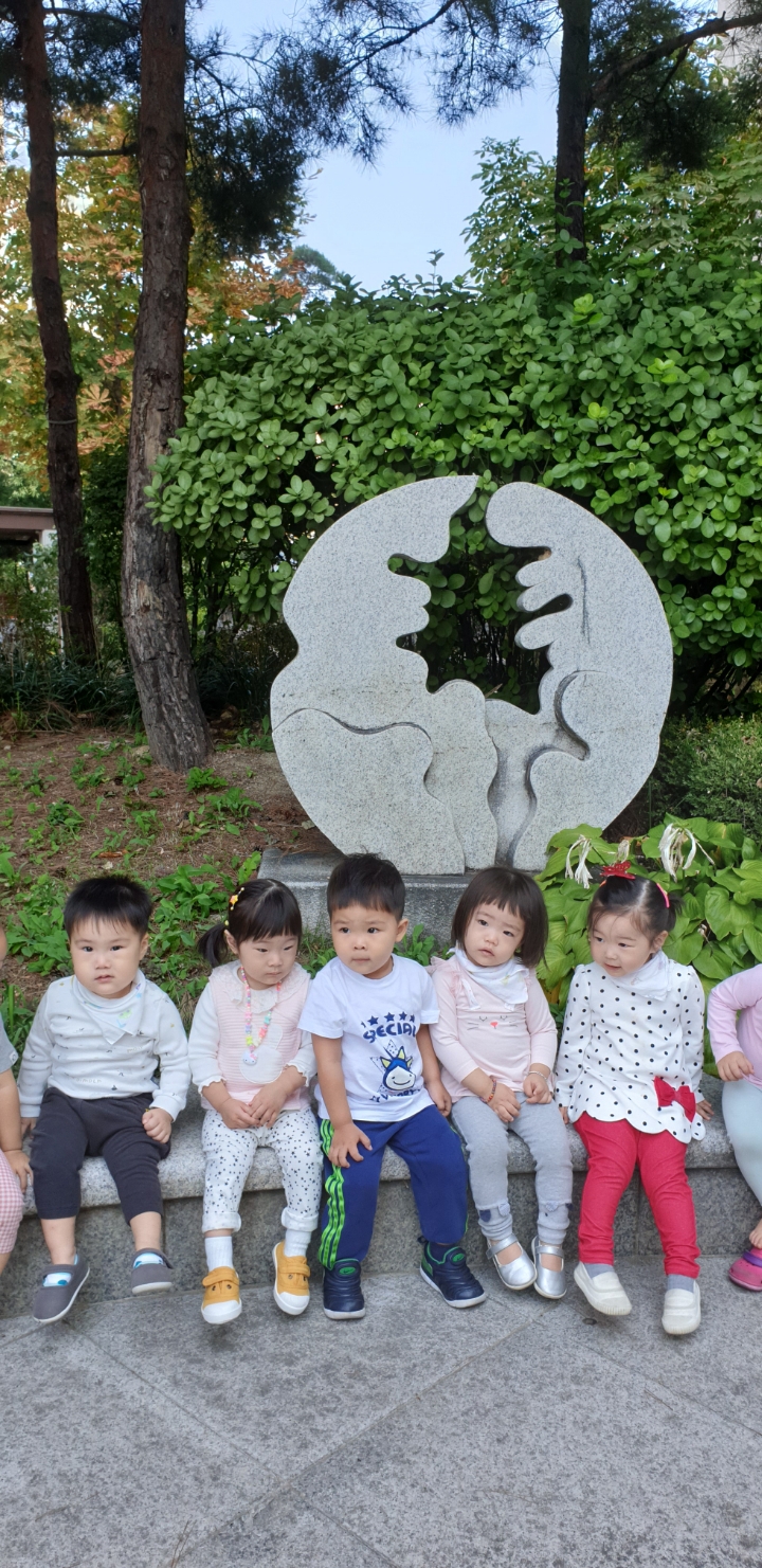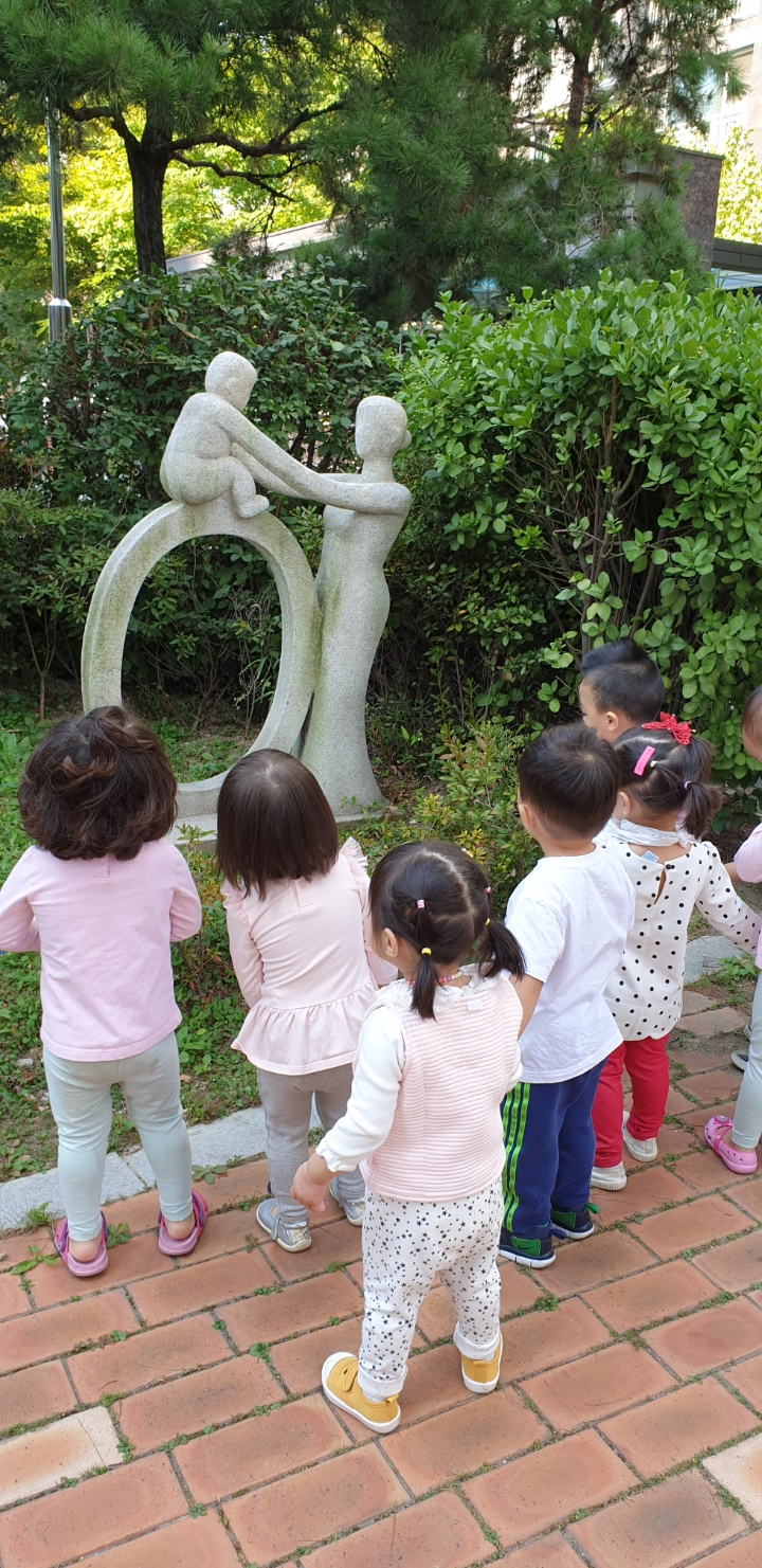 산책을 하며 어린이집 주변 조형물을 살펴 보았어요.