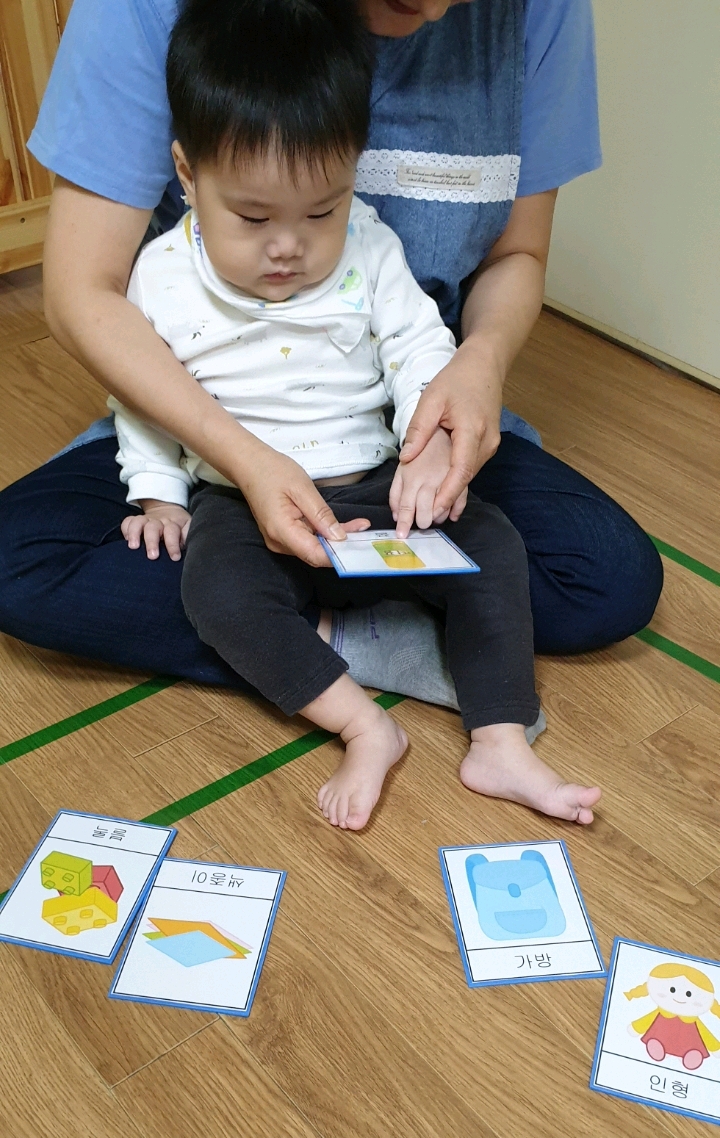 물건 그림카드를 보여주며 이름을 이야기 해주자 잘 듣고 물건 이름을 말했어요. 그리고 그림카드에 있는 물건그림과 실물을 비교해 보며 이야기를 나누었답니다.