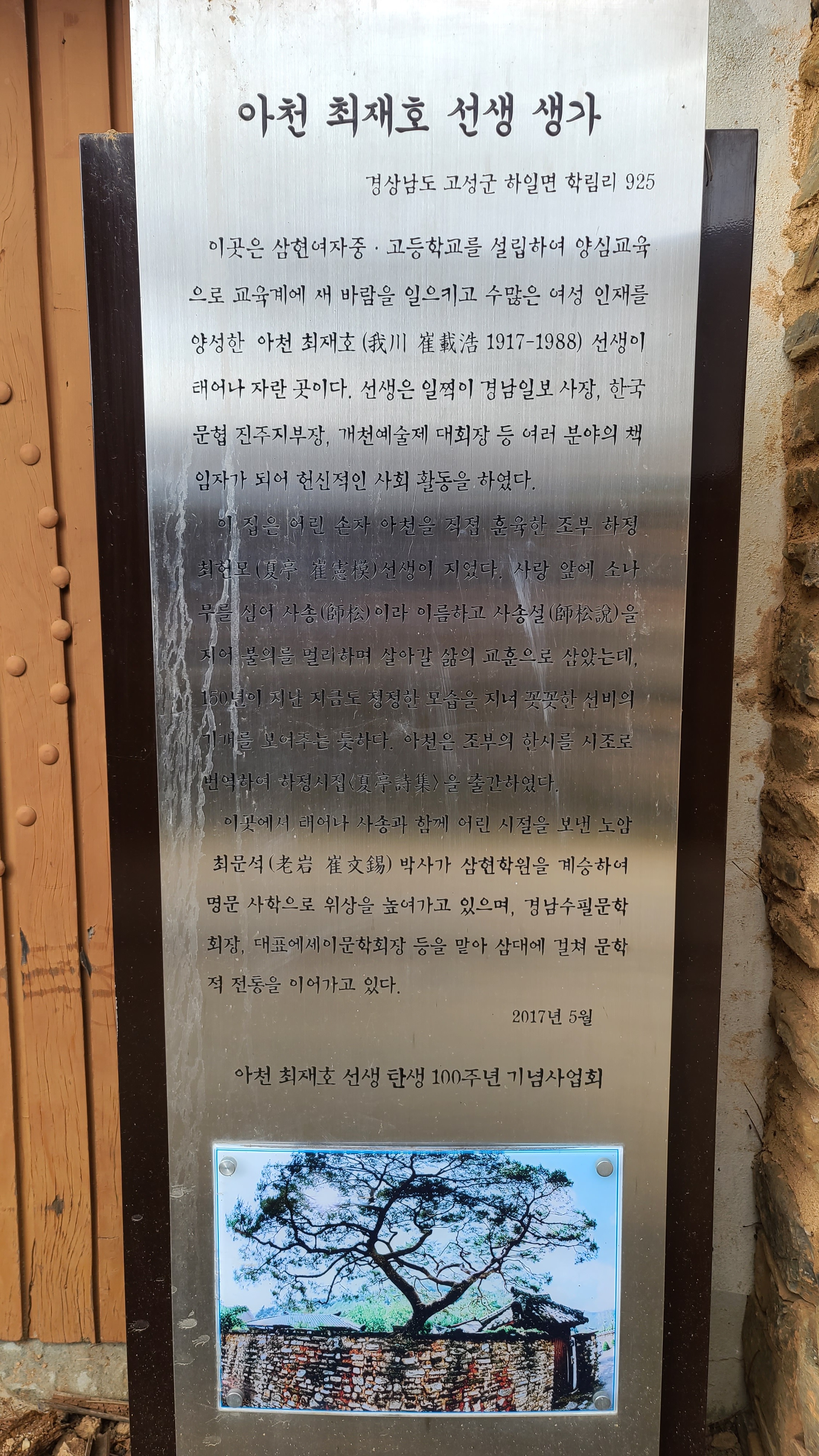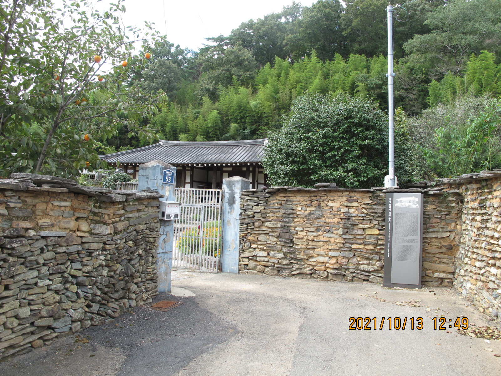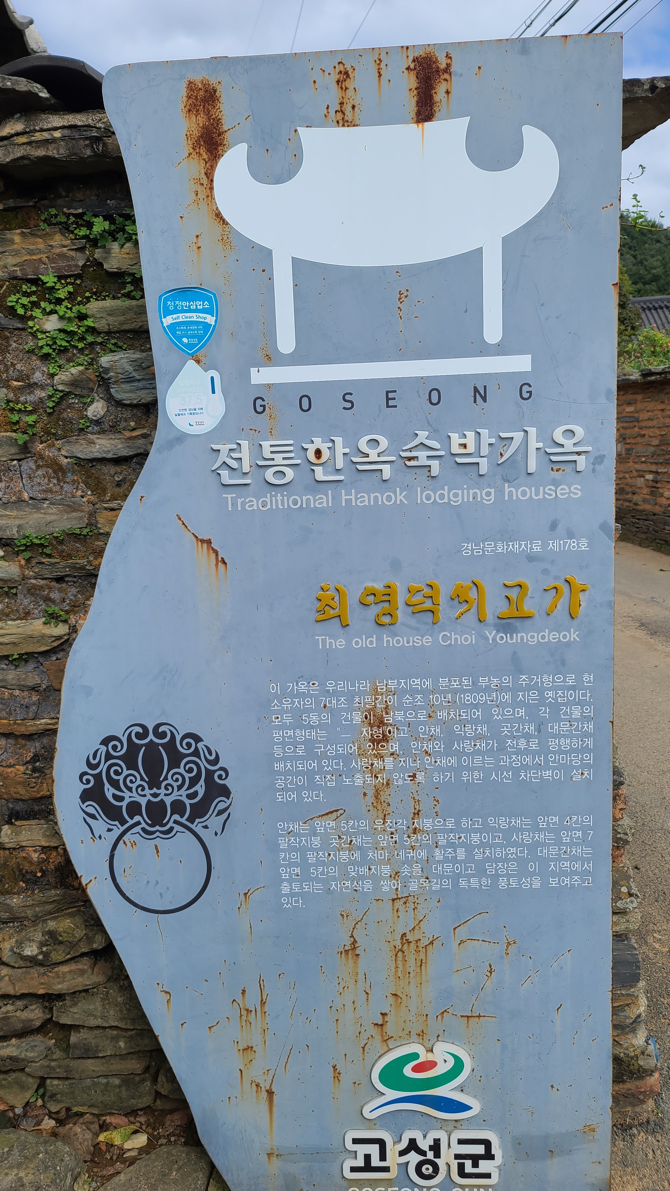 남파랑길 32코스에서 지금까지 자연 경관의 아름다움에 빠졌다면, 학동마을에서부터는 인간의 땀방울이 맺쳐있는 경관의 아름다움과 생활의 오랜 전통가옥의 아름다움을 살피며 감동한다. 학동마을은 전국 제일의 전주 최씨의 집성촌이라고 한다. 학동마을 옛 담장을 쌓은 선인들의 노력과 정성에 감탄한다. 고적한 분위기의 돌담길을 걸어 전주 최씨의 고택들을 살피며 인간 삶의 흔적을 들여다 보는 일은 남파랑길을 걷는 즐거움을 배가시킨다. 학동마을은 최형태公이 1670년경에 들어와 전주 최씨 세거지로 개창되었는데, 입향조 최형태公의 5세손 최필간公이 1809년경 분가하여 건립하였다는 최영덕씨 고가(=고성 최필간 고택=학동 최승지댁)가 학동마을 고택의 중심이 된다. 안내지를 읽어 보면 최필간公의 손자 매사(梅史) 최태순公이 학동마을 전주 최씨 가문을 부흥시키는 중심 역할을 한 것 같다. 고택 사랑채 현판은 학림헌, 대청마루 들보에 여러 '敎旨'를 표구한 것을 비롯하여 사진 등이 걸려 있는데, '梅史' 편액이 돋보였다.