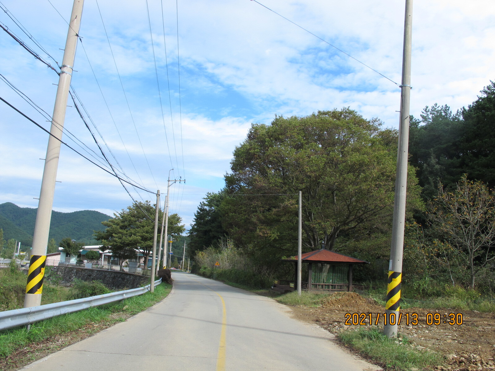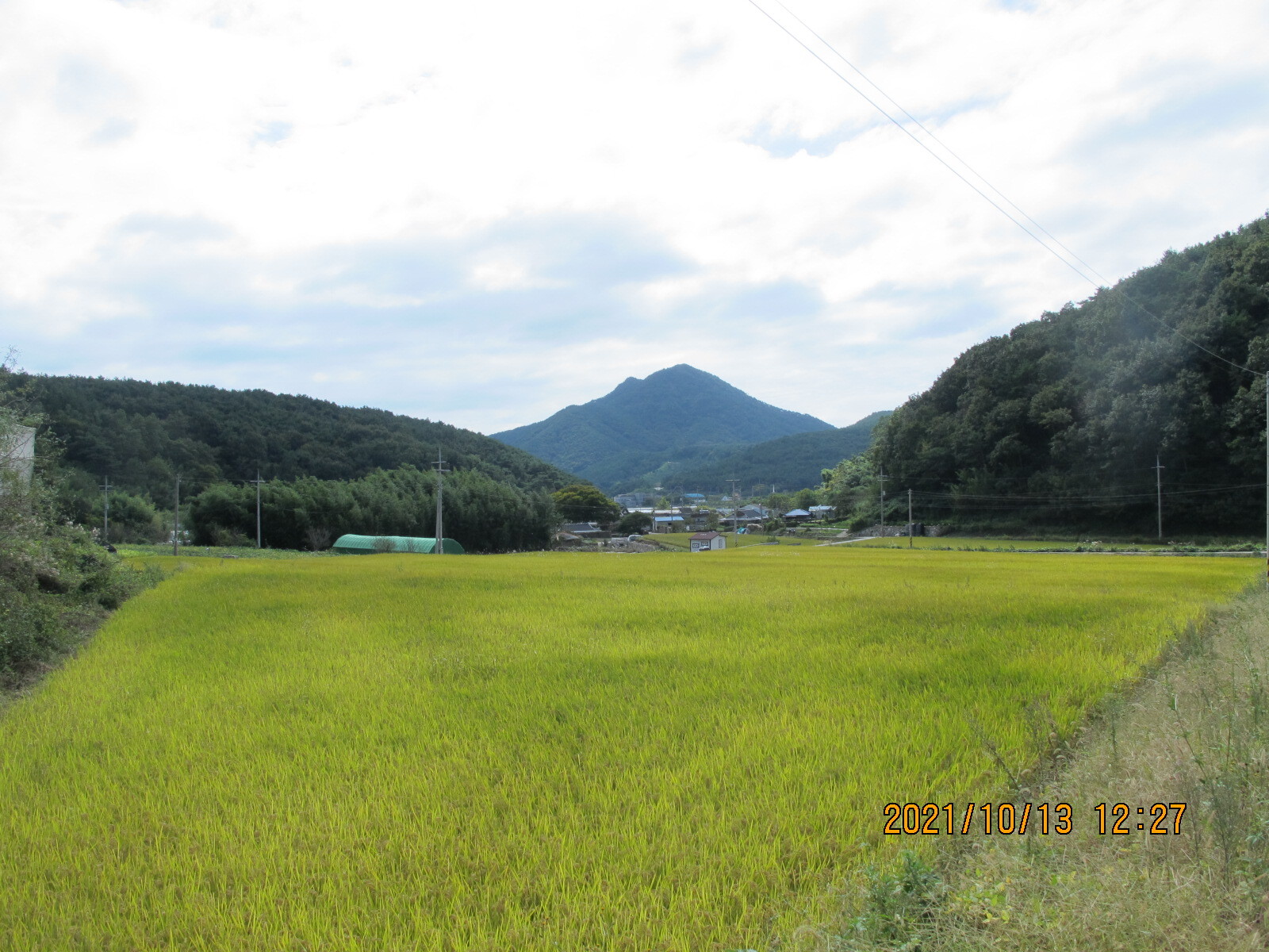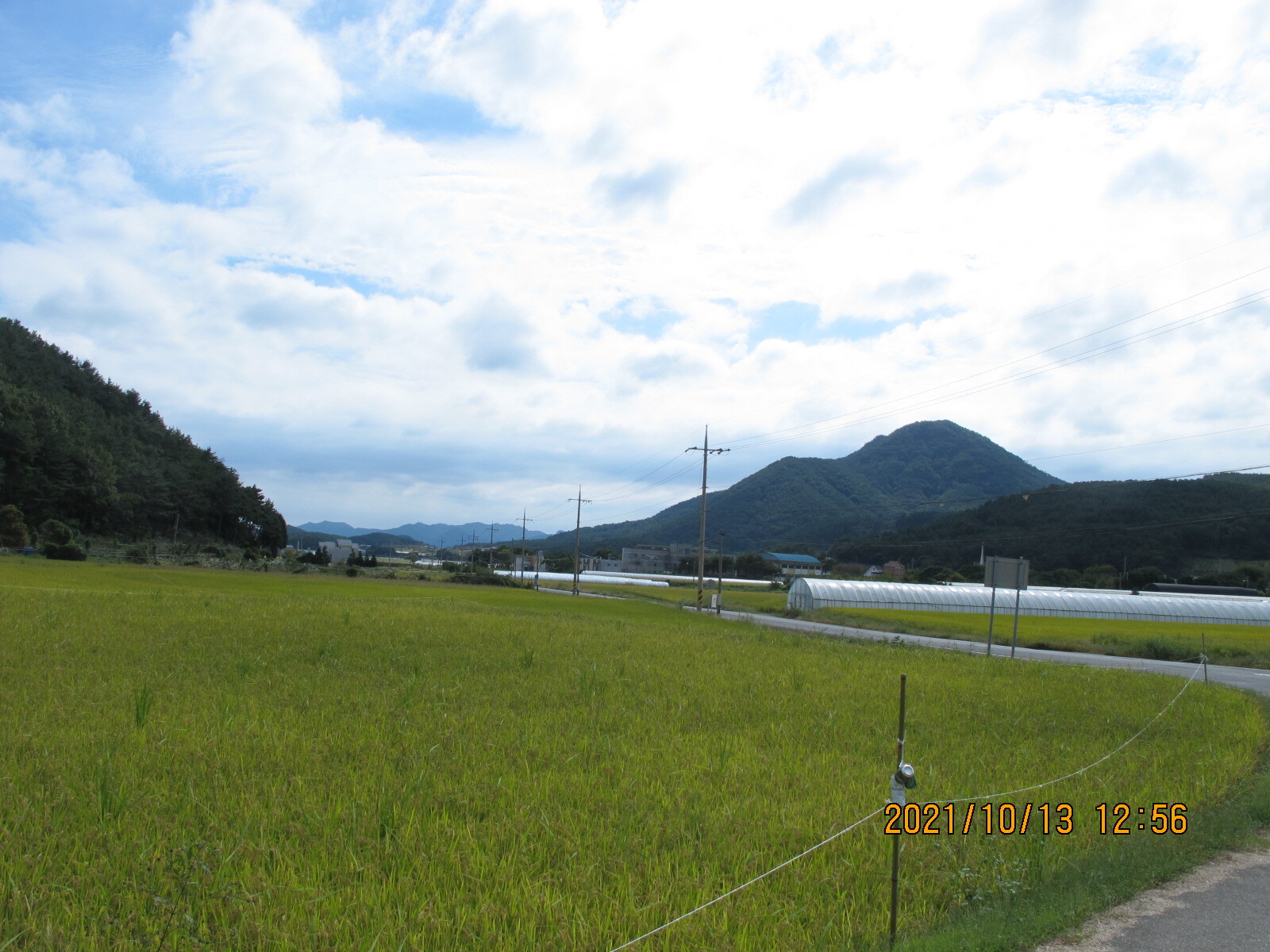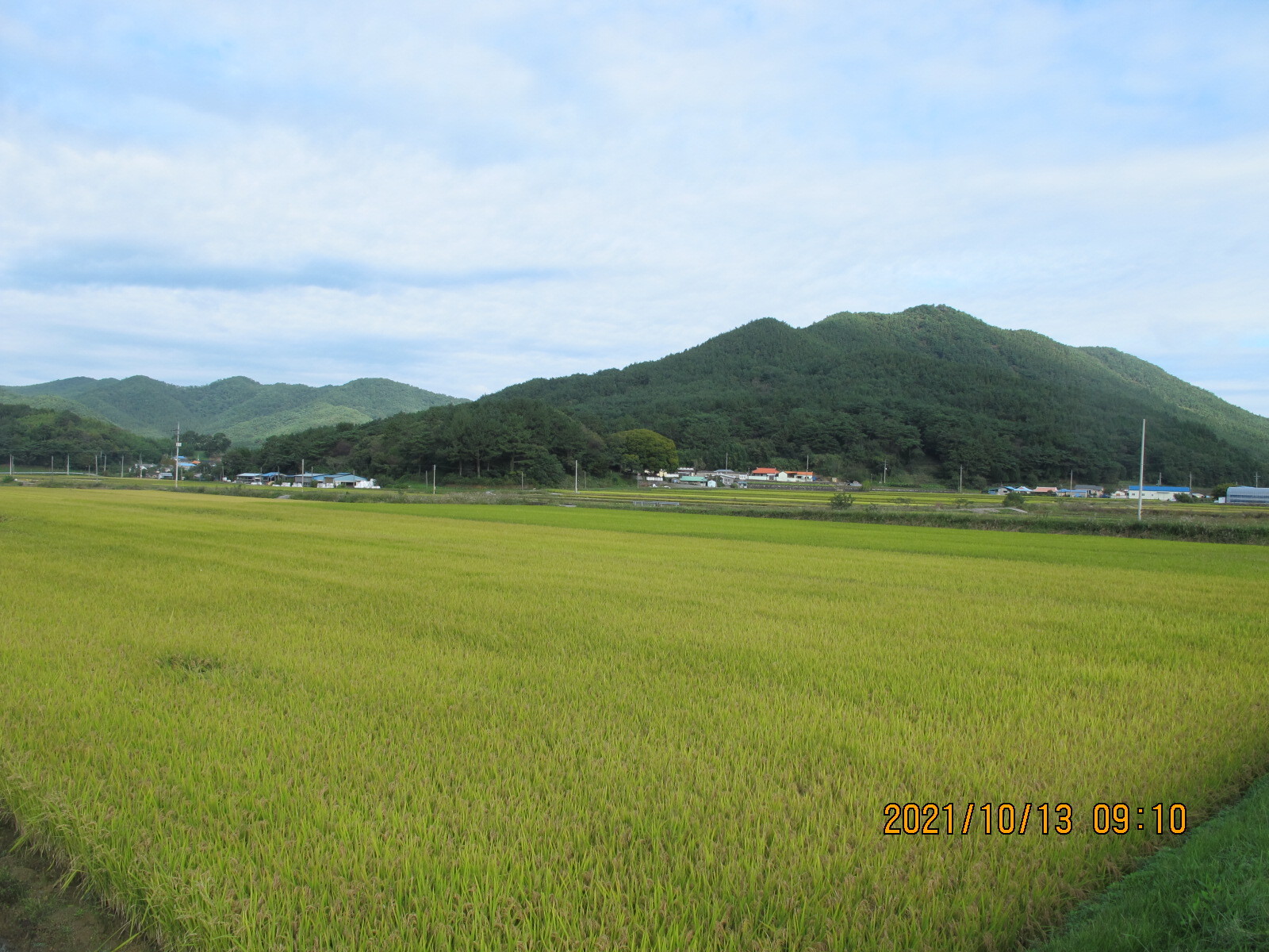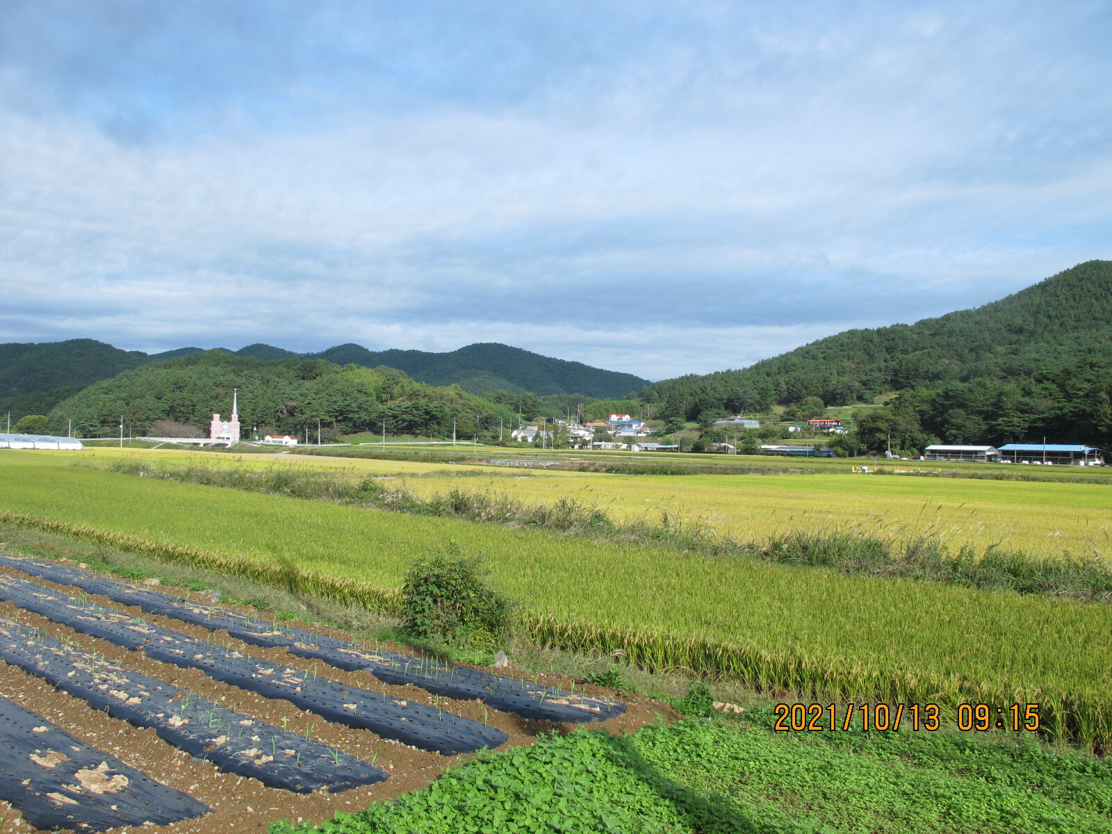 왼쪽에 망림교회가 보이고, 그 뒷산이 대보산인 듯. 평온한 농촌 마을 풍경을 보여준다.