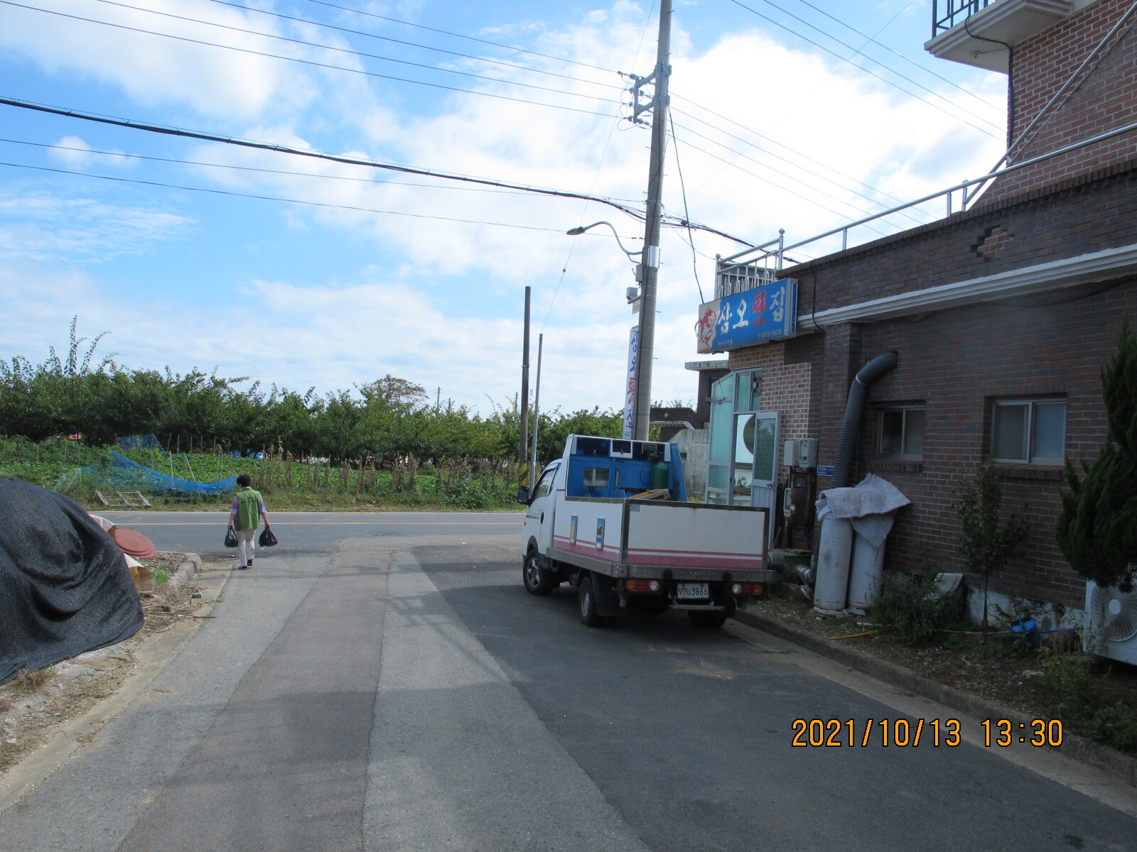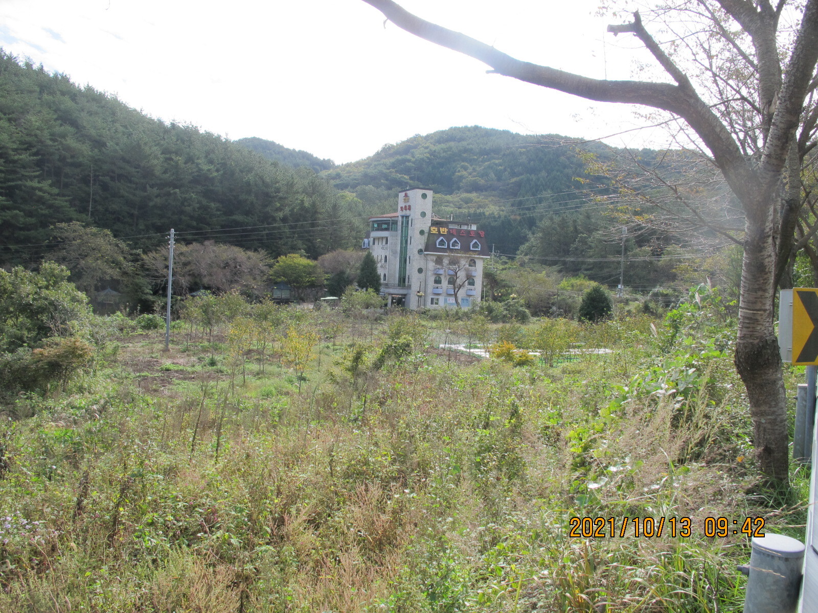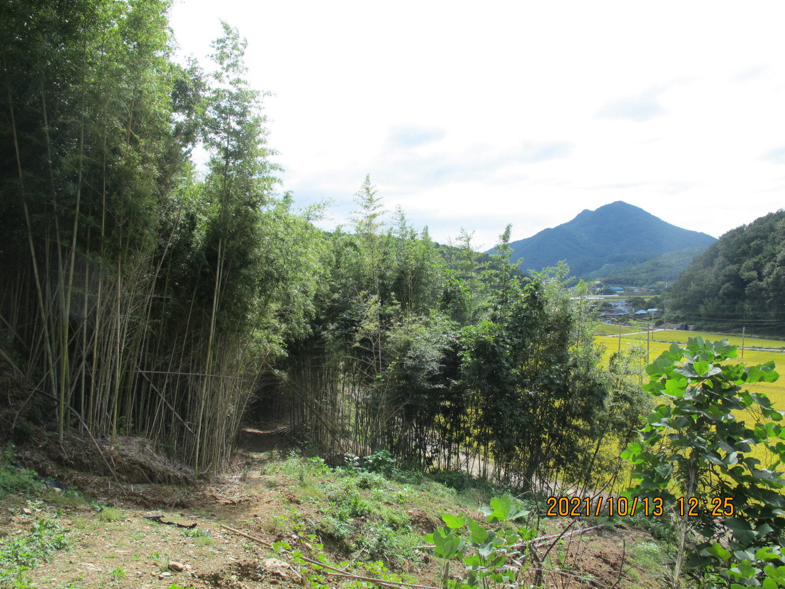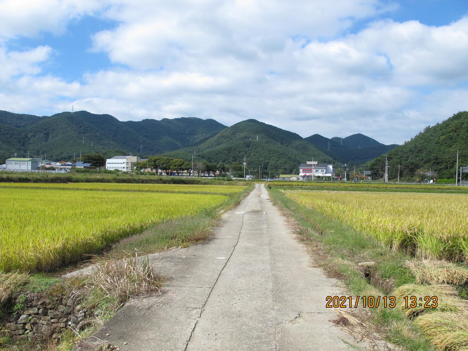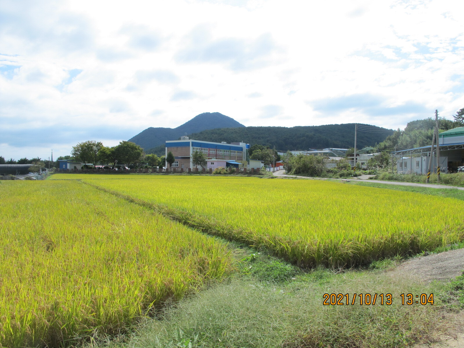 왼쪽에 망림교회가 보이고, 그 뒷산이 대보산인 듯. 평온한 농촌 마을 풍경을 보여준다.