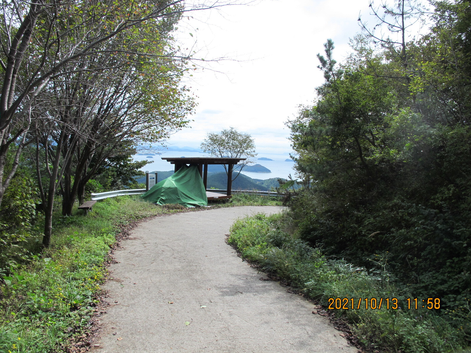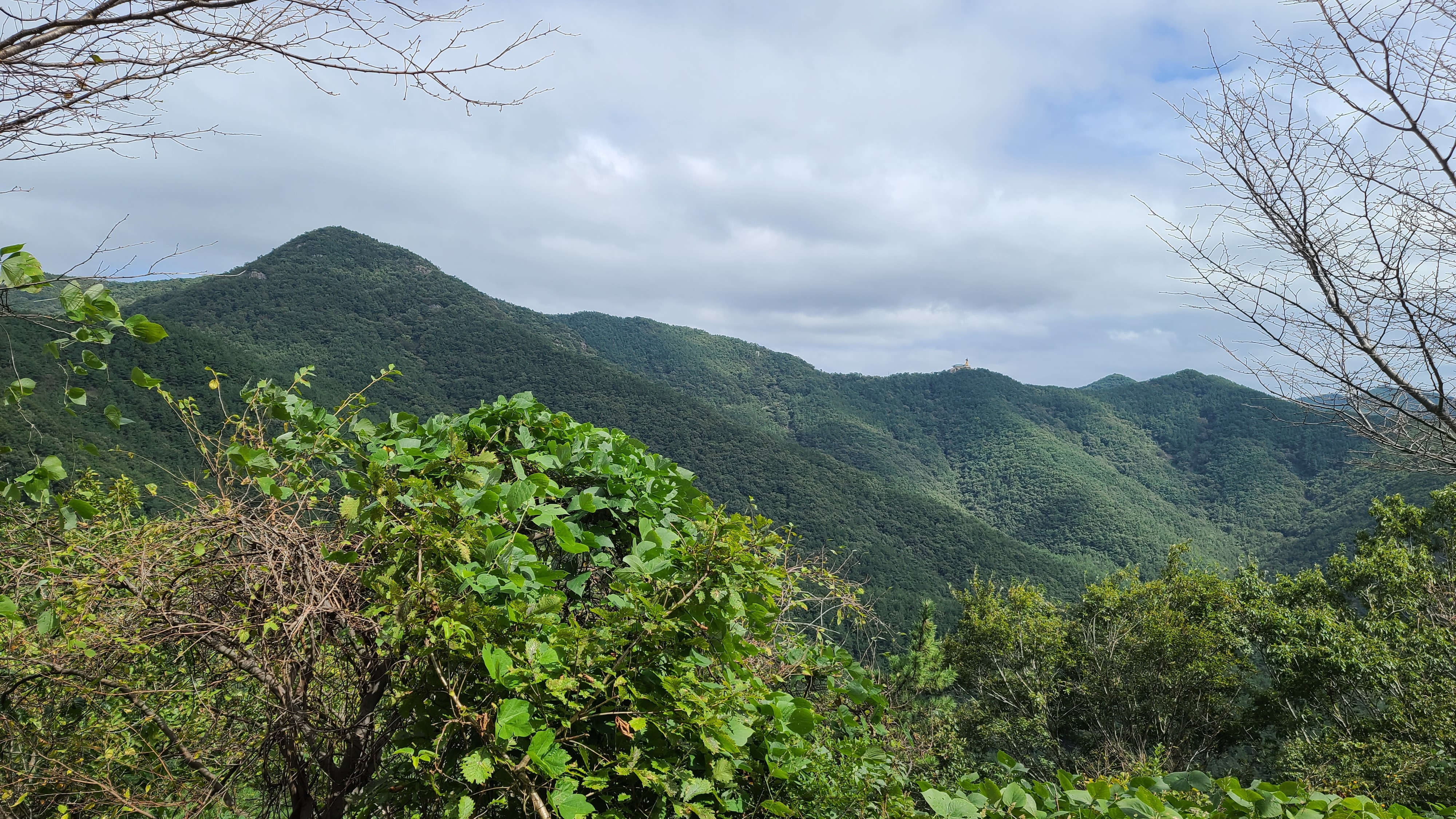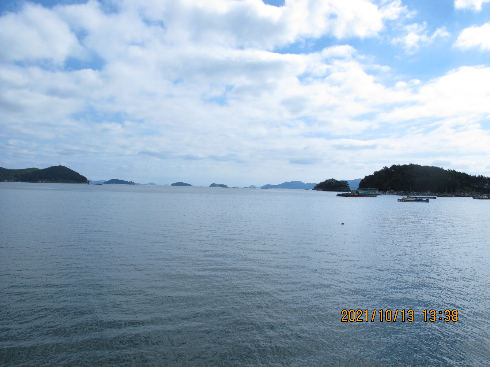 남파랑길 32코스의 어려움은 여기서 모두 끝난다. 이제부터는 다리의 고통을 지우며 눈의 복을 누리는 시간이다. 상리연꽃공원 갈림목과 수태재를 지나면서 왼쪽으로 수태산-보현암 약사전 거대한 약사여래금불좌상-돌구산의 산줄기와 대상물을 살피는 일은 가슴 벅차다. 또 앞쪽으로 자란만과 자란도를 비롯한 섬들이 있는 한려해상경관에 환호하며 넋을 빼앗긴다. 특히 임도의 쉼터정자에서 바라보는 자란만과 멀리 벽방산 풍경을 조망하는 것이 압권이었다.