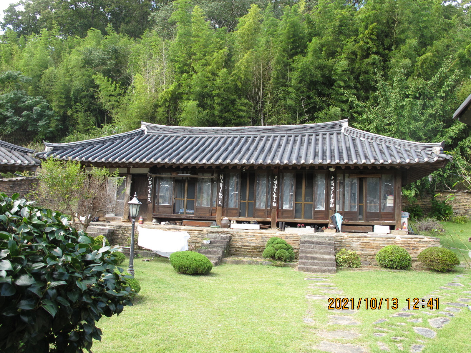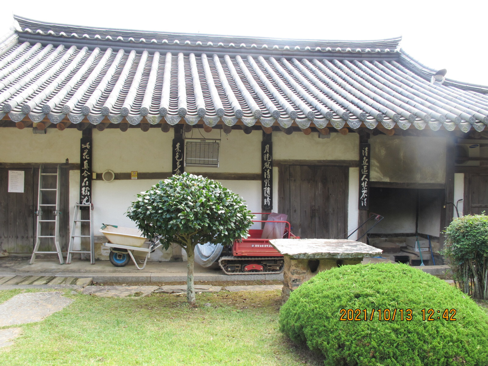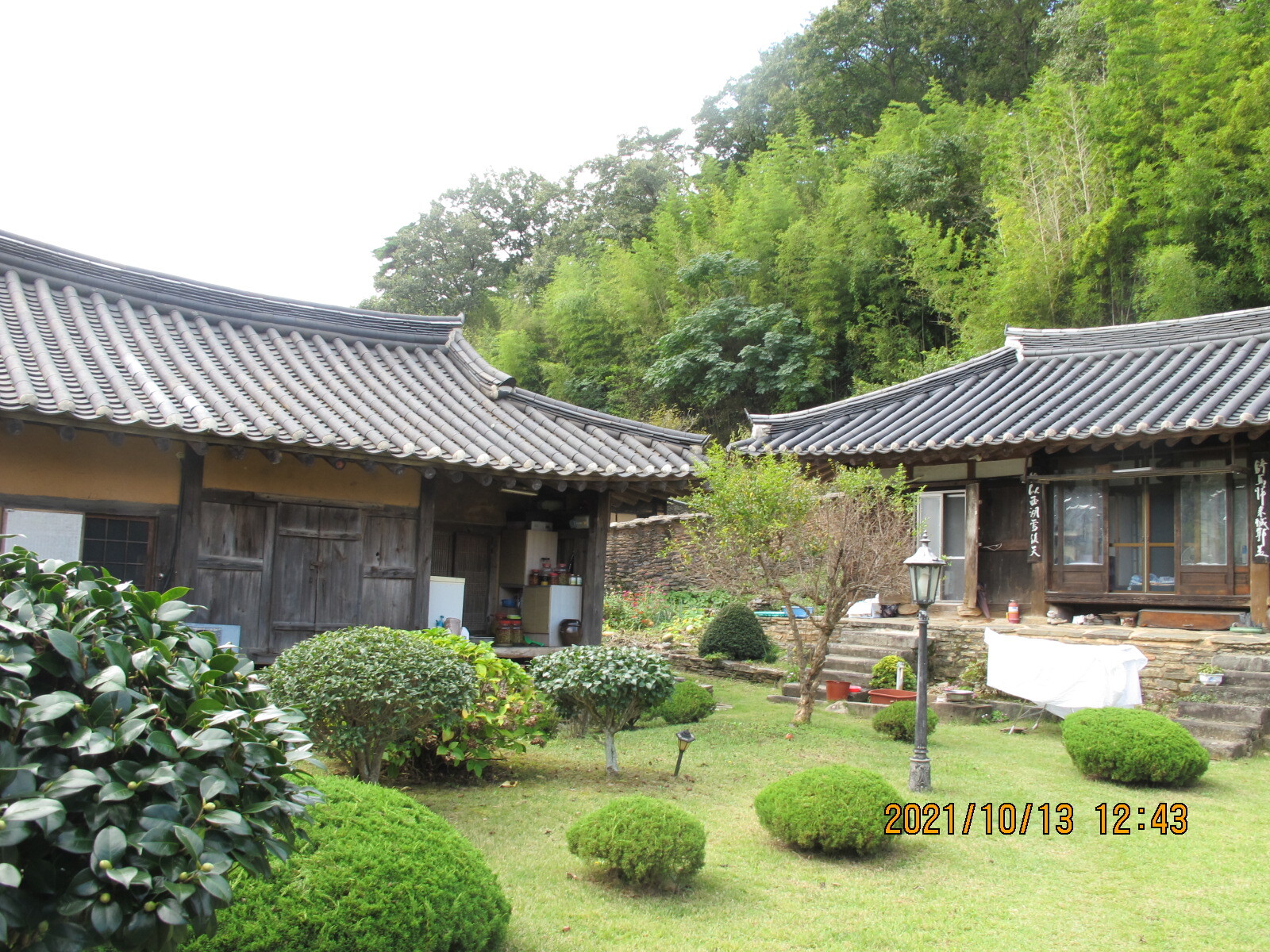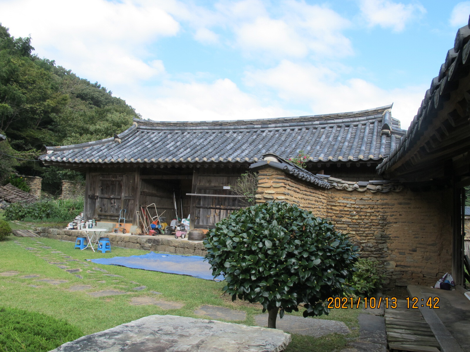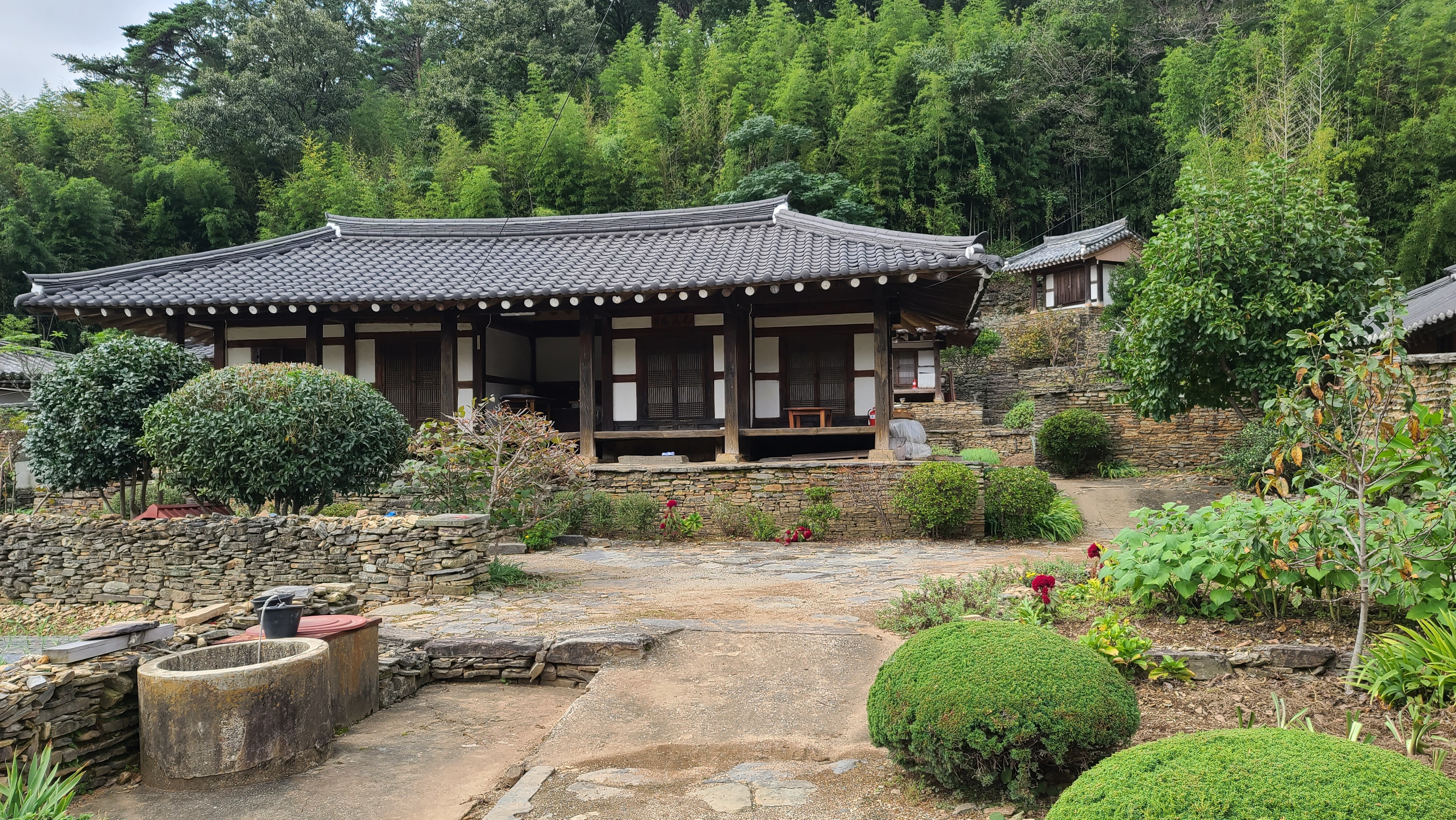 동백나무 뒤 짧은 담은 안채와 사랑채를 구분해 주는 담장
