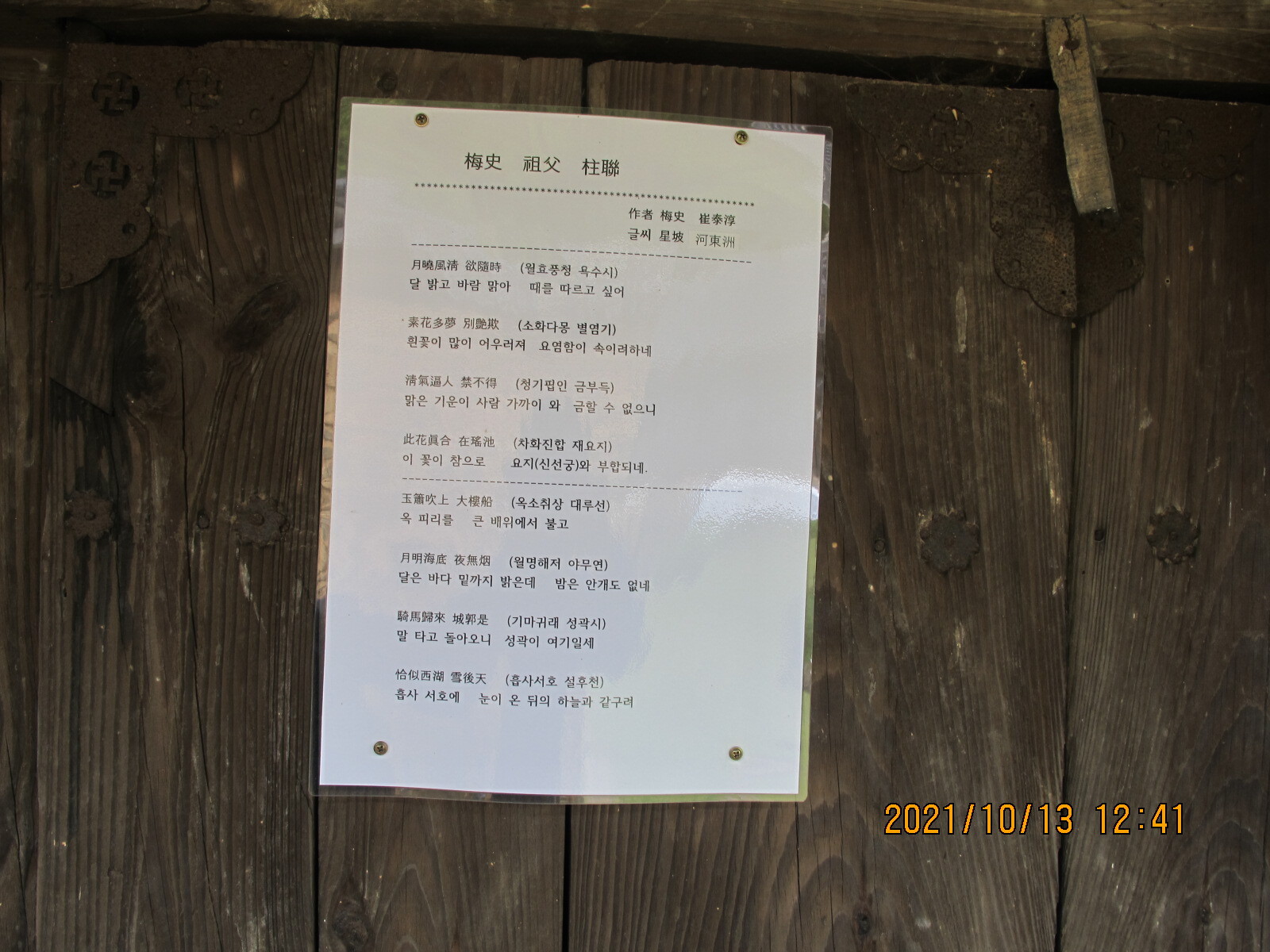 입향조 최형태公의 5세손 聖和 최필간(崔必侃)公이 1809년에 지은 집이다. 현판은 '매사려(梅史廬)', '매사(최필간의 손자 최태순의 호)의 농막집'이라는 뜻인 듯. 현재는 최필간公의 7세 후손 최영덕씨 소유인 듯, 그래서 '최영덕씨 고가'라고도 불린다.