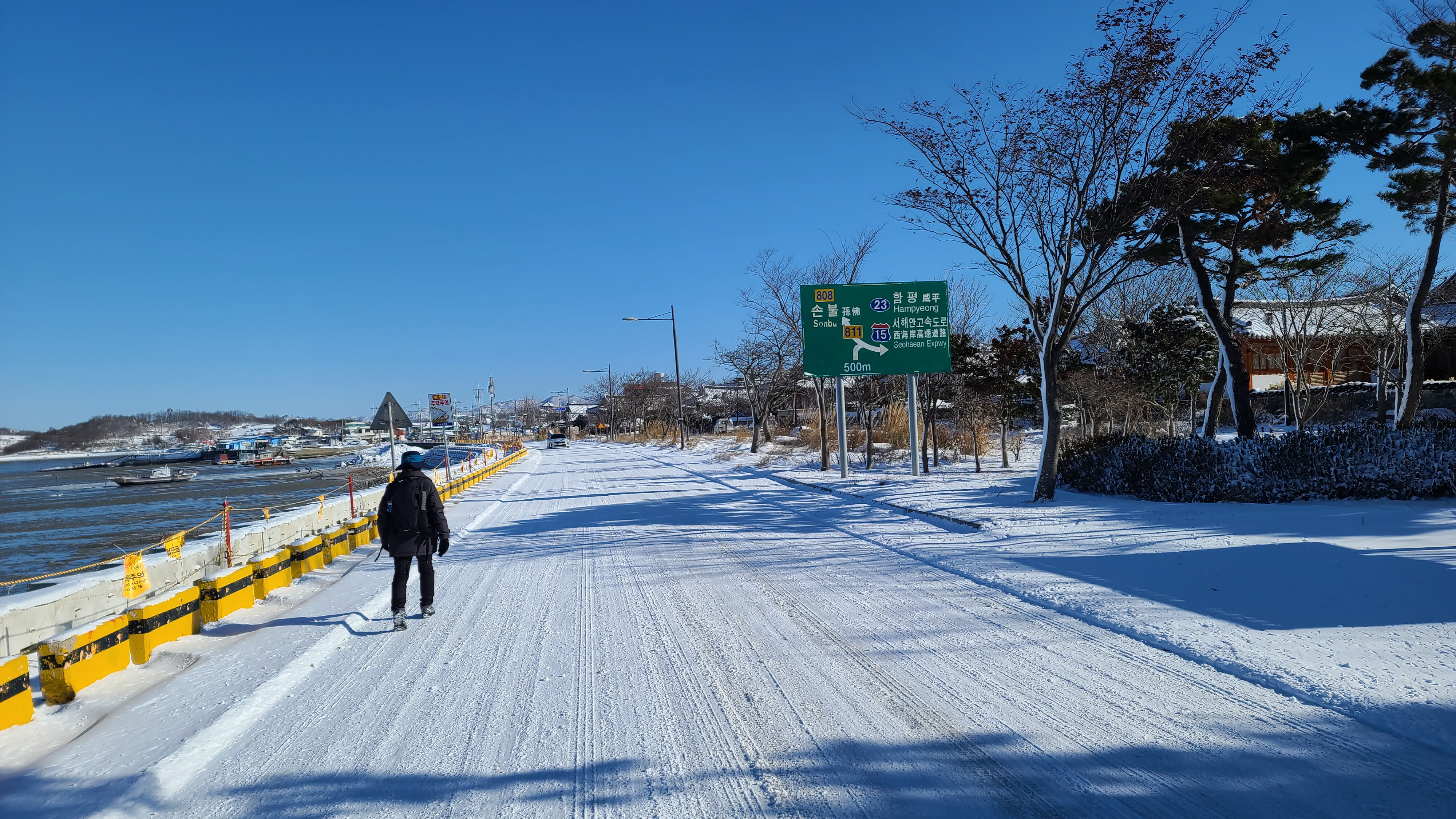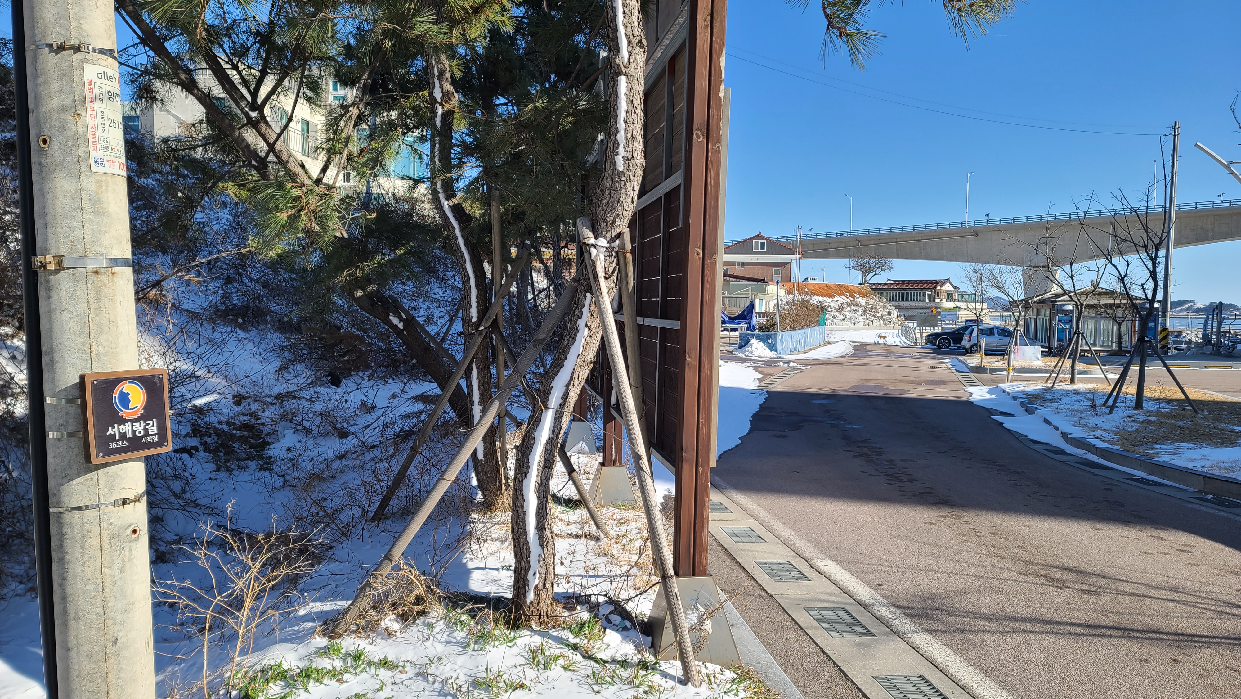 함해만 해안길을 이곳까지 걸어와서 해안길이 이어지지 않아 해창마을 앞 도로로 나간다.
