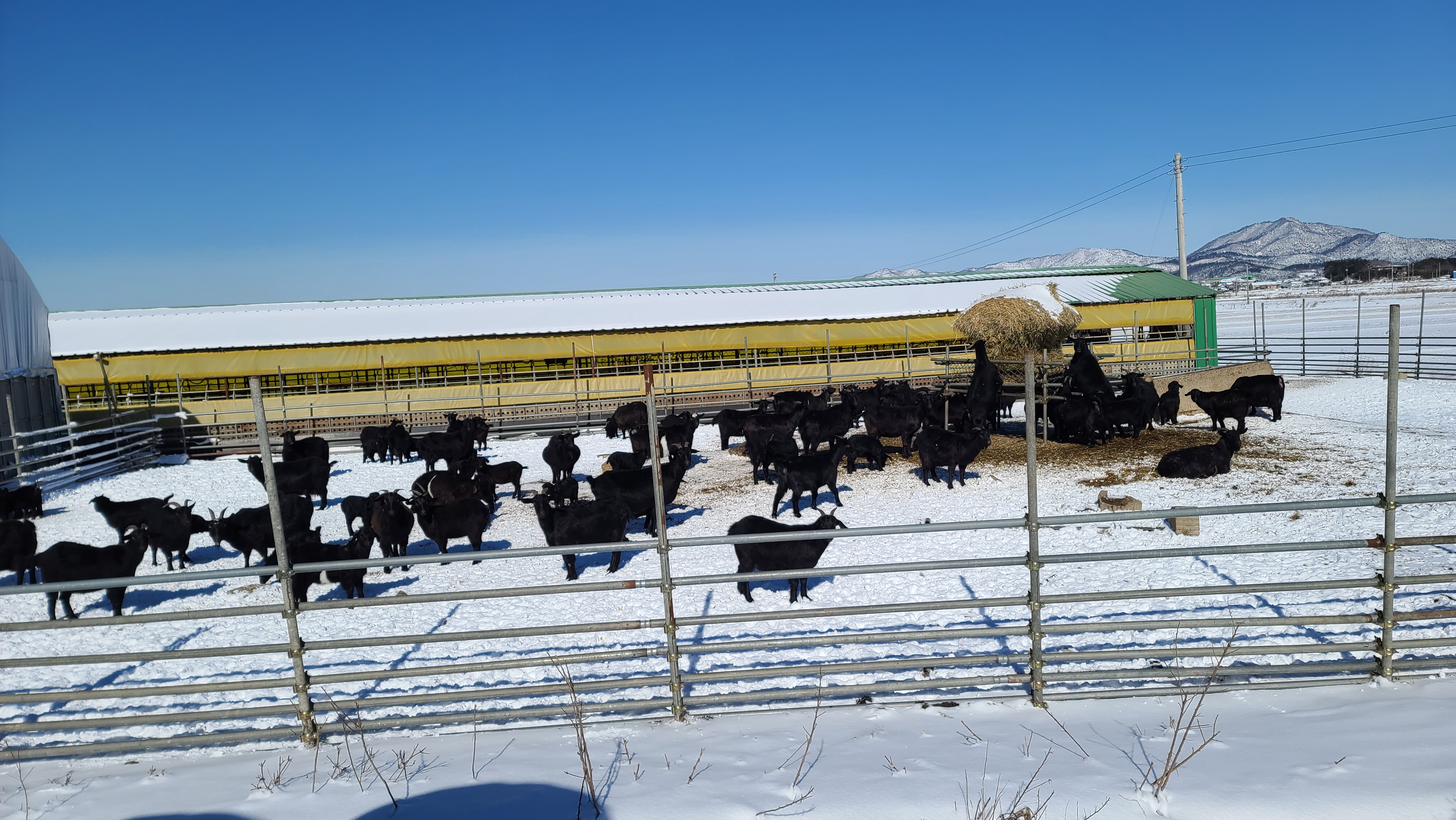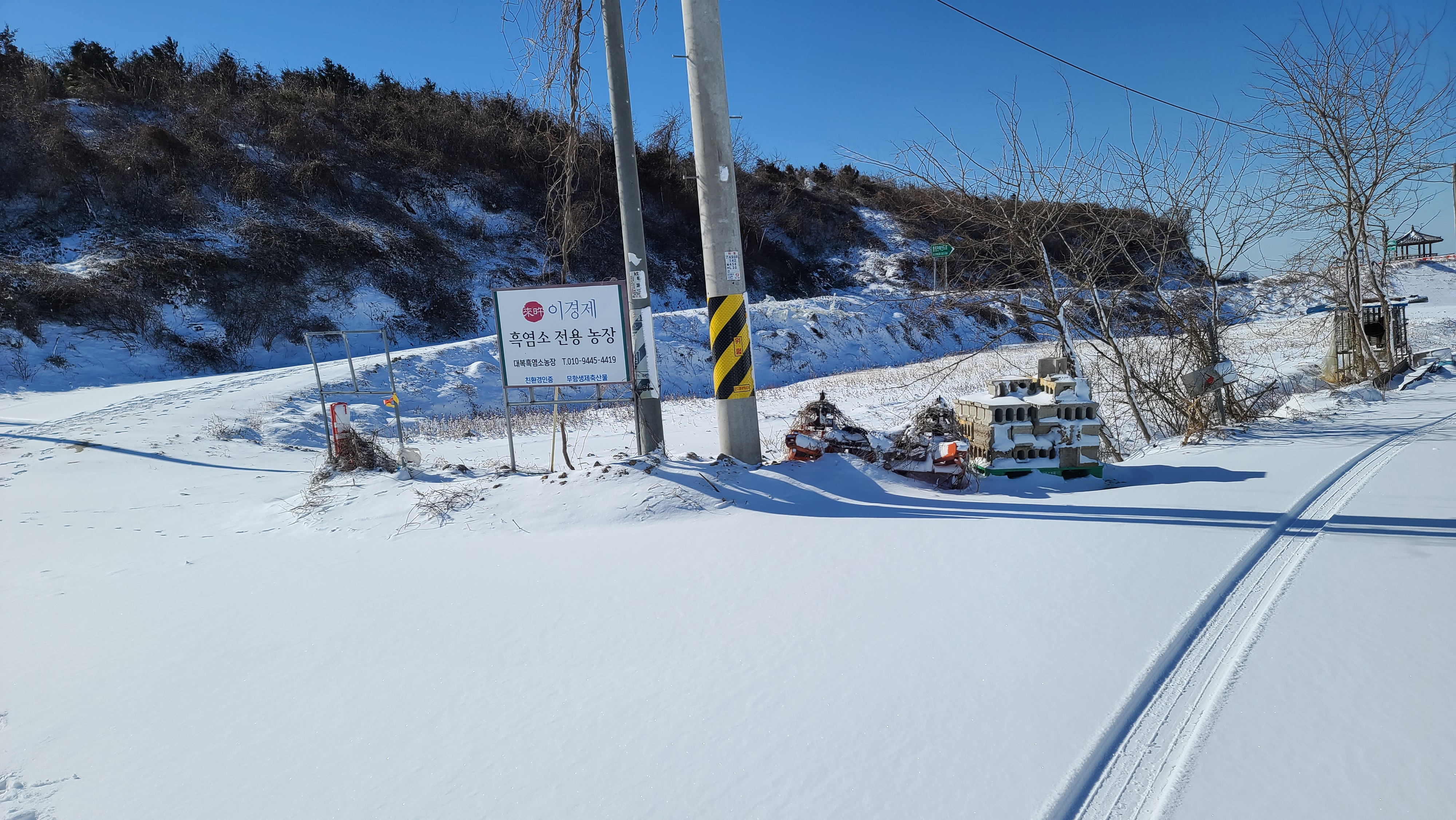 앞에 보이는 흑염소농장 앞에서 왼쪽 길로 들어서 함해만 해안으로 나간다.
