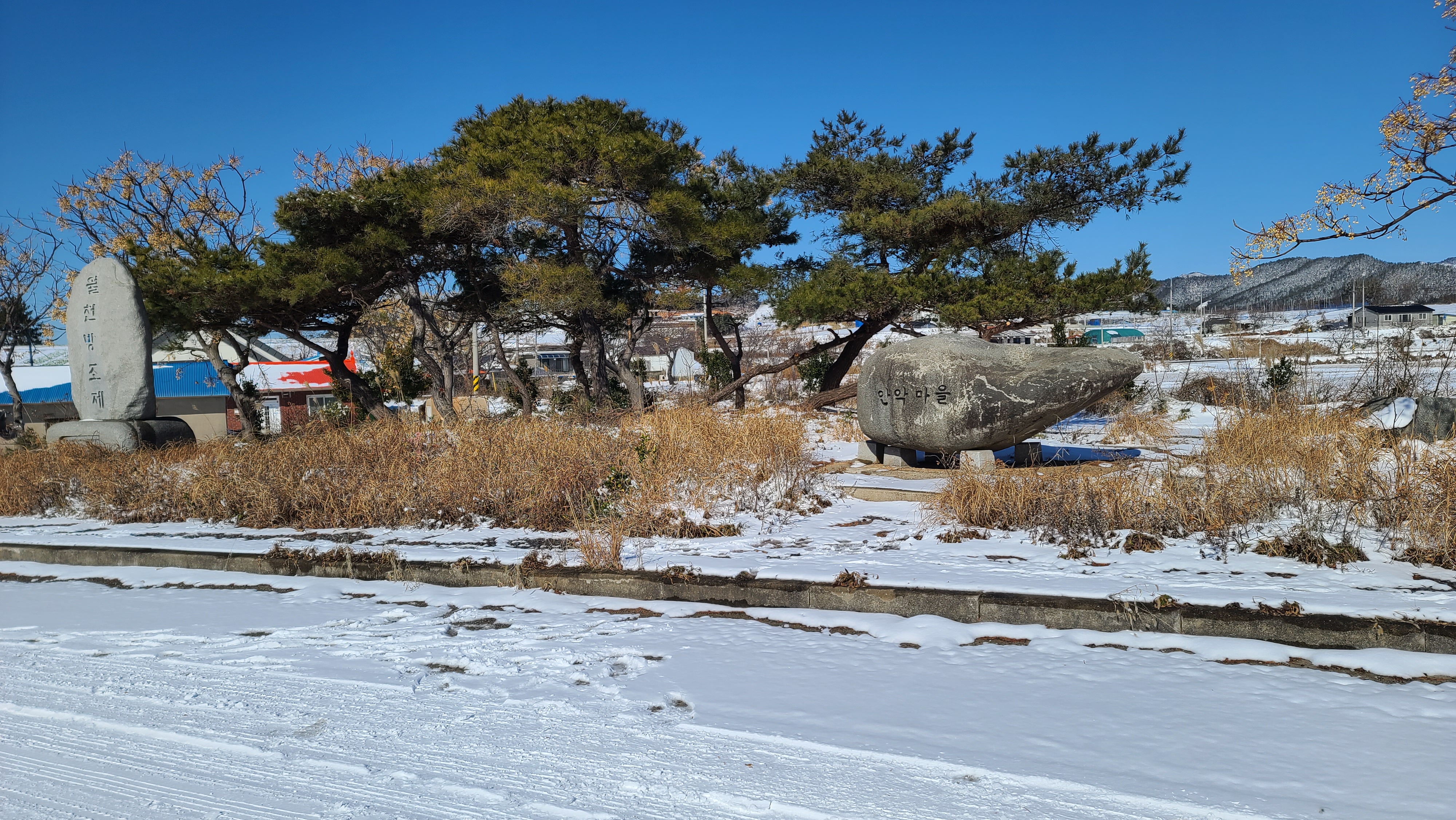 월천방조제 표석과 안악마을 표석이 세워져 있다.
