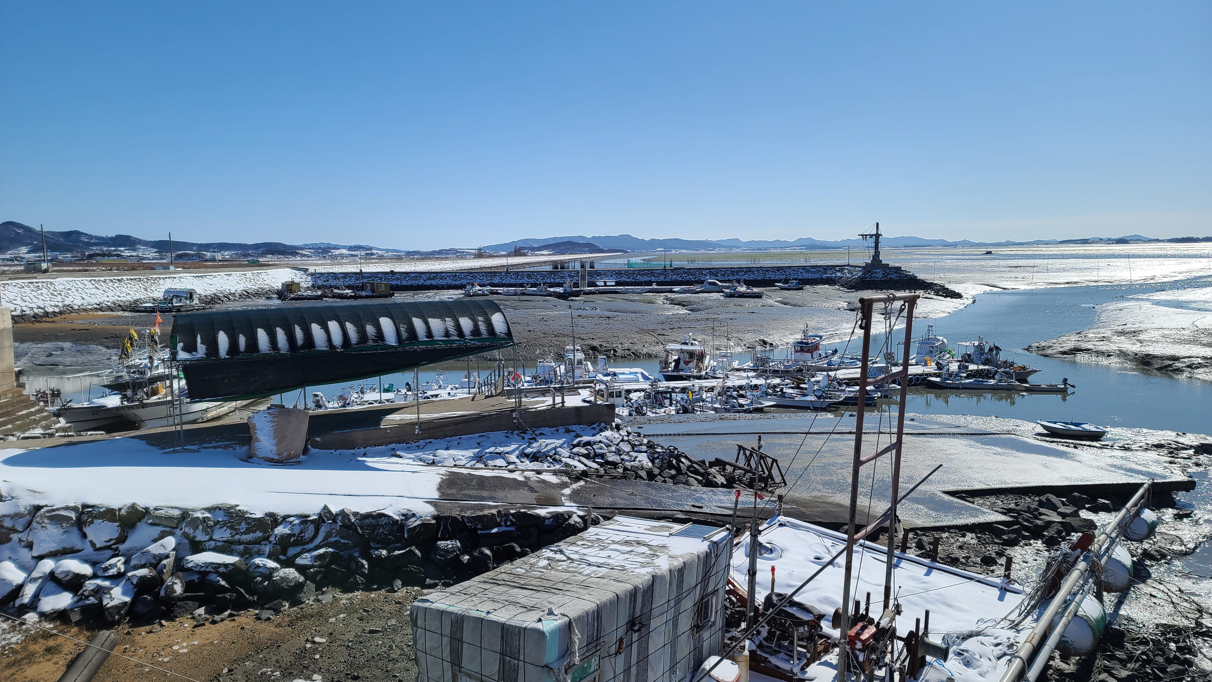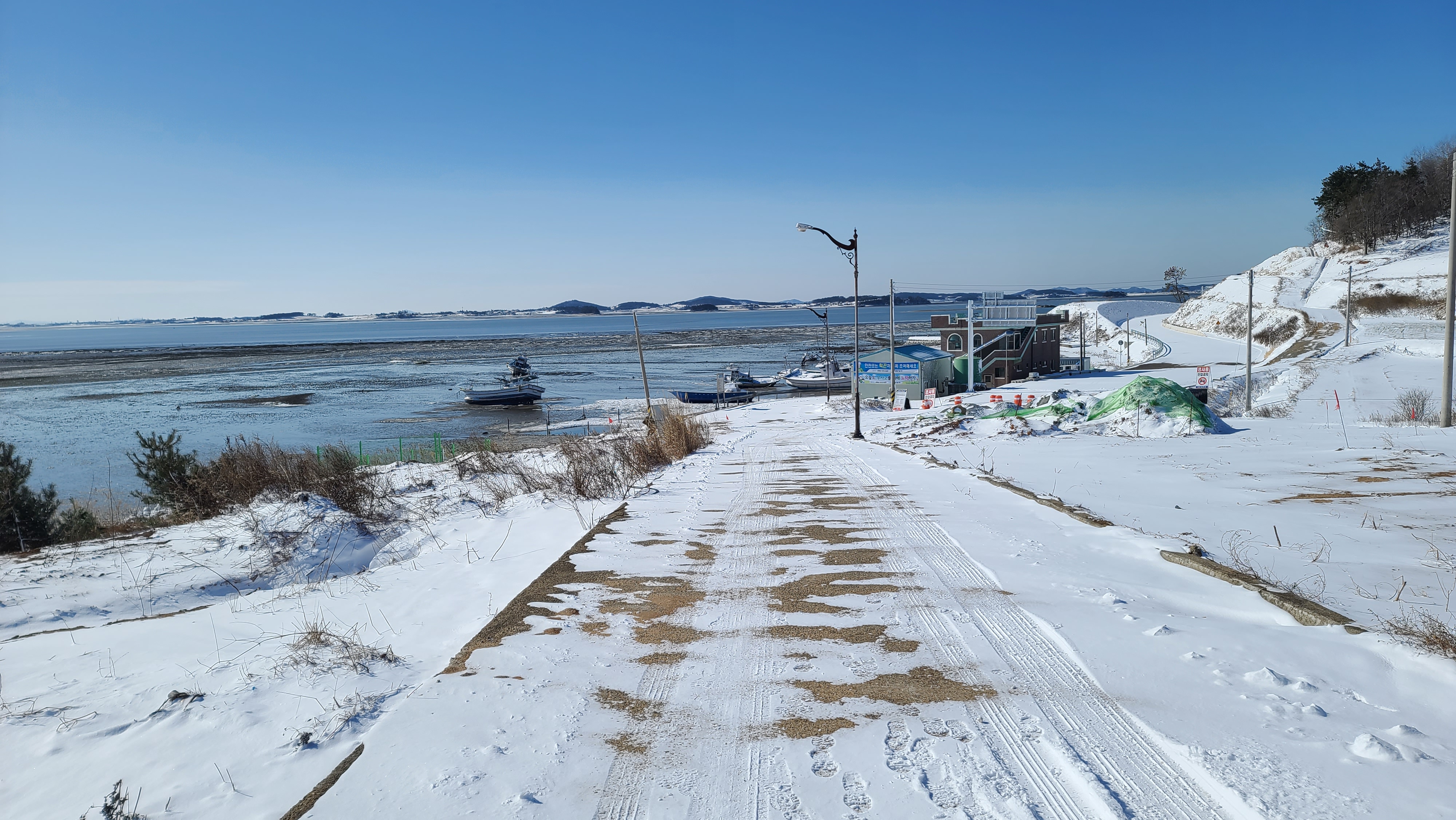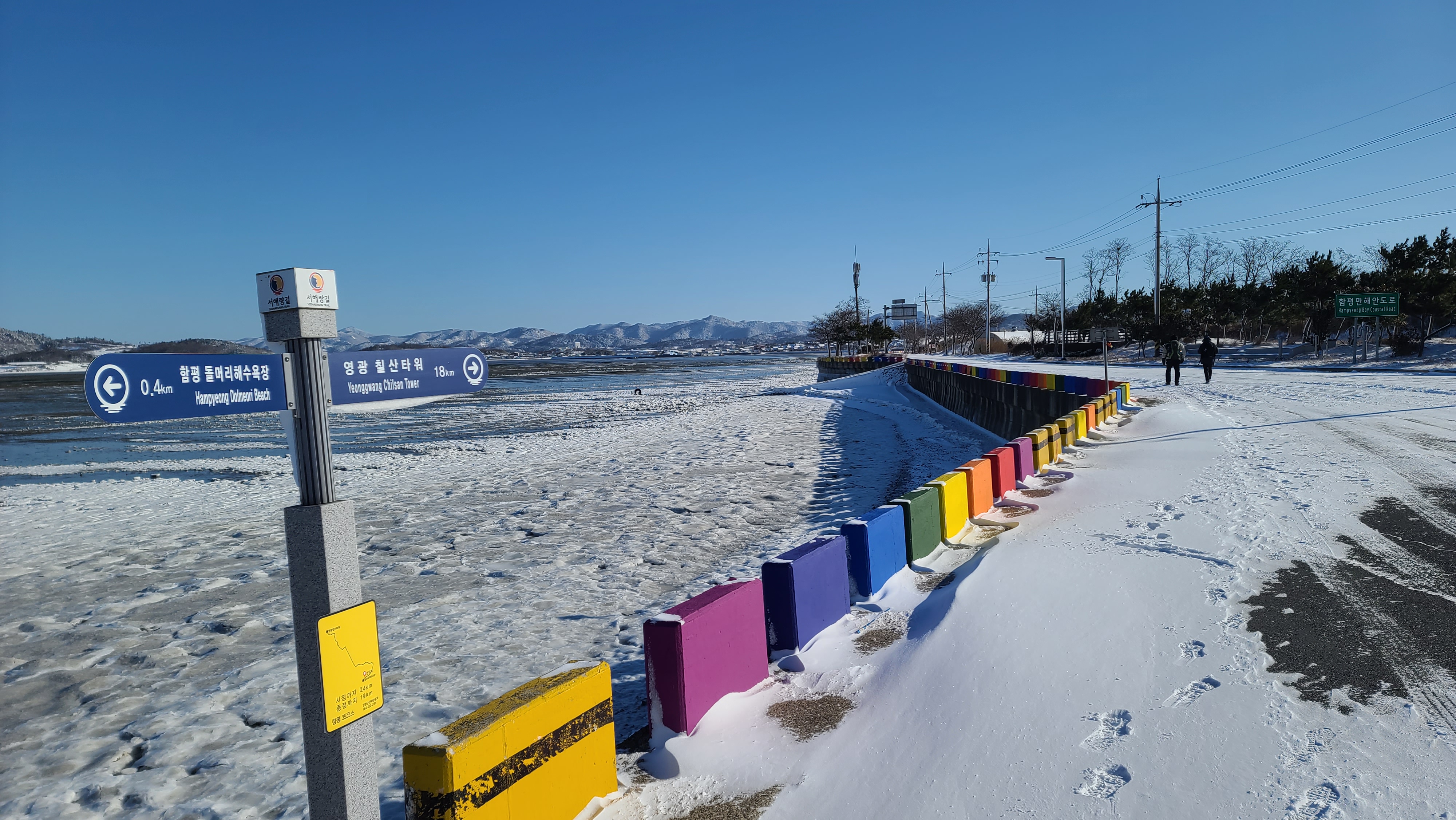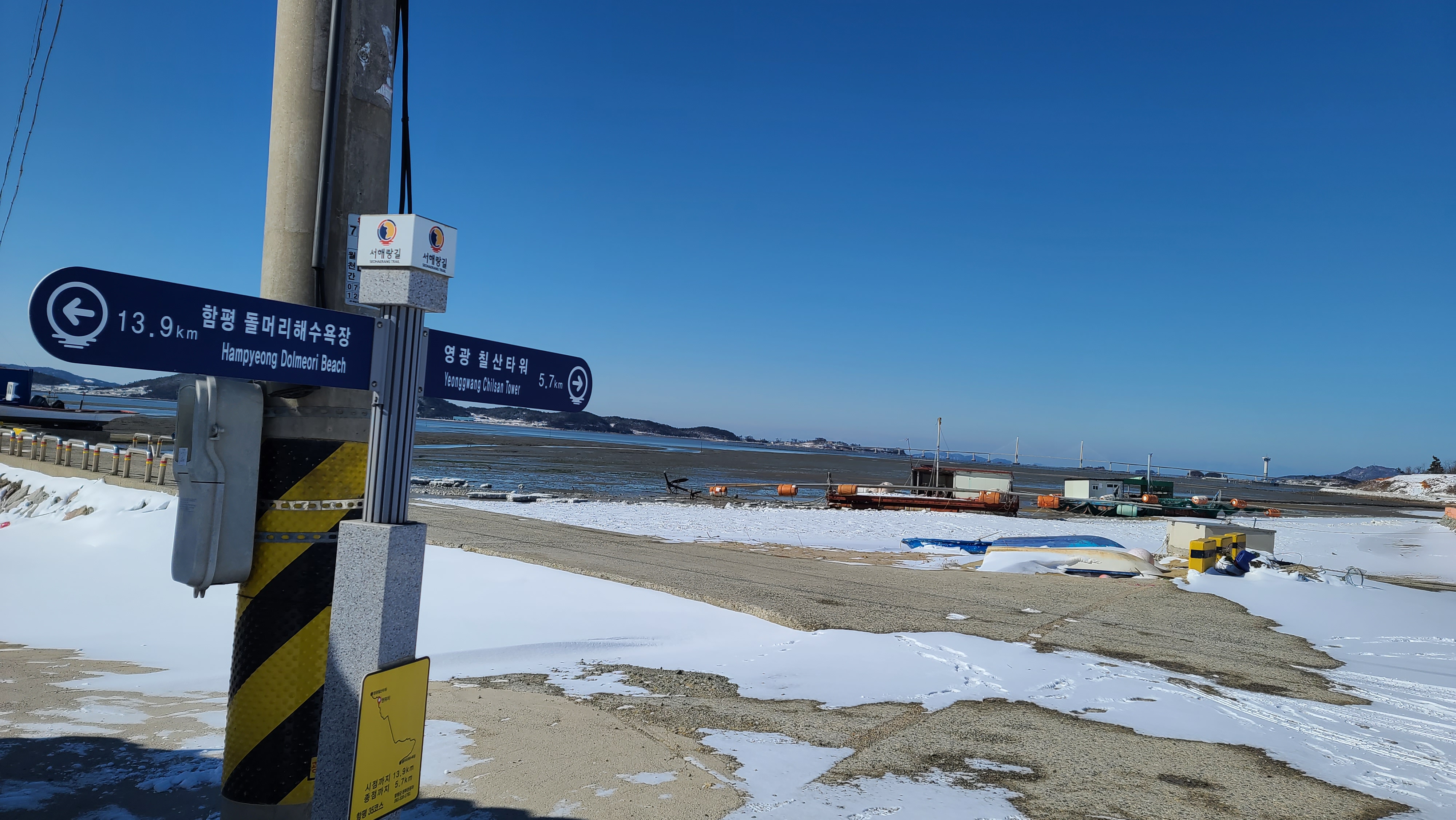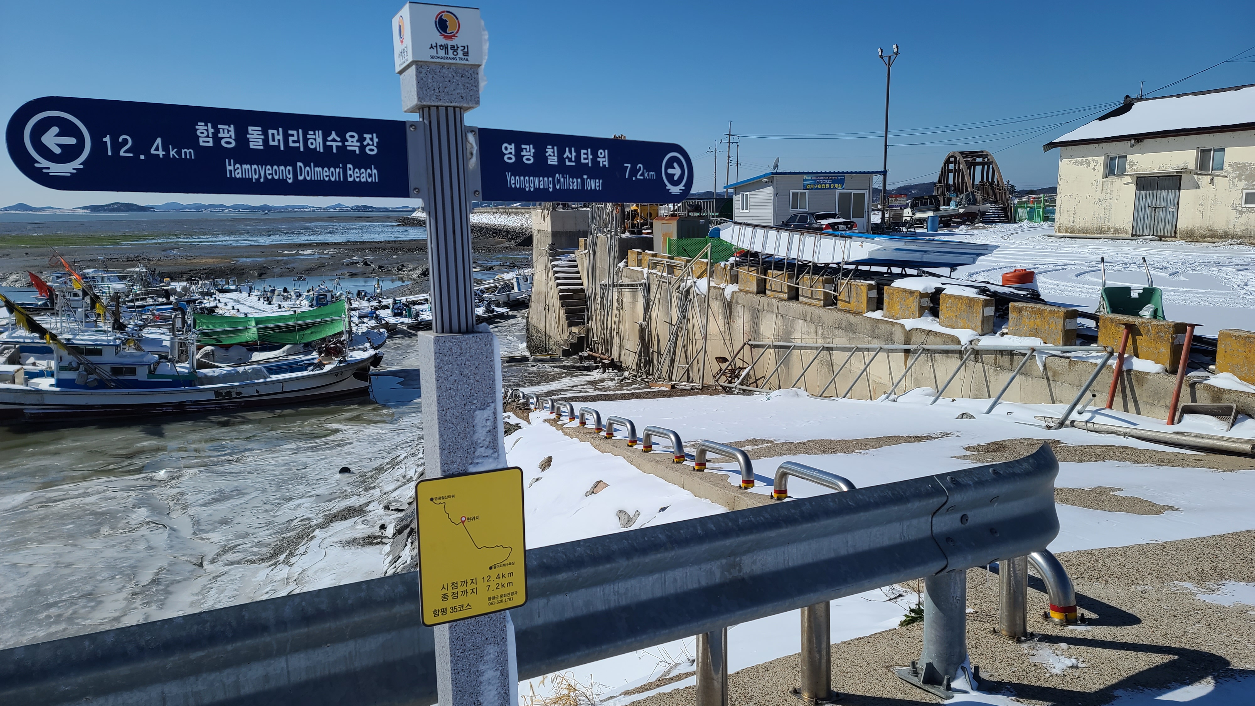 해안도로를 따라 왼쪽으로 돌아 함평항으로 이어간다. 앞마을은 함평항 뒤에 자리한 학산리(鶴山里) 해은(海隱)마을이다.