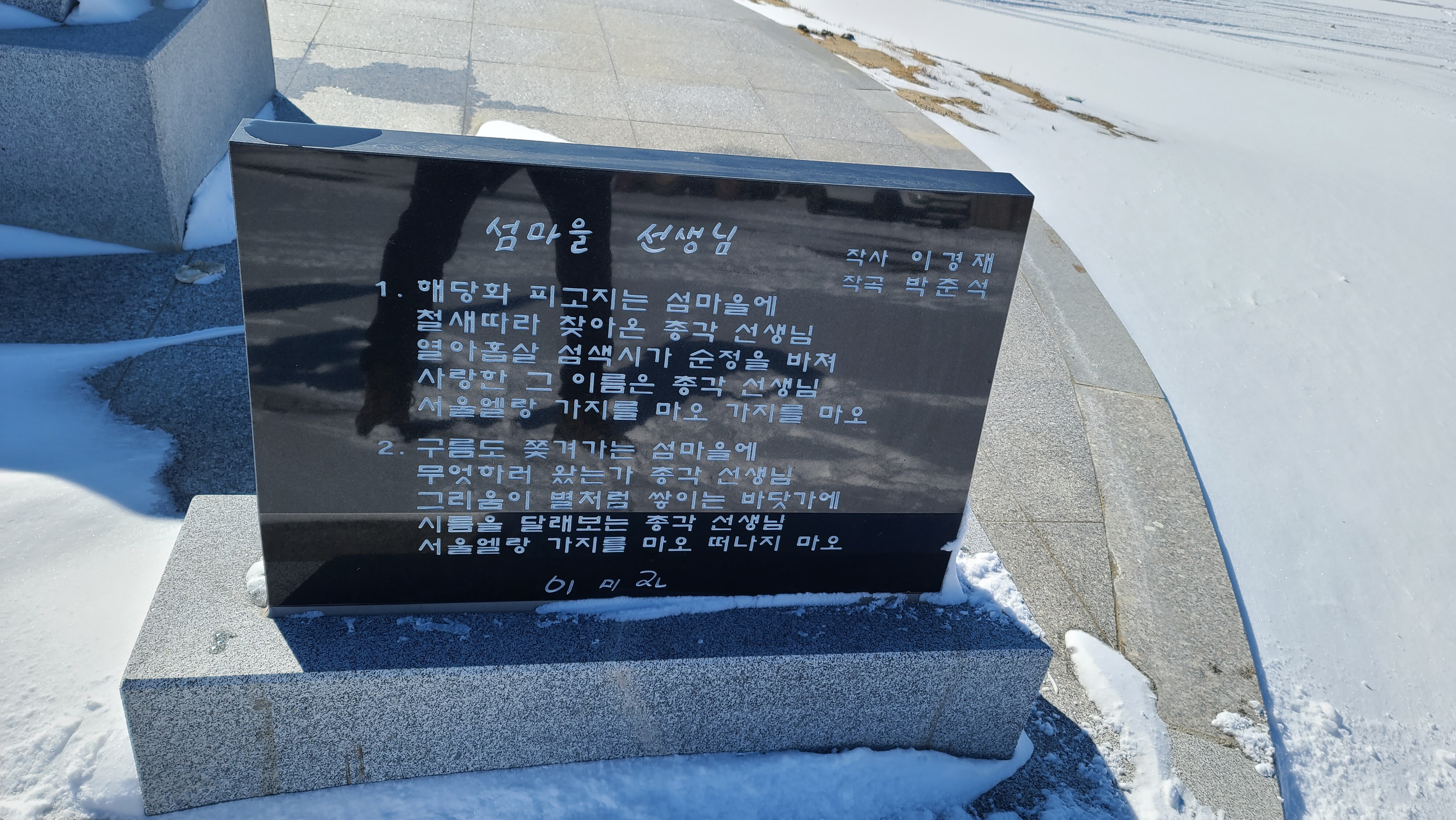 월천리 안악마을 입구에 '섬마을 선생님' 노래비와 소녀상 조형물이 조성되어 있다.