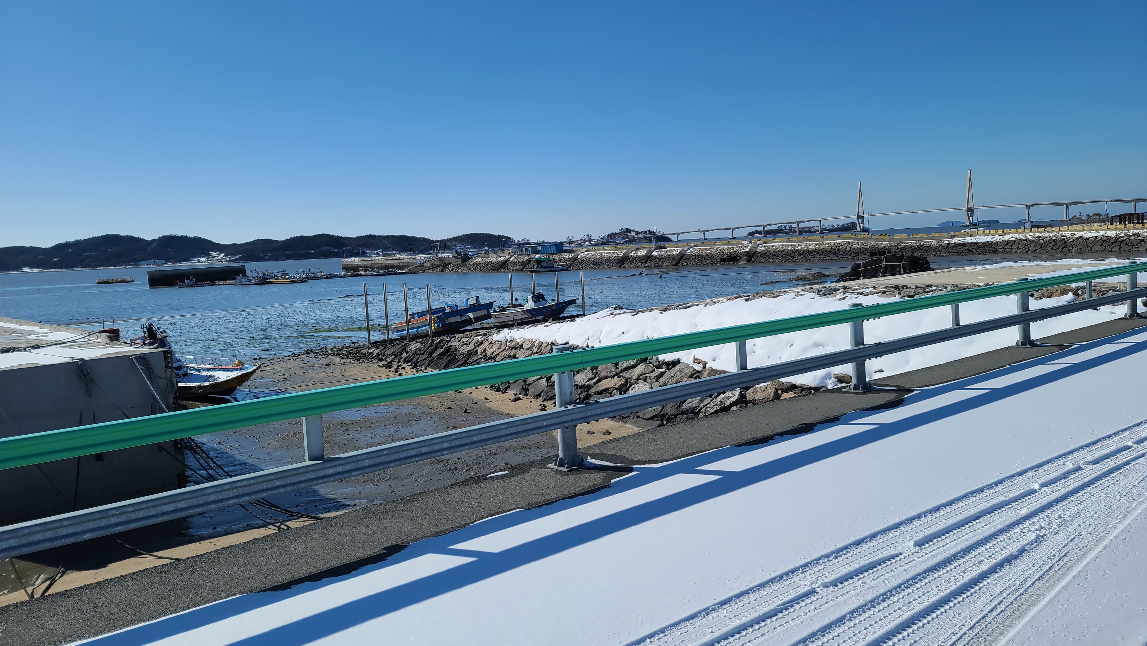 월천방조제 함평만해안도로를 따라 월천리 안악마을로 향한다. 왼쪽 안악해변에 월천항이 자리하고 있다.