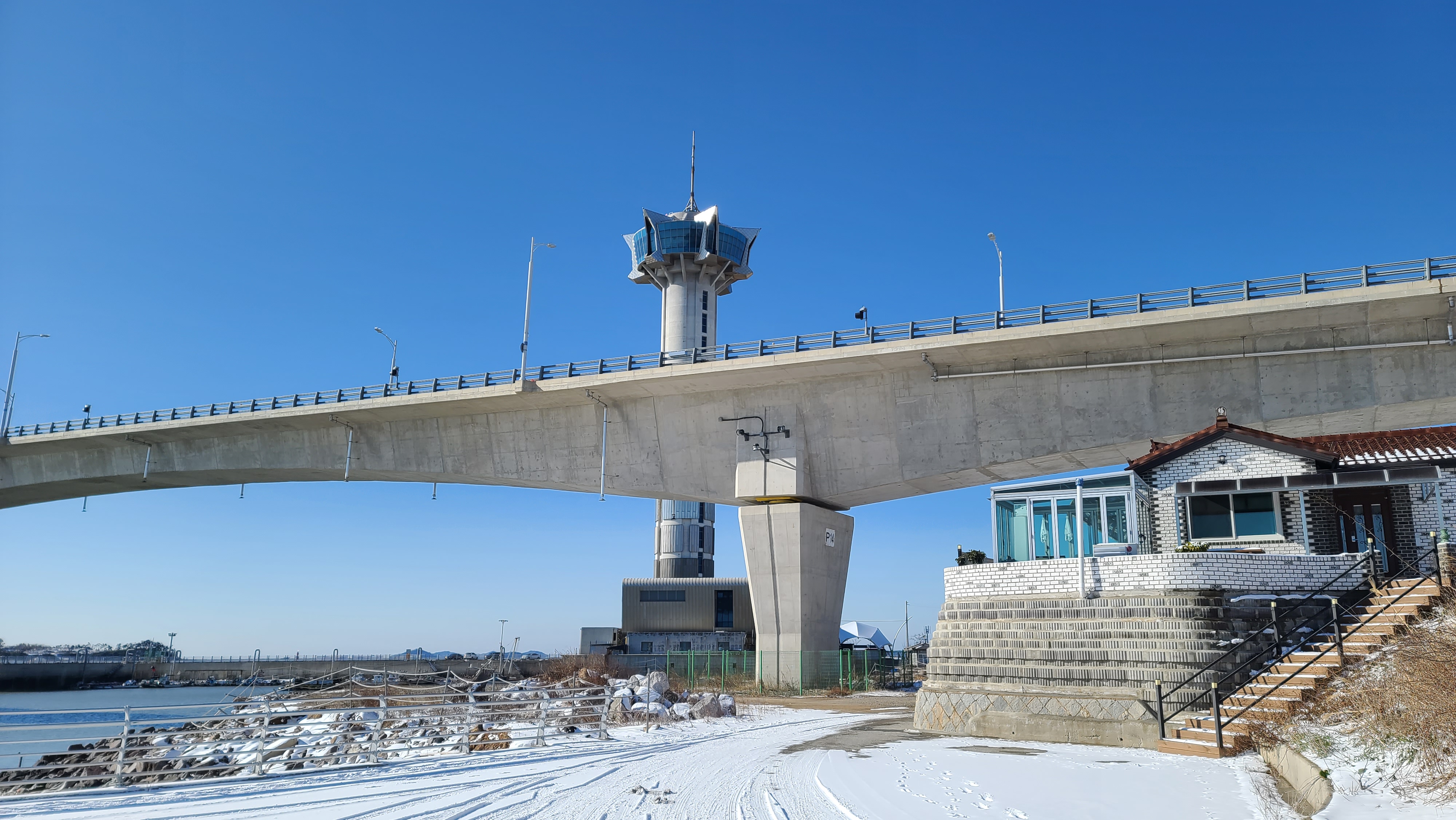 무지개다리 신옥교를 건너 월천방조제로 나간다.