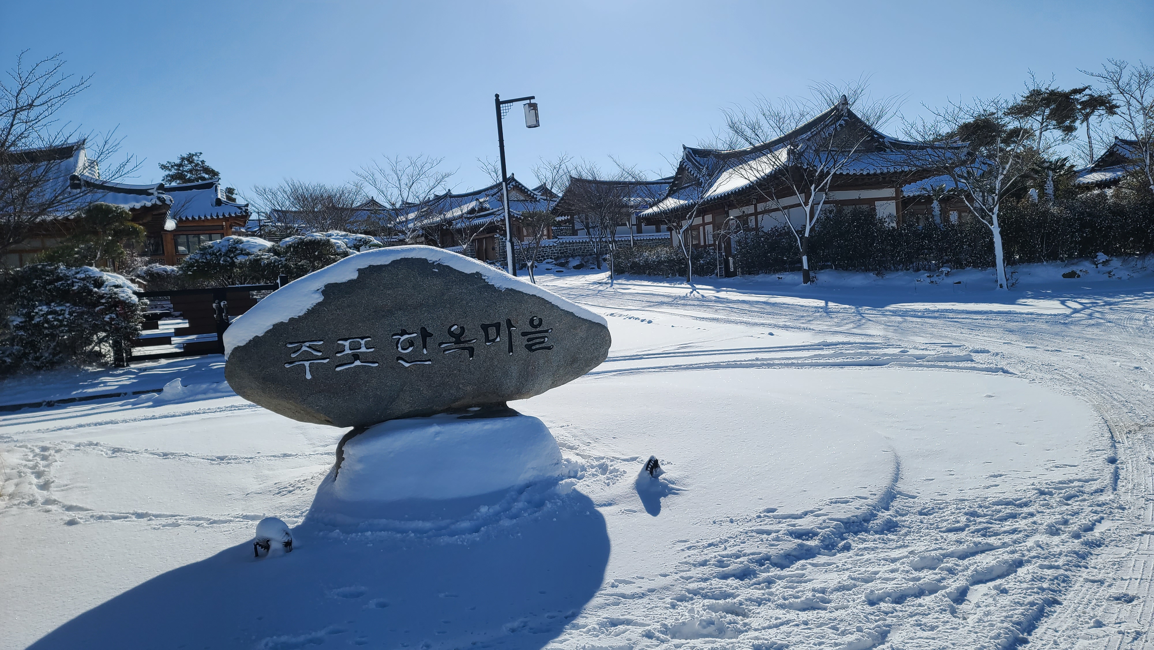 함평만해안도로 주포로를 따라간다. 해안도로 오른쪽에 주포한옥전원마을이 보인다.