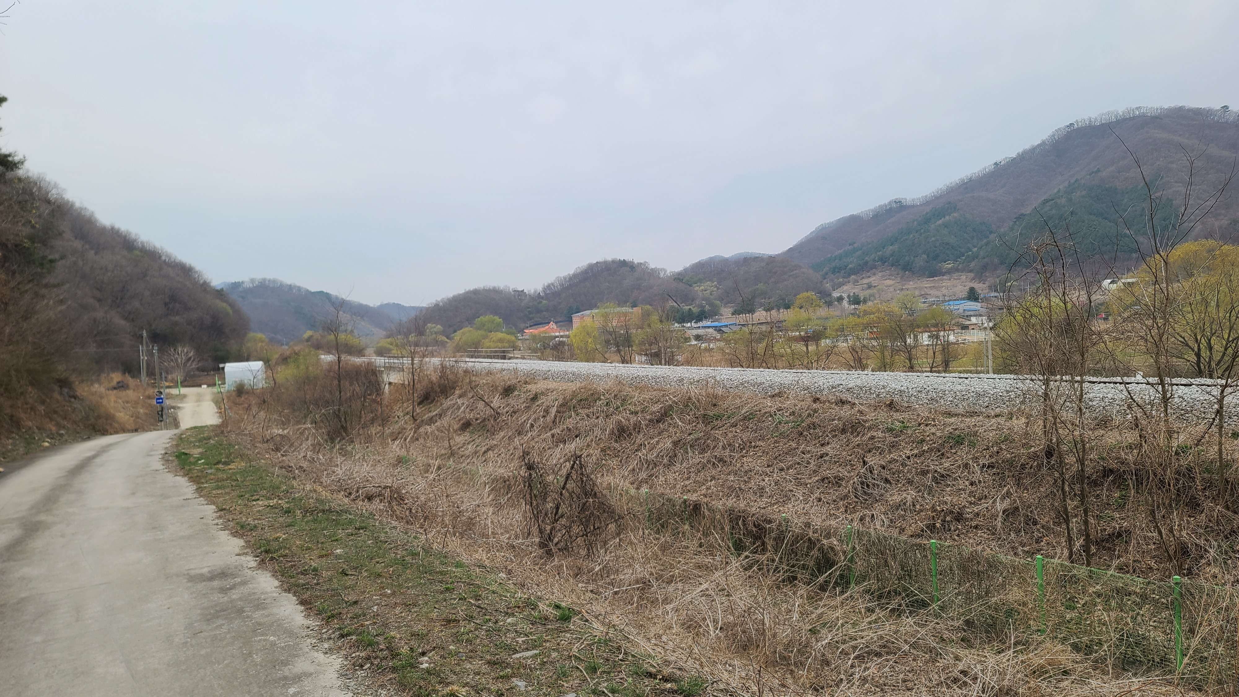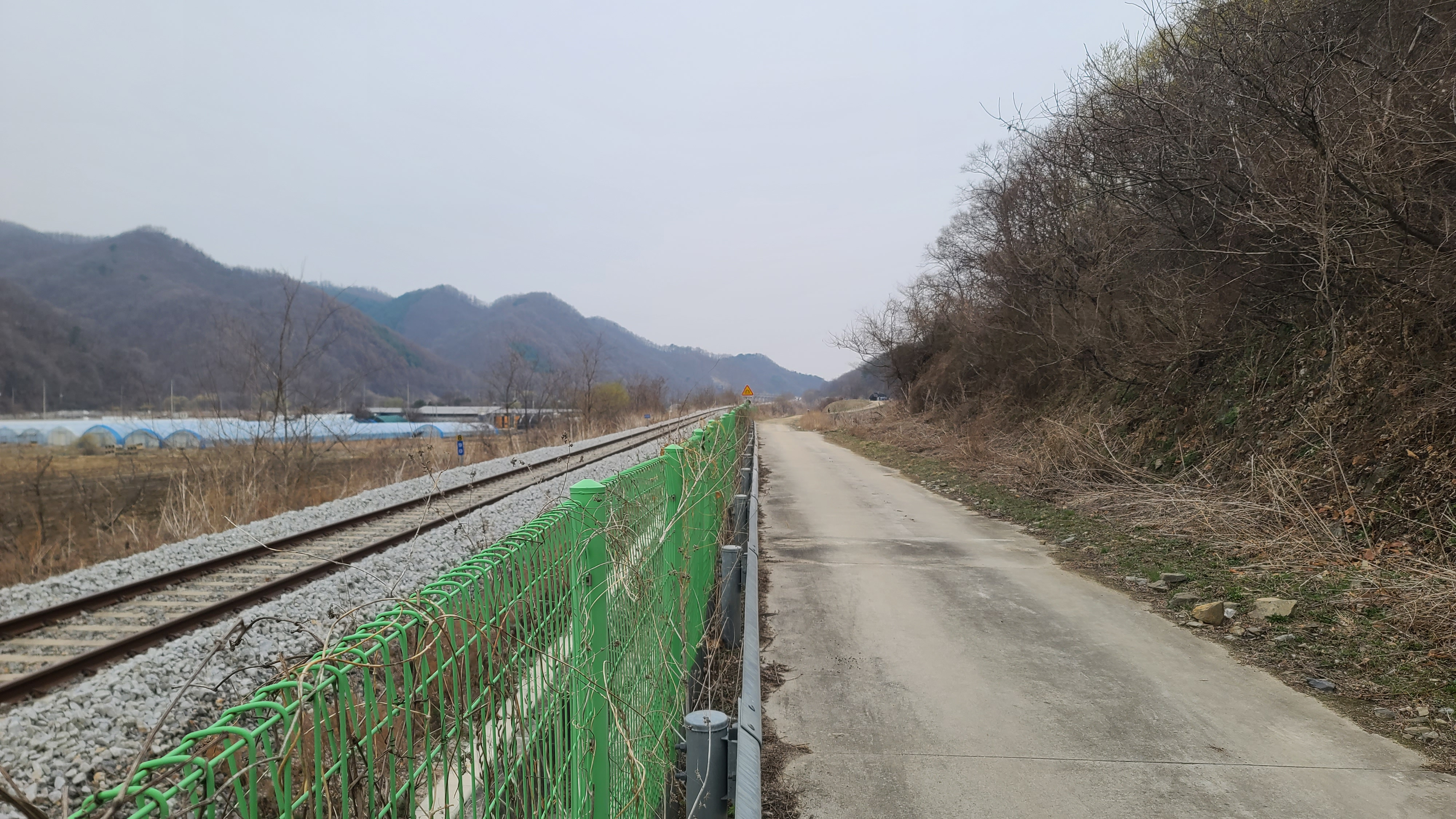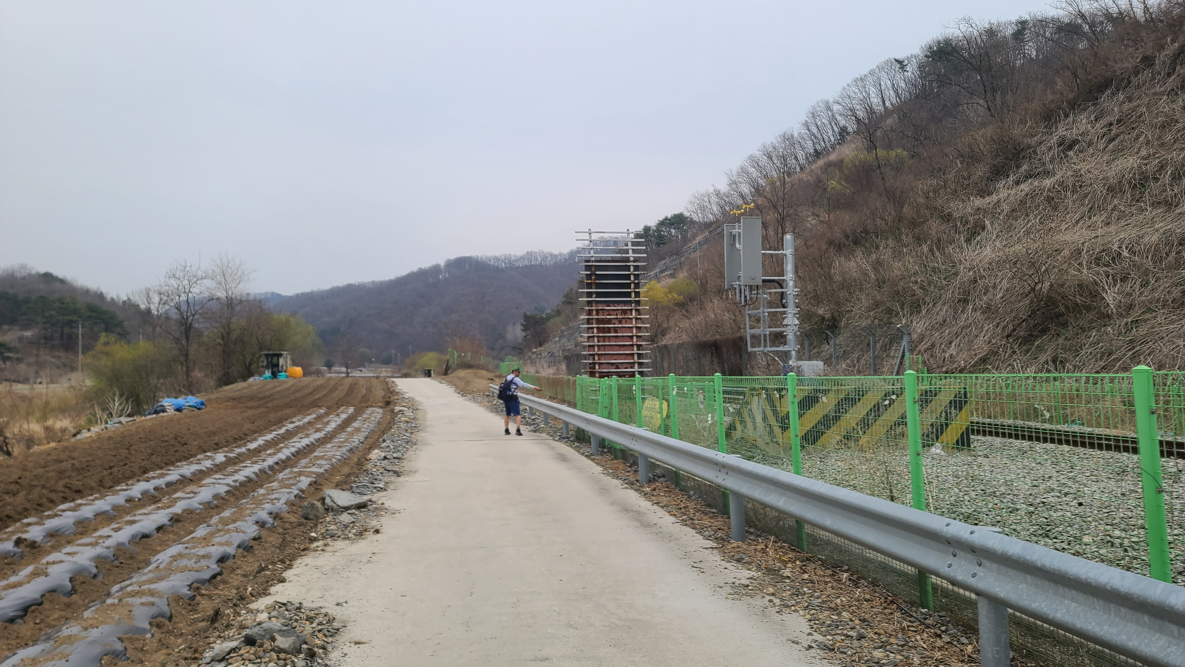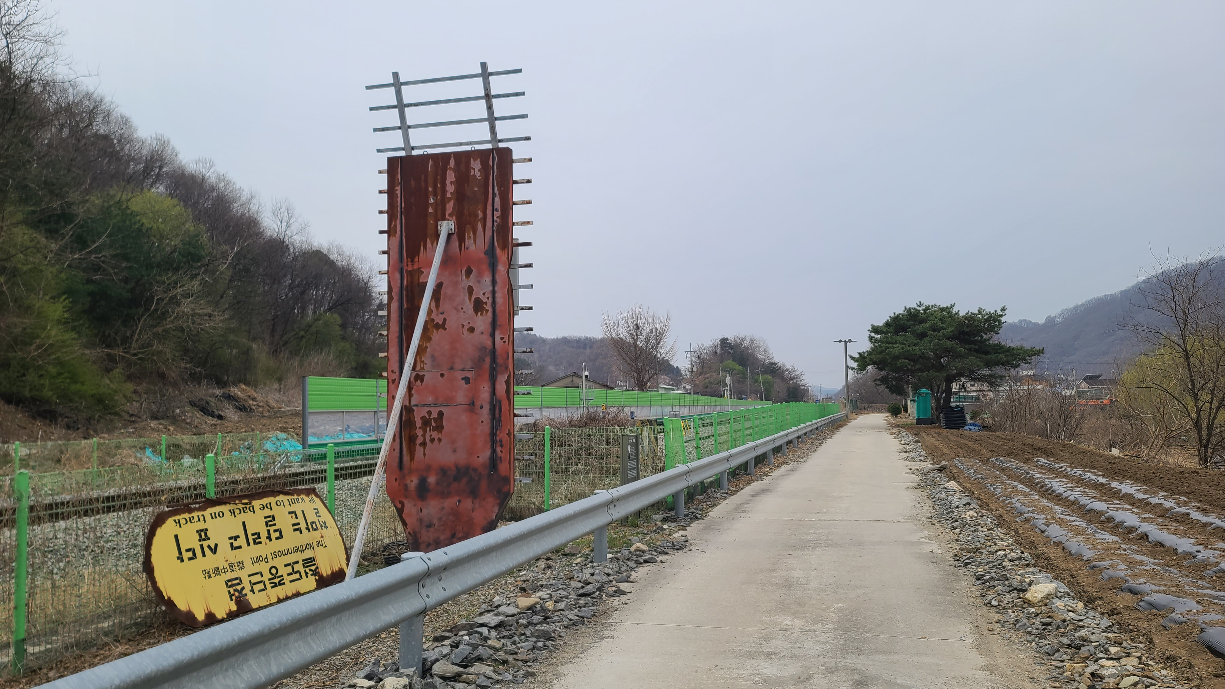 평화의 길은 경원선 철도와 나란히 동행한다. 철도 뒤의 농장은 가축사육업체 태양농장인 듯.
