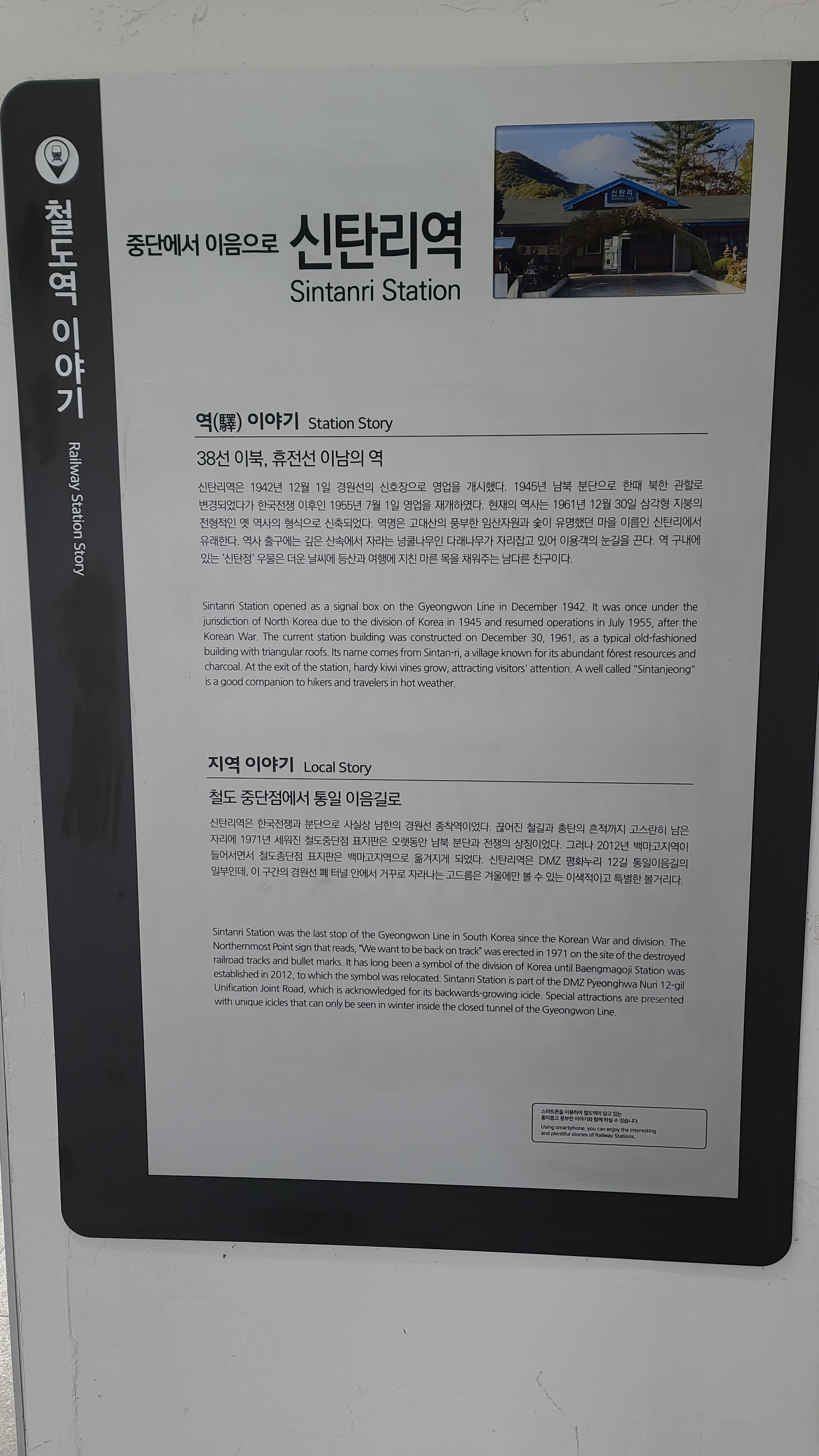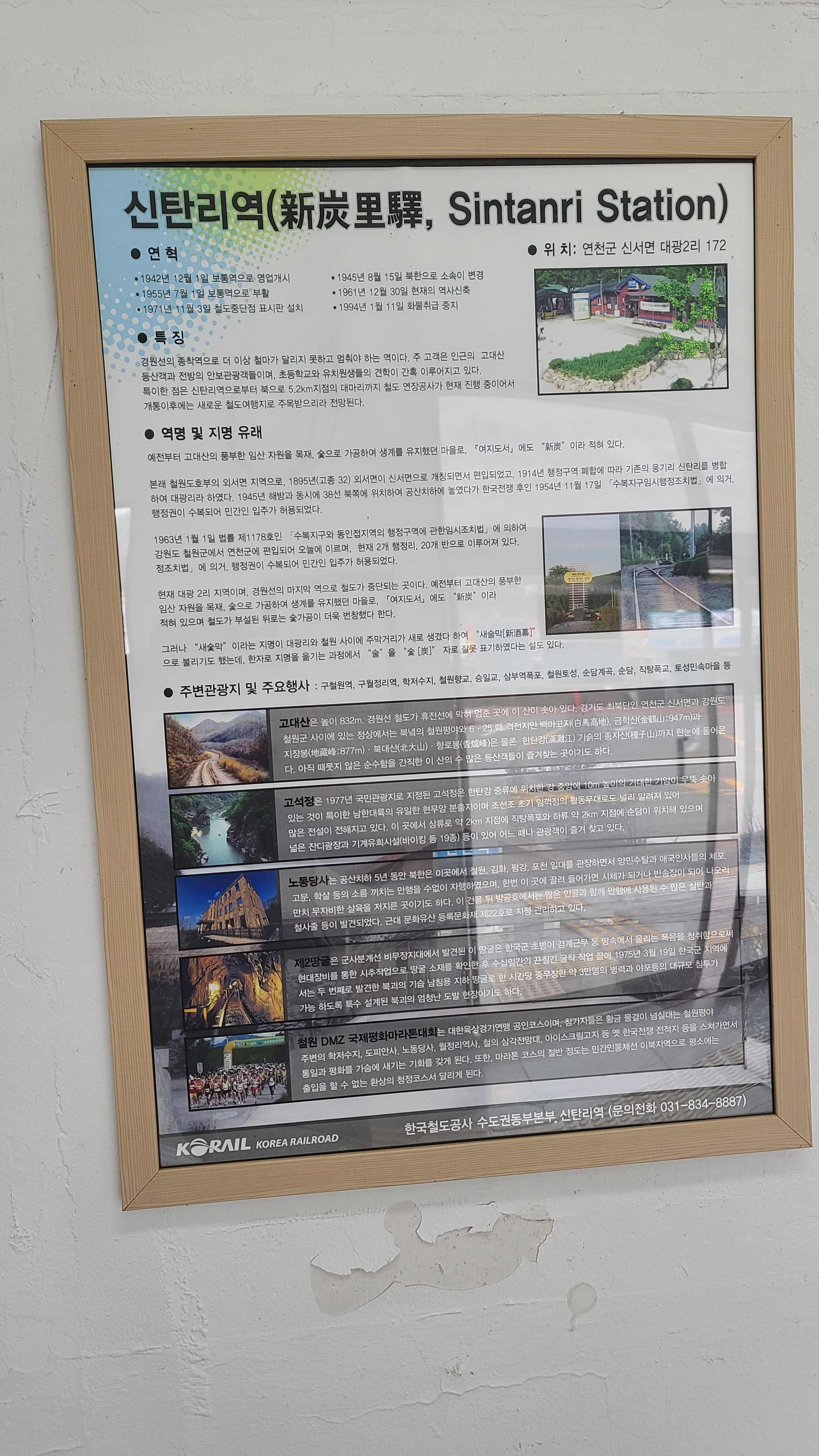 신탄리역사 내부에 게시된 신탄리역과 마을 유래 내용과 같다.