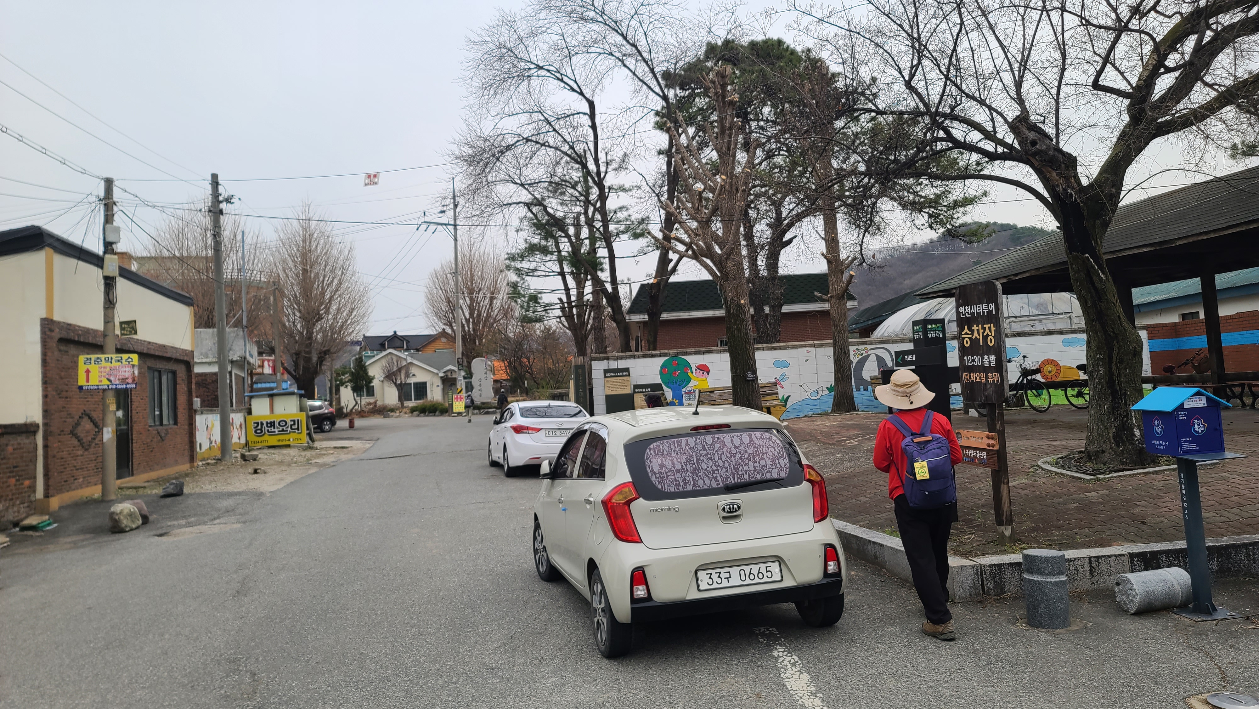 연천역 광장 북쪽의 고대산길을 따라간다. 오른쪽 쉼터 왼쪽의 벽화를 살핀다.