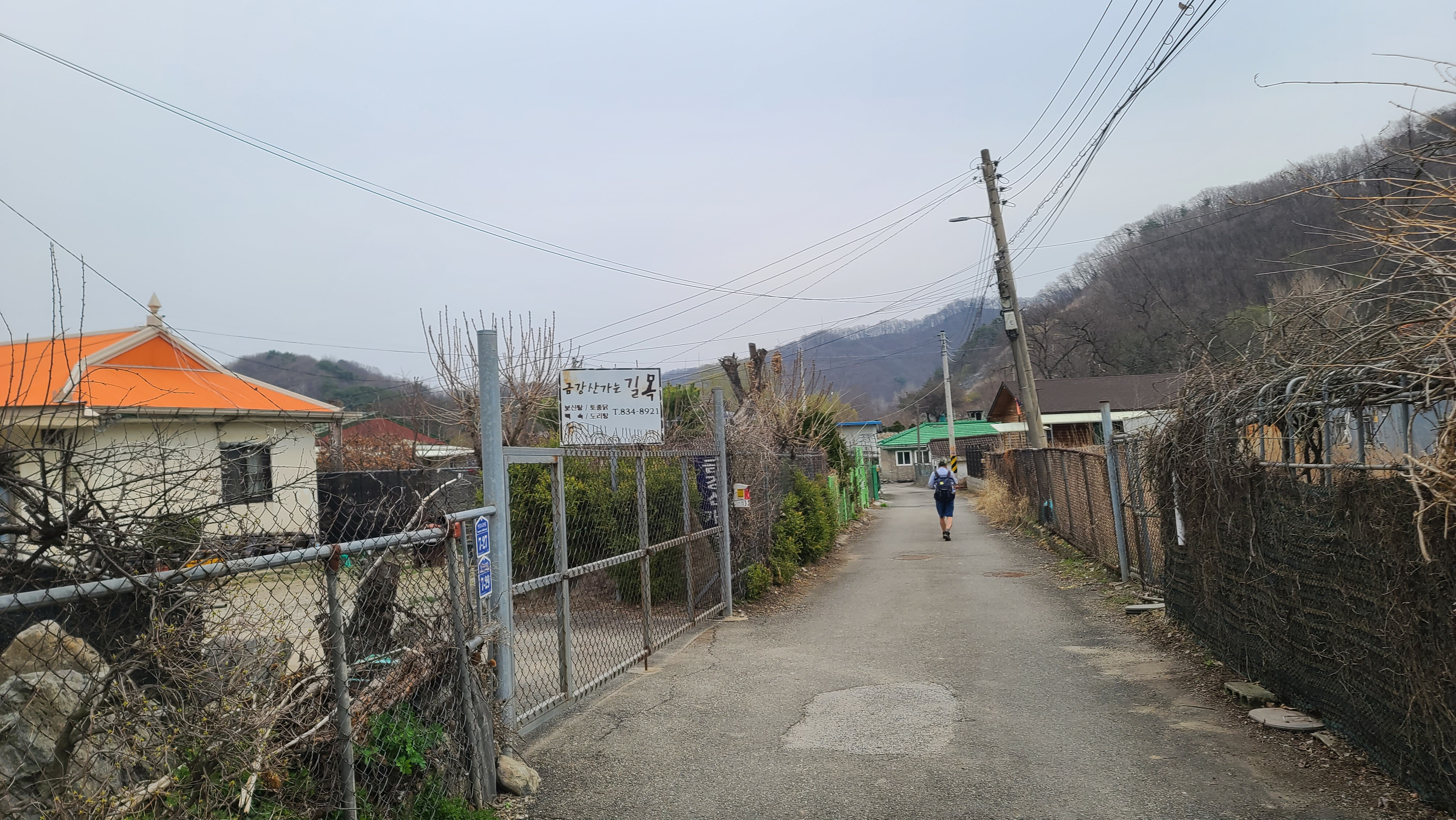 연신로1620번길을 따라 '금강산가는 길목' 한식음식점 앞을 지난다.
