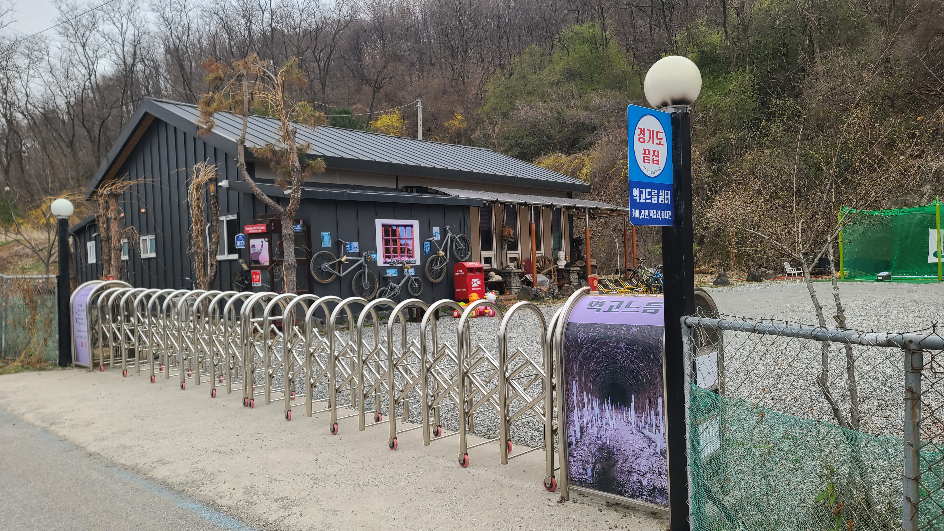 경기도끝집인 역도름쉼터에서는 커피, 라면, 막걸리, 김치전을 판매한다. "사랑의 최고의 증거는 진실이다." "인생을 싫어하기엔 너무 재미있는 일이 많아요." 이런 문구들이 벽과 울타리문에 적혀 있다.