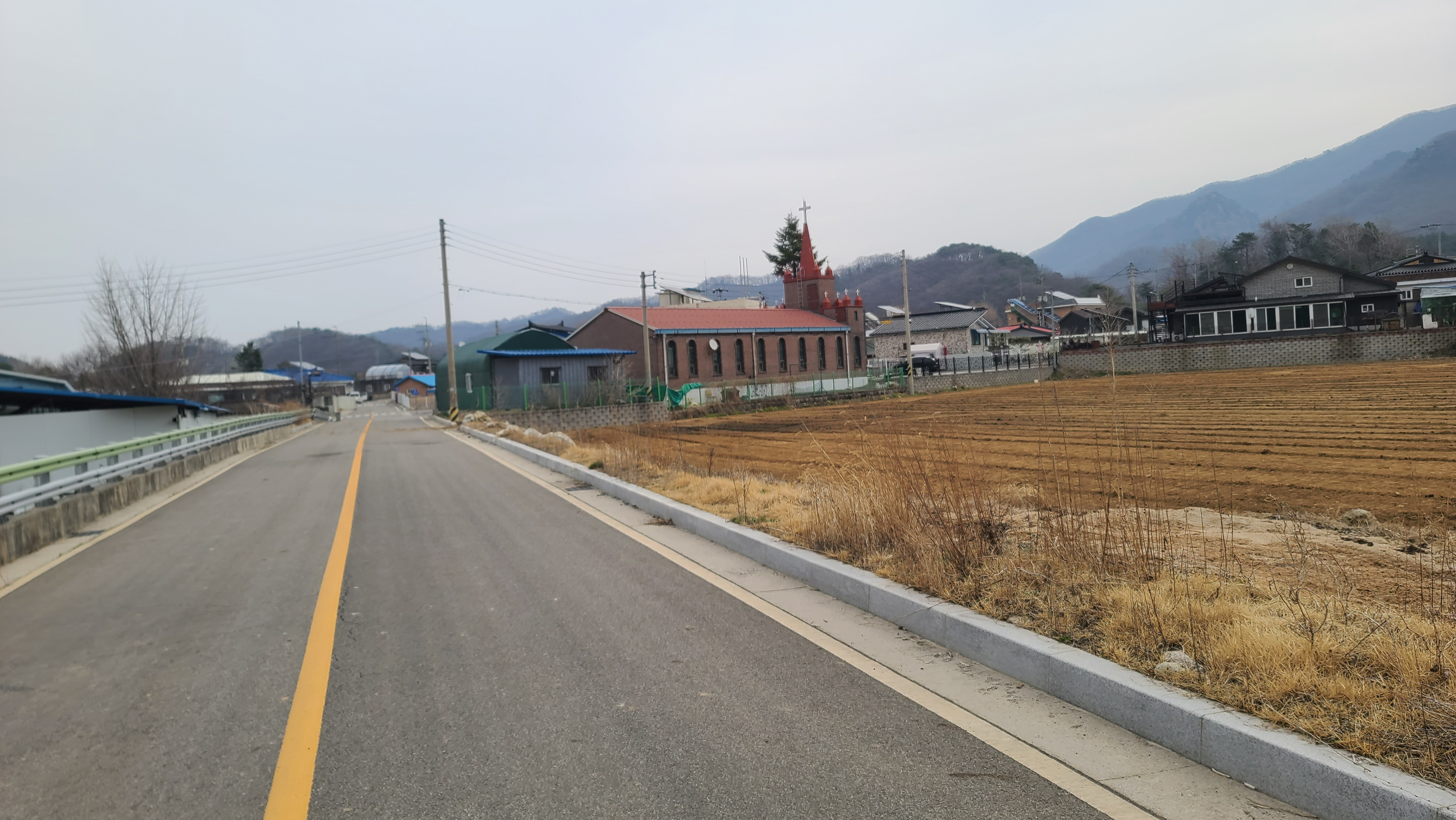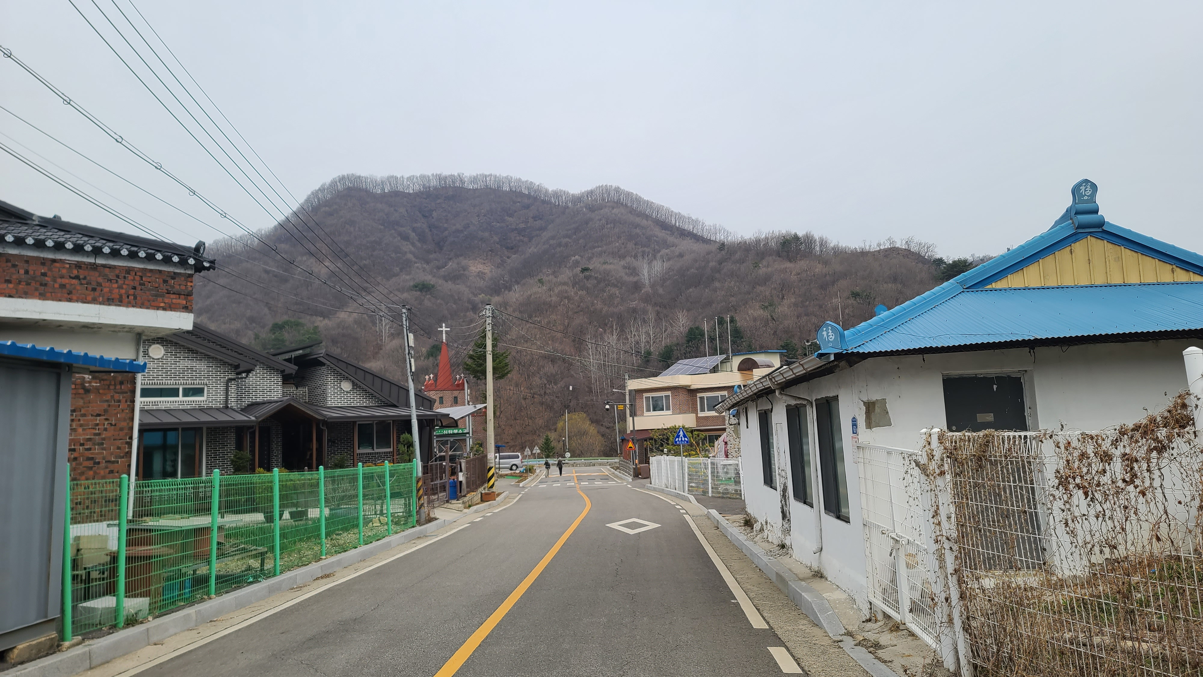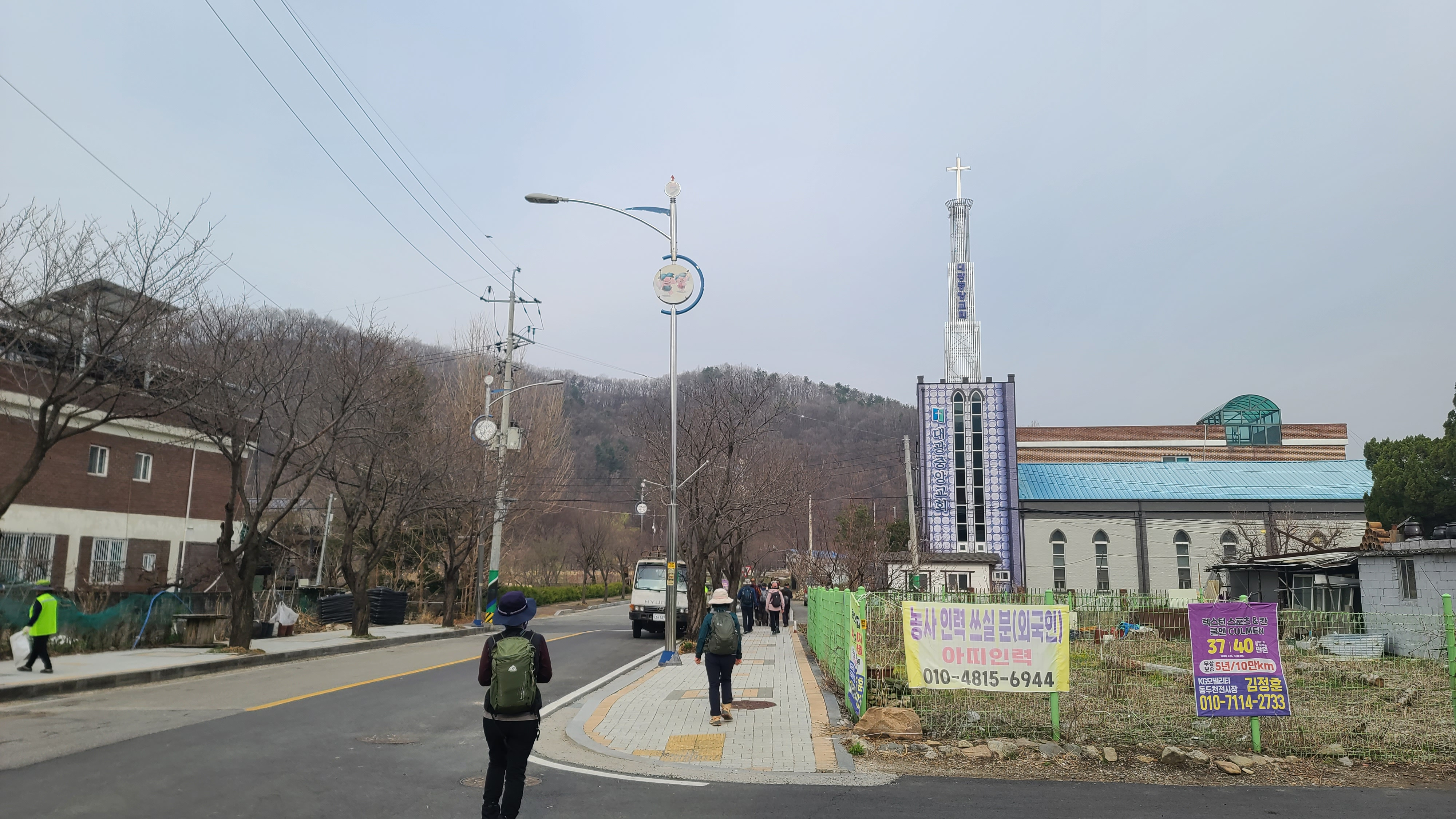 왼쪽 뒤의 신탄햇순교회와 그 오른쪽 대광2리 마을회관을 거쳐왔다.