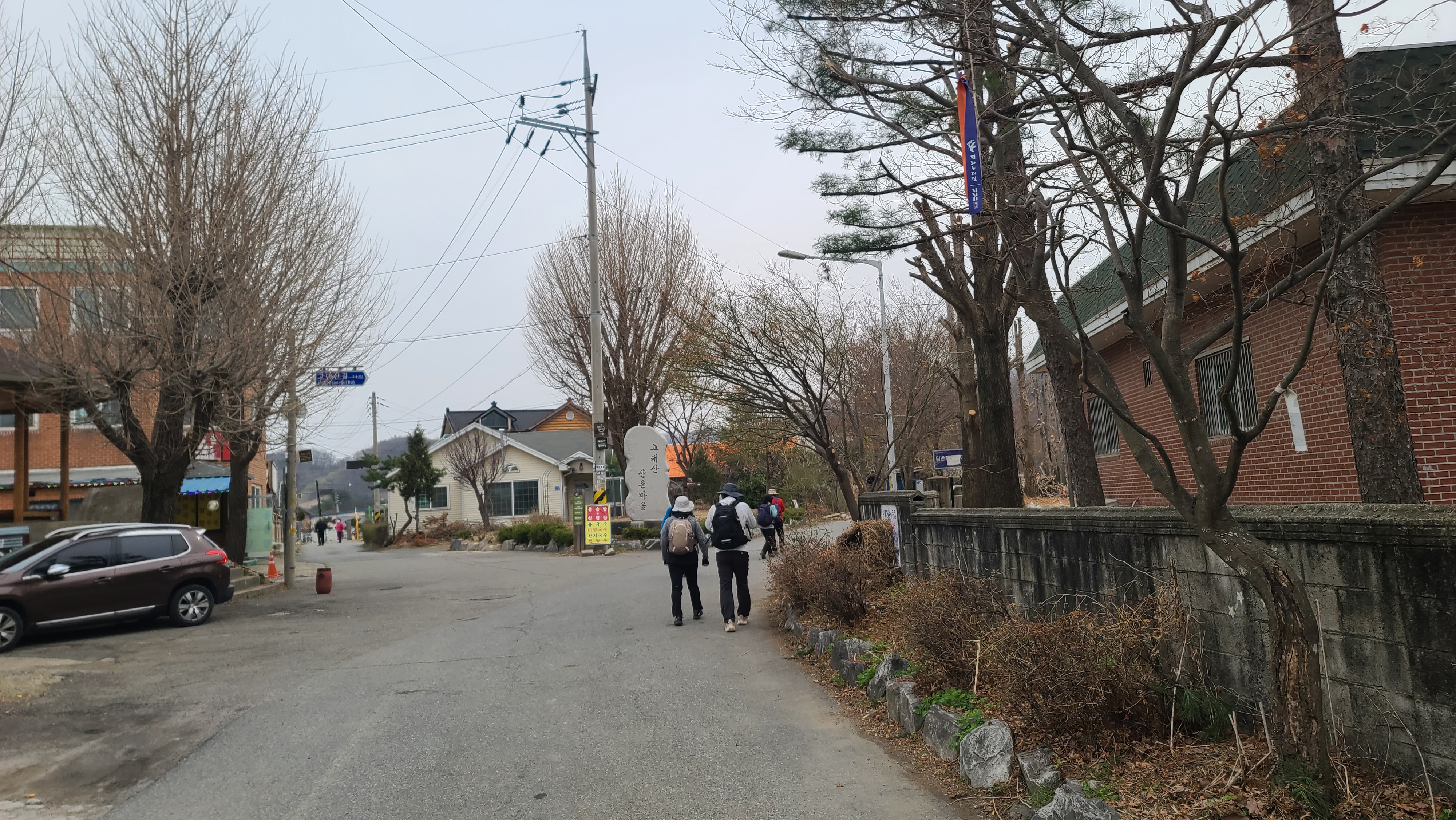 고대산 산촌마을 표석이 세워져 있는 갈림길에서 오른쪽 고대산길을 따라간다.