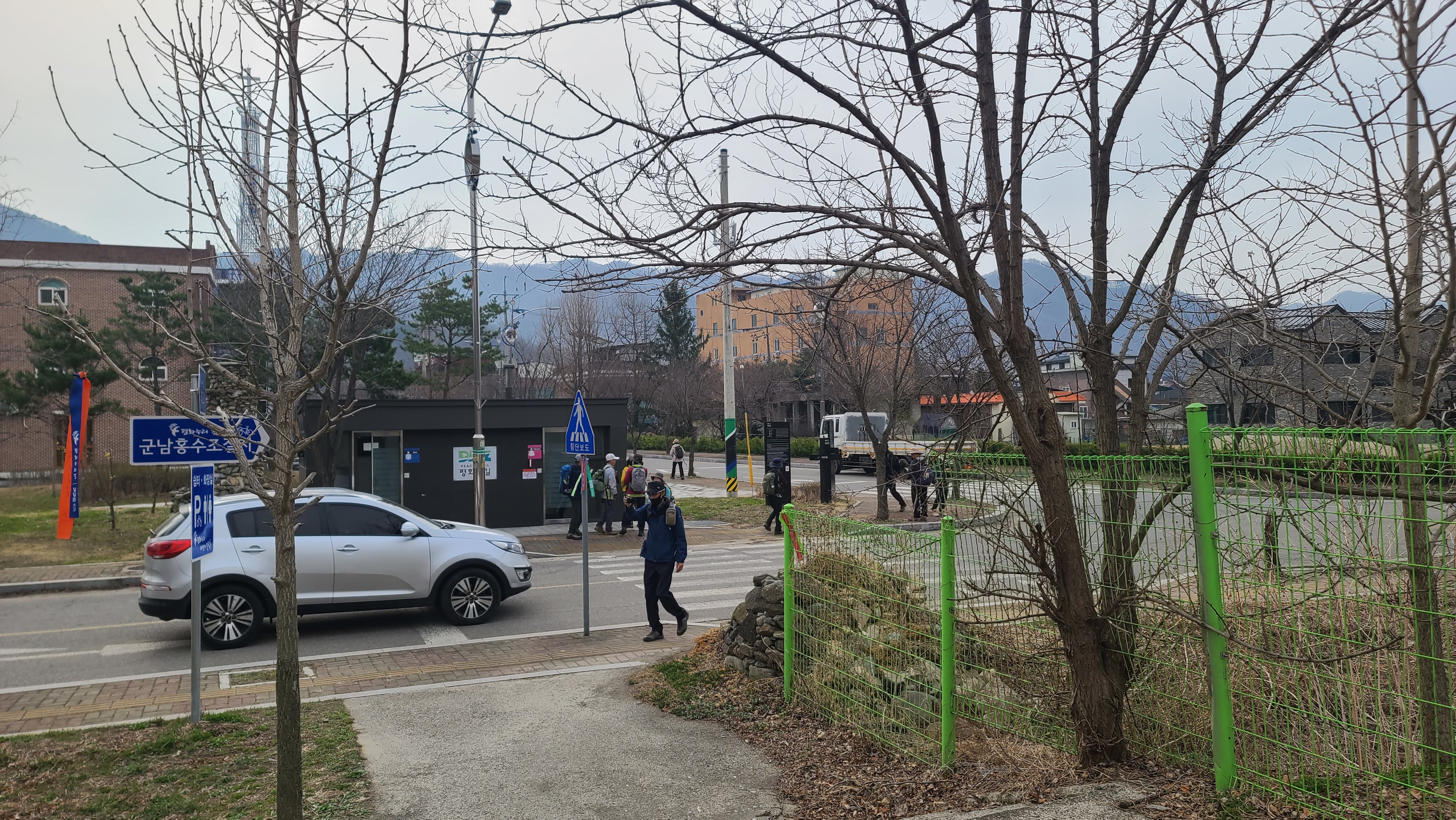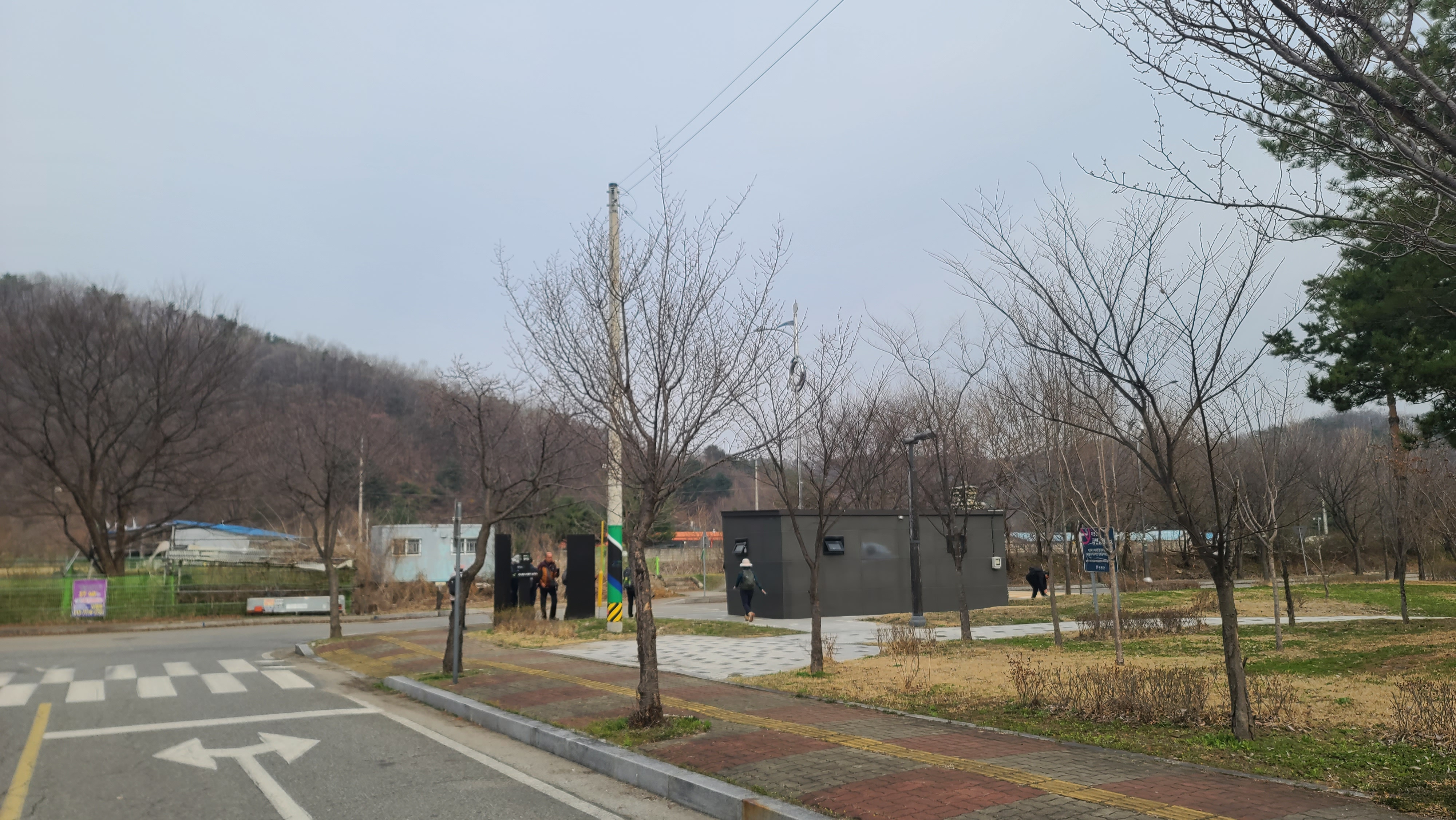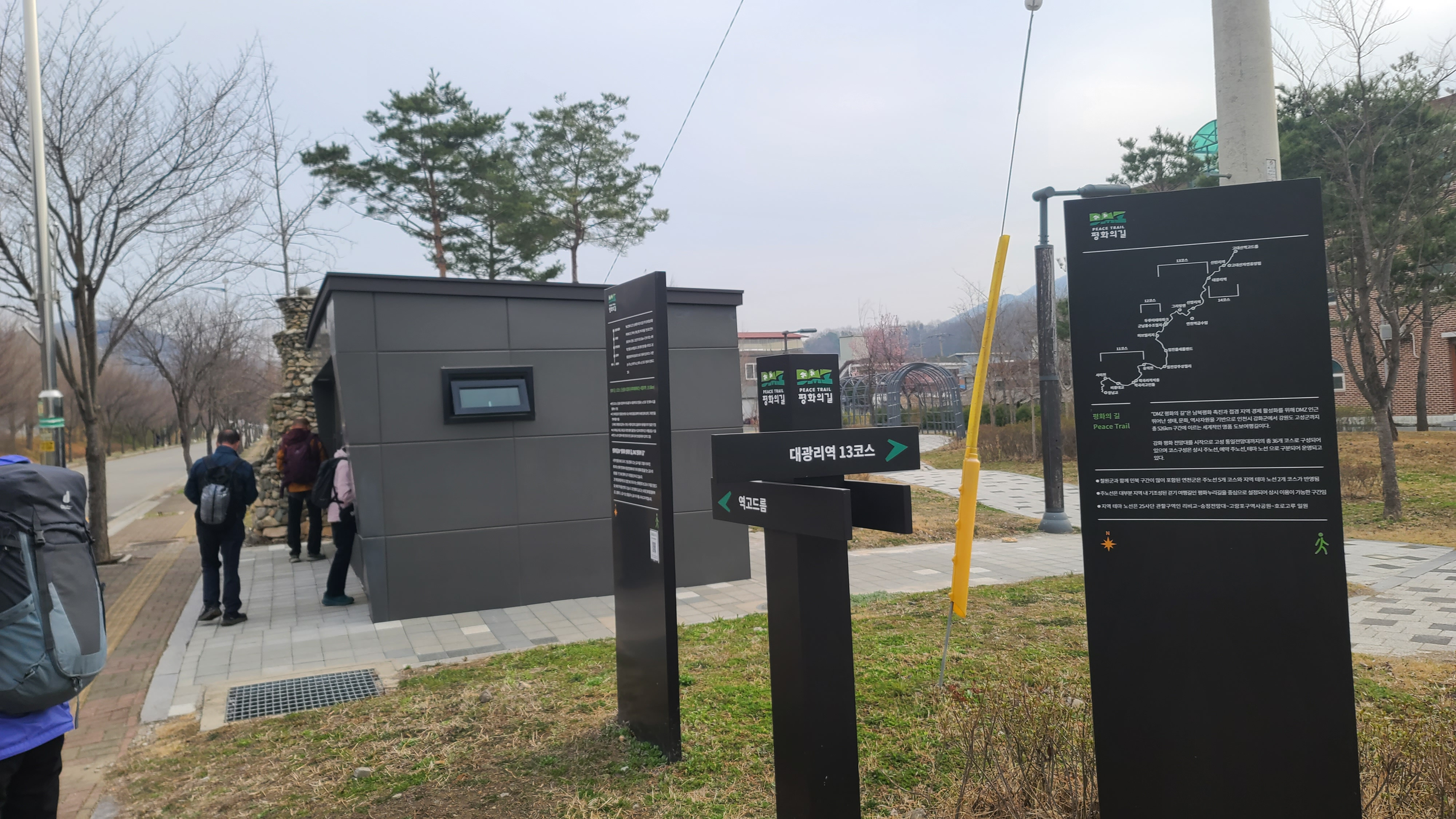 차탄천 동쪽 제방 안쪽에 조성한 대광리수변공원 남쪽 끝에 화장실과 DMZ 평화의 길 안내판과 이정목이 설치되어 있다.