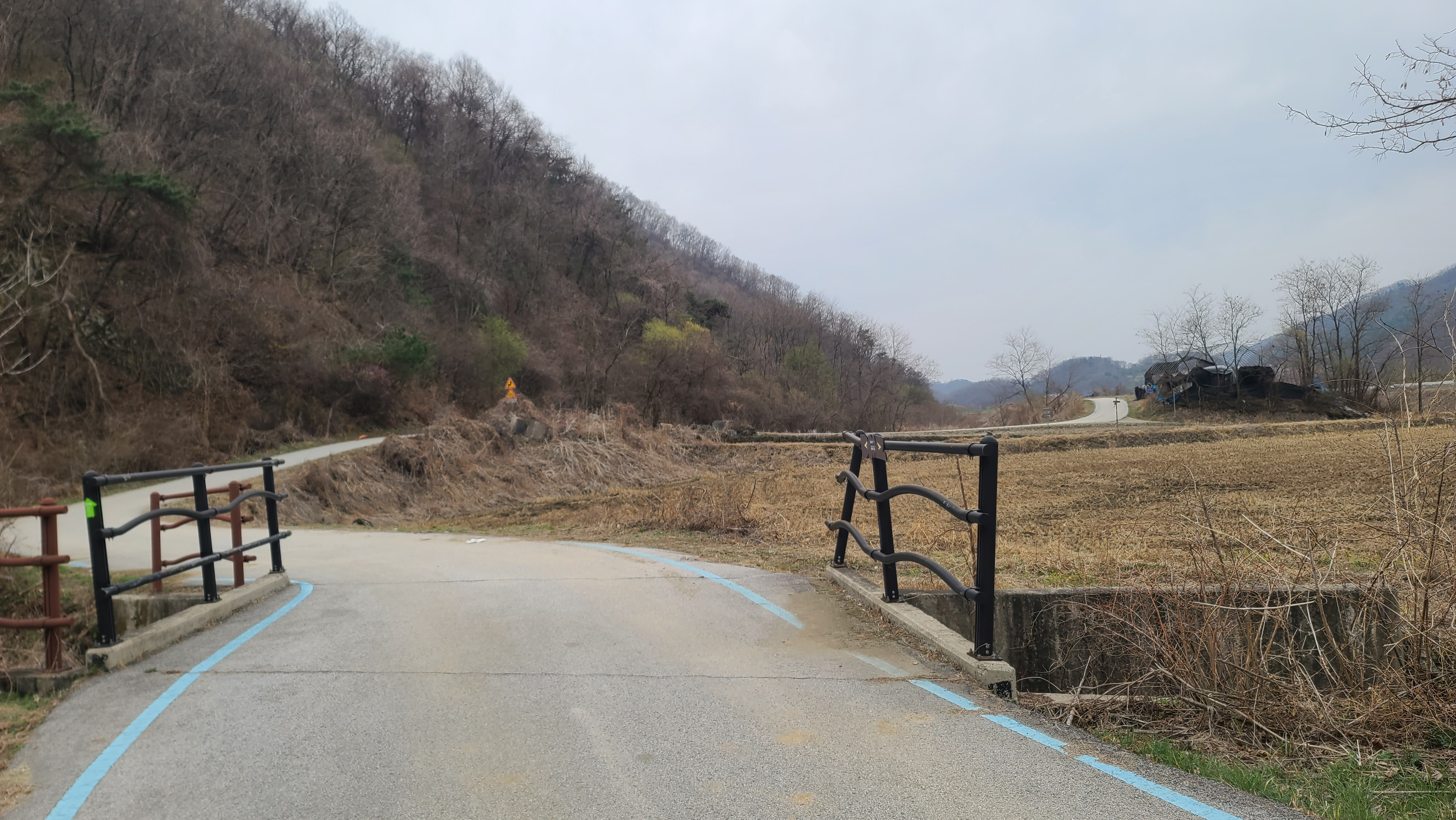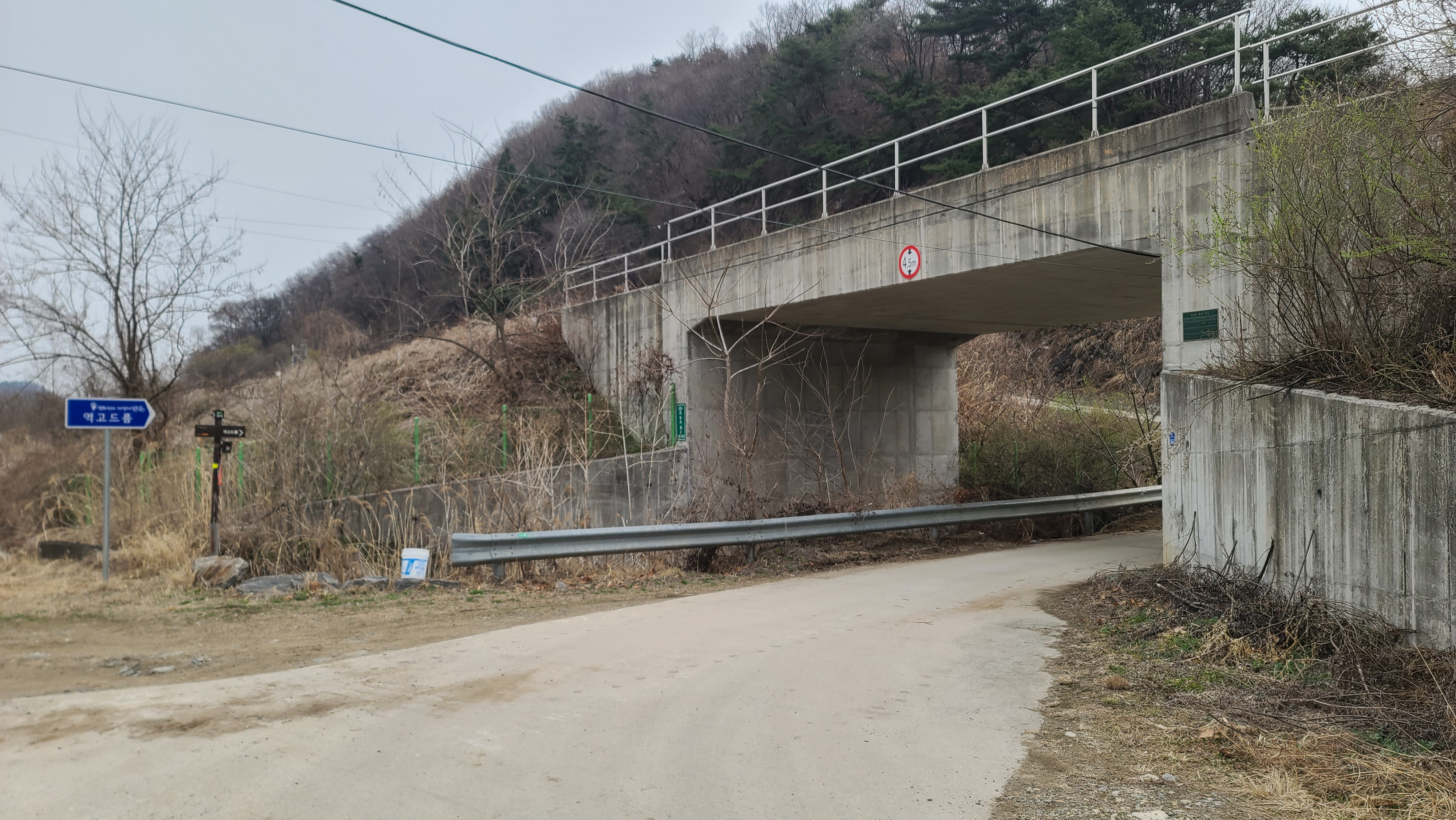 고대산1호교를 건너 연신로1620번길을 따라 옛 경원선 철도 중단점과 역고드름 방향으로 올라간다.