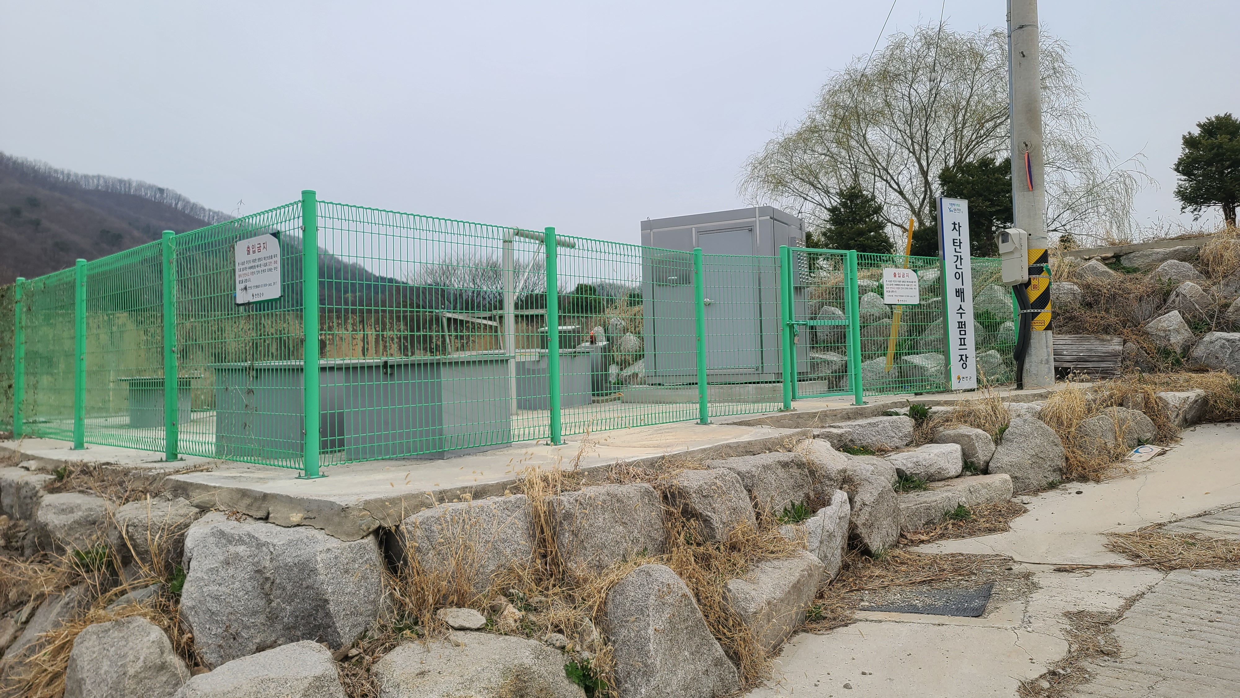 언덕의 차탄천간이배수펌프장을 지나 언덕길을 따라간다.