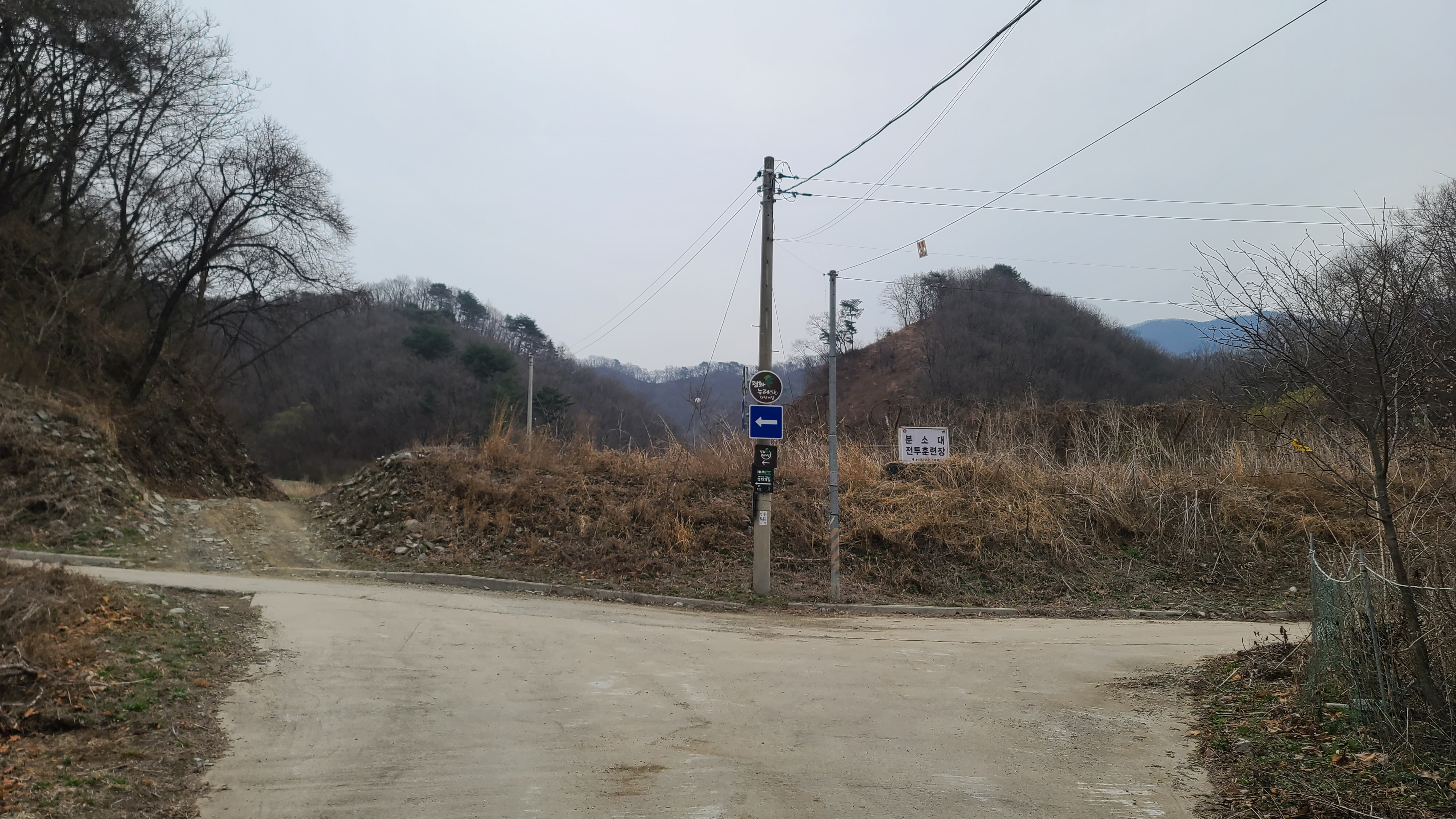경원선 철도 육교 아래를 통과하여 왼쪽 언덕길로 올라간다. 건너편에 분소대 전투훈련장 표지판이 있다. 옛 경원선 철도는 저곳으로 지나갔을 것이라고 추정한다.