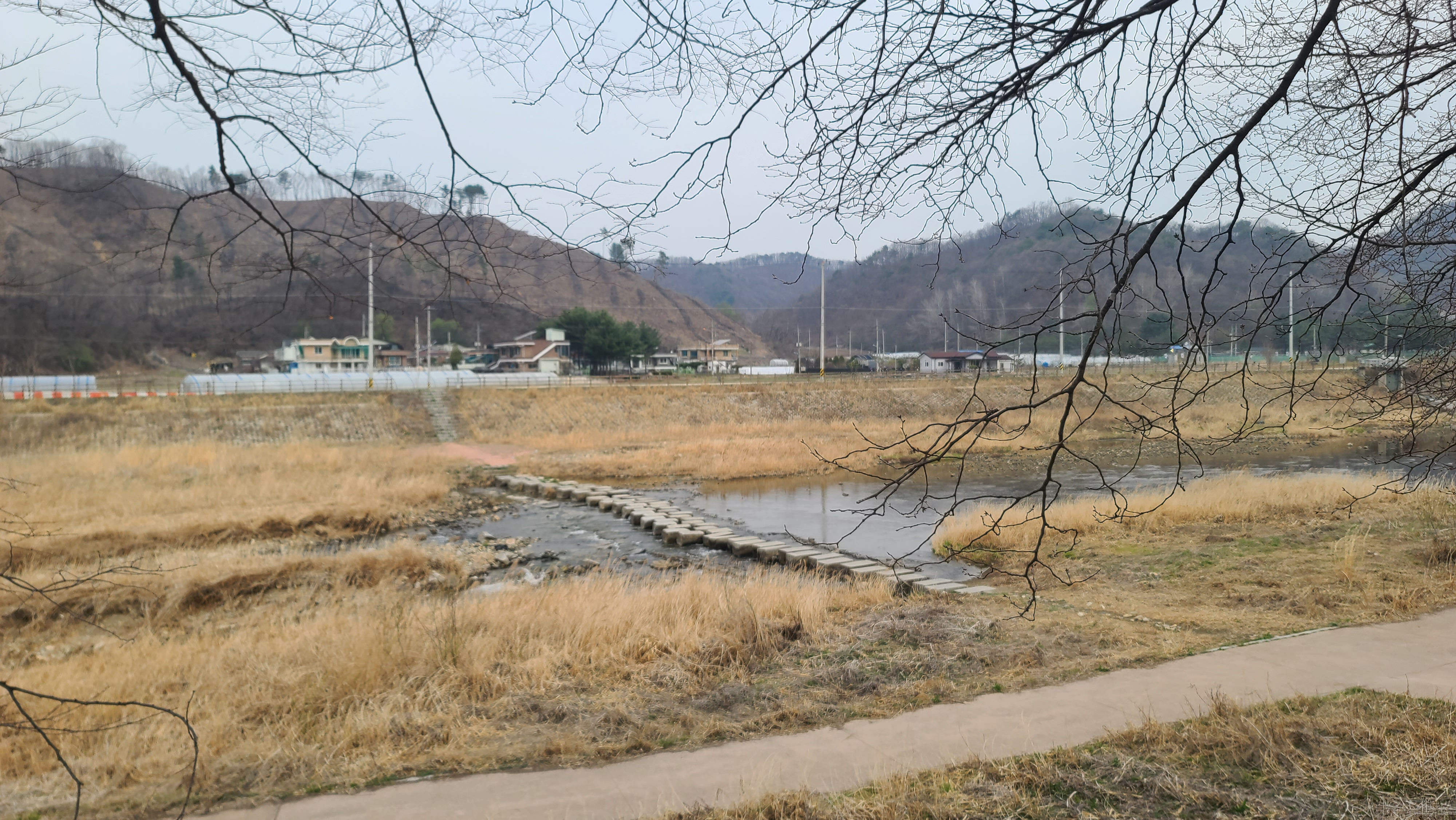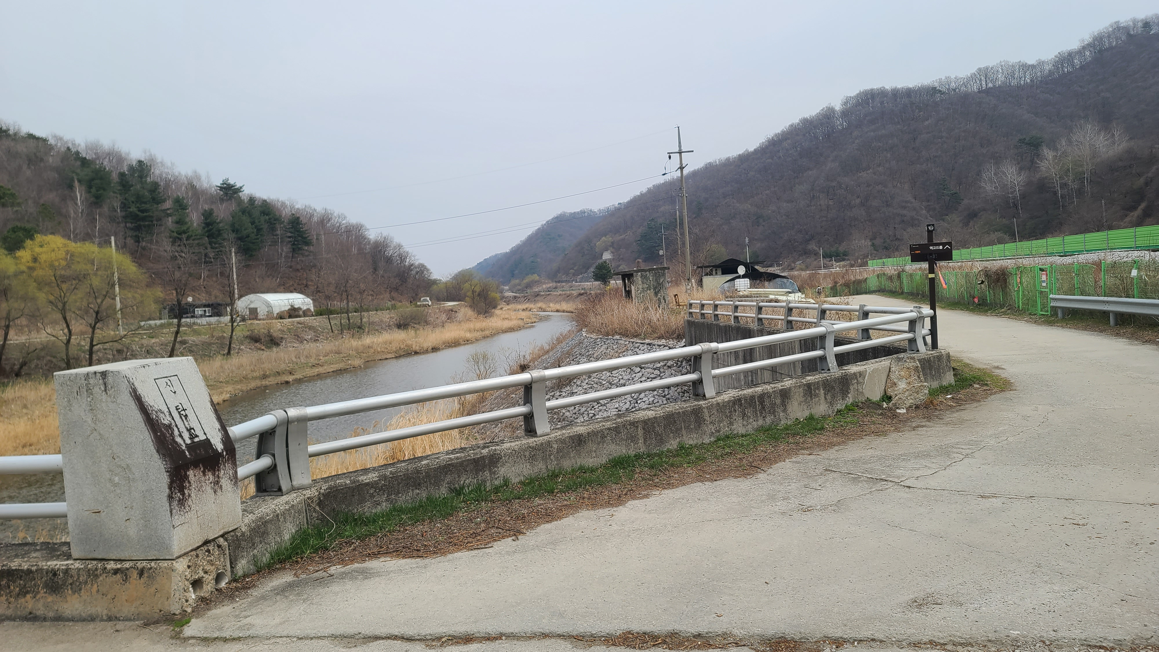 차탄천은 동쪽으로 굽이 돌아간다. 동쪽 제방길을 따라 대광2리(신탄리) 마을로 들어간다.