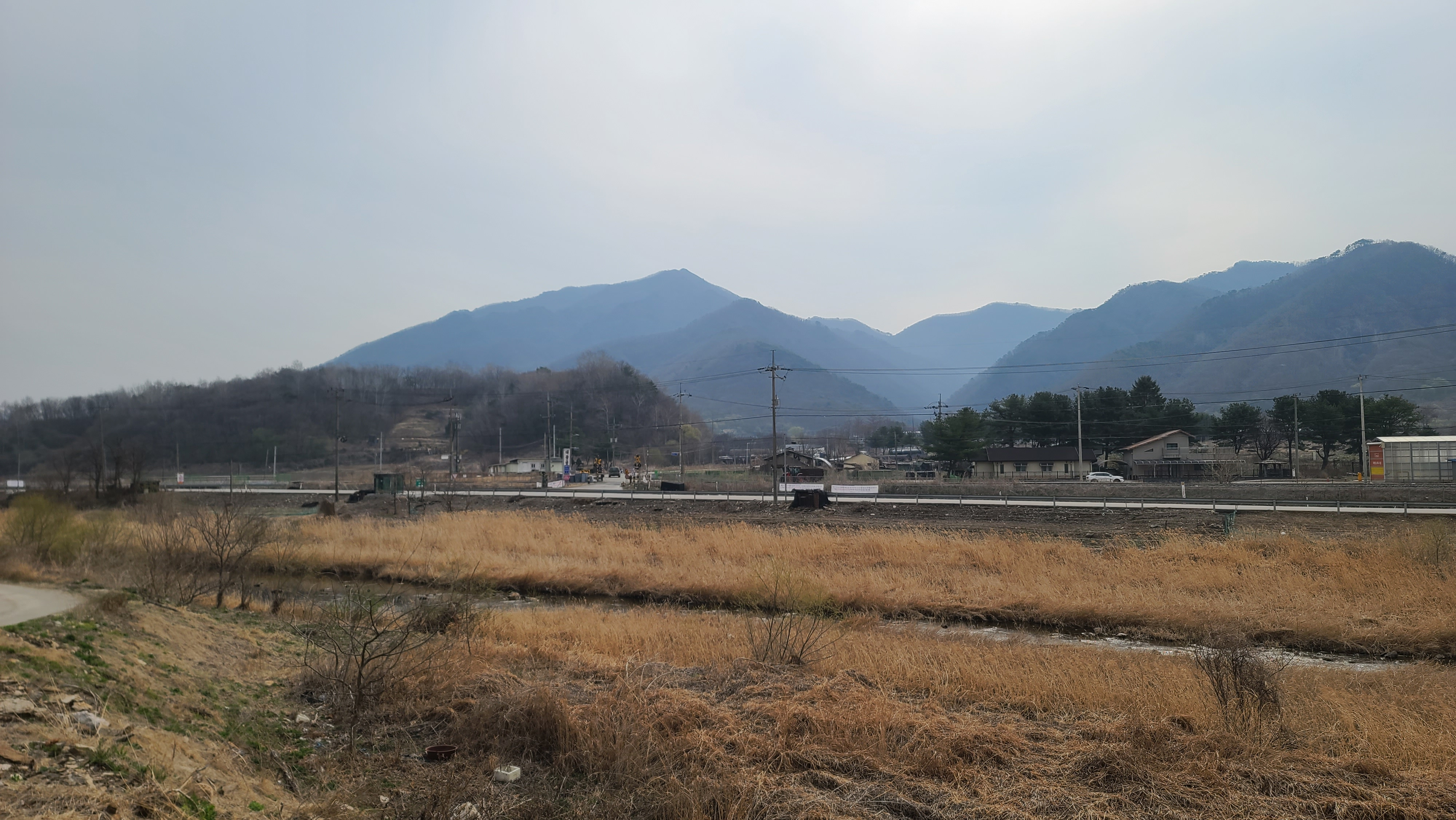 차탄천 서쪽 제방길을 따라 차탄천을 거슬러 오른다. 오른쪽 뒤 연천과 철원의 경계에 고대산이 솟아 있다.