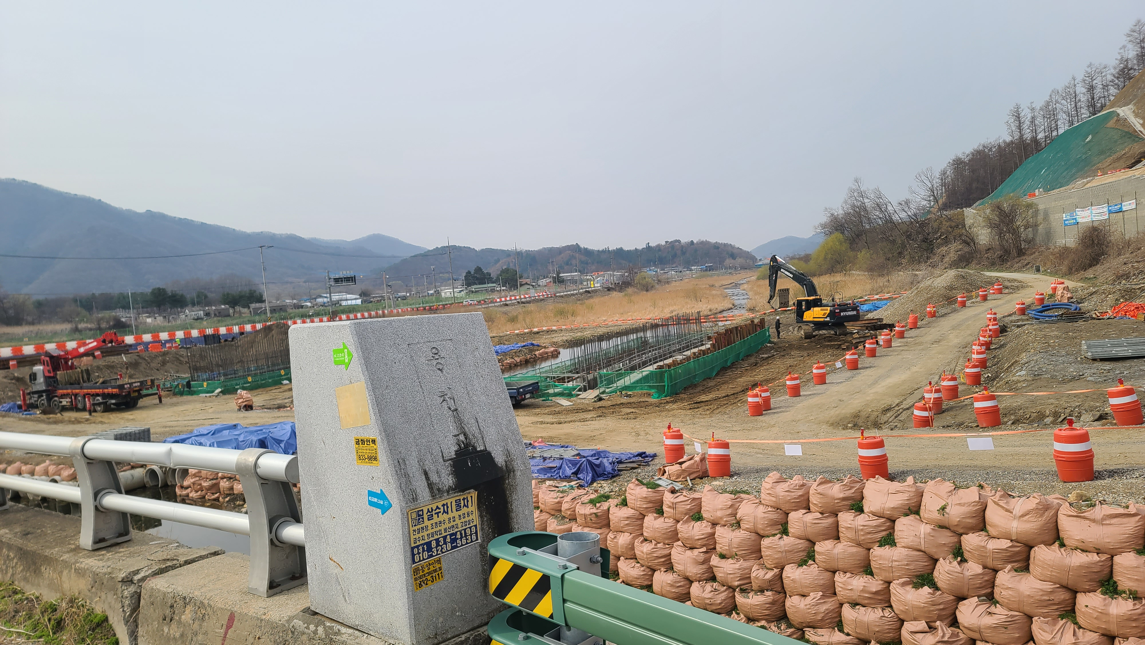 국립연천현충원 진입도로 개설공사가 한창 진행 중이다. 용천교 아래에 연천현충원 진출입로인 새 용천교를 건설하고 있다.